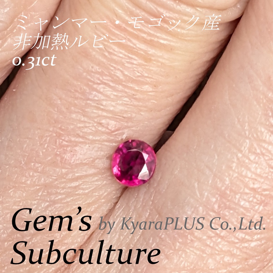 小粒ですが非常にクリアで、発光しているかのように輝くネオンレッドの1粒。鳩の血(ピジョン・ブラッド)と呼ばれる深い色合いよりも彩り豊かな輝きに魅了されるお石です。