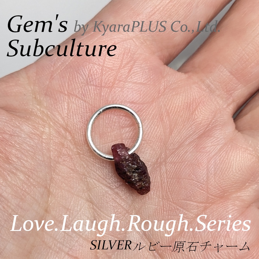 ルビーやサファイアが属する「コランダム」という鉱物に特有の“樽型”をした原石ルビーです。おなかの部分がふっくらと膨らんだ樽のような形状で、表面には縦方向に対して垂直に走る「条線(成長線)」が見られるのが特徴。この条線が、コランダムであることを示す大きな手がかりとなります。深みのある赤紫色が美しい、個性際立つ原石を使用しています。