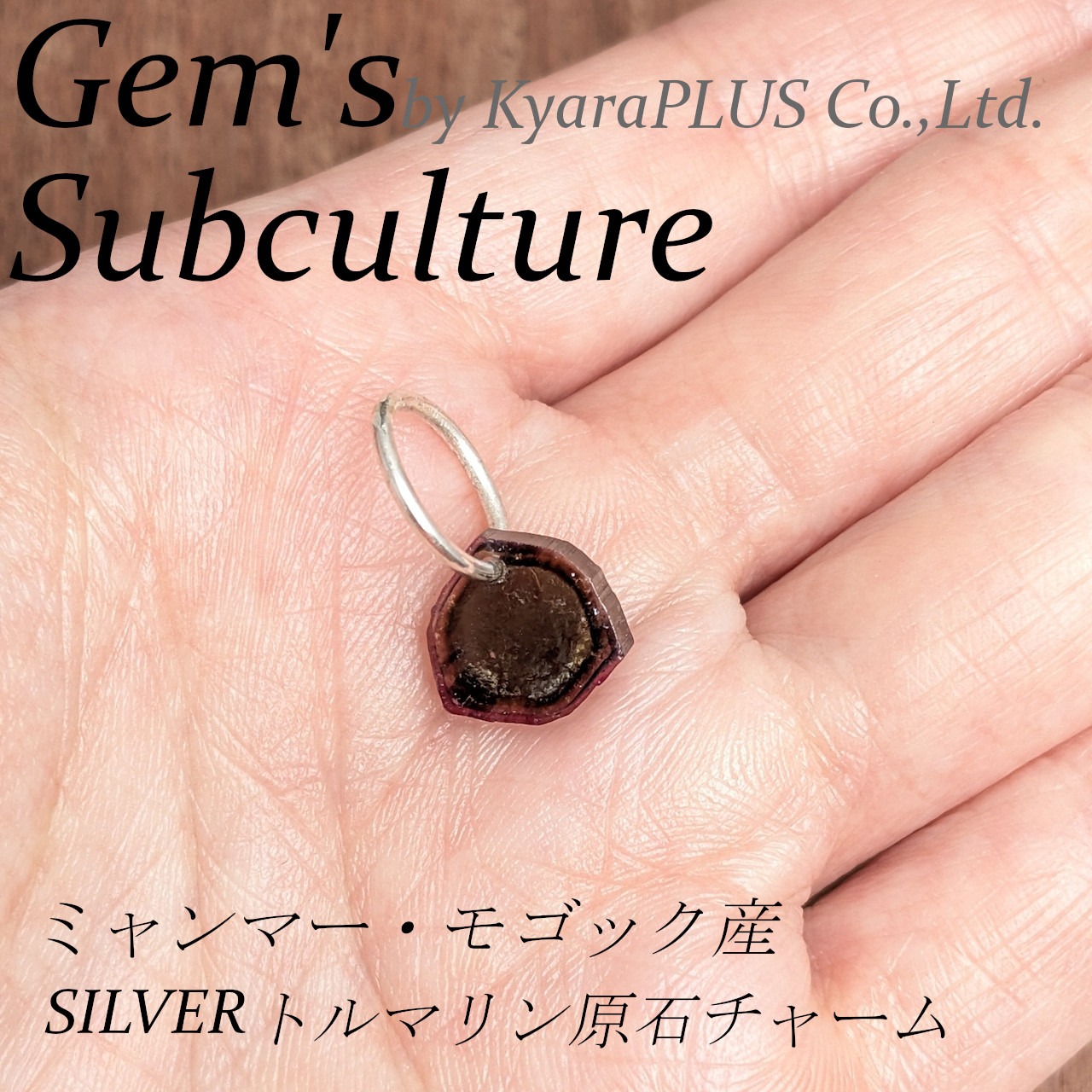原石表面の艶感も相まって、さりげなくも存在感のあるチャームに仕上がっています。フープ状のピアスにアクセントとして通すのも、遊び心のある使い方です。