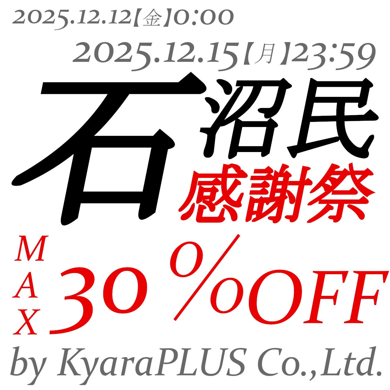 2025.12.12【金】ー12.15【月】は石沼民感謝祭を開催いたします!