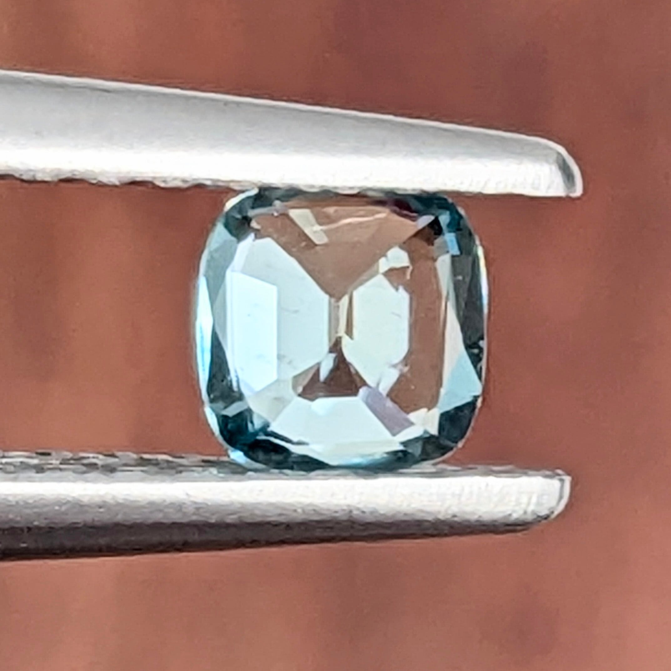 グランディディエライトは、一見してそれとわかる独特のグリーン味を帯びたブルーが印象的です。今回ご紹介の1ピースも、色は淡めですが発色がとても美しい1ピース。透明度も高いです。グランディディエライトは“ダブリング(石を通した向こう側が二重に見える現象)”が強く、それによるまるで夢を見ているような「ぼやん」としたテリも魅力的。インクルージョンが少ない個体は、とてもレアです。
