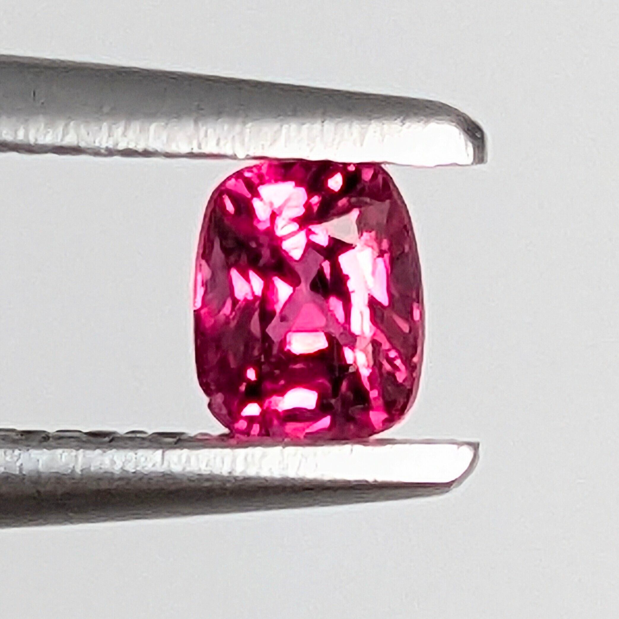 0.19ctとは思えないほどの存在感を放つピンクスピネルの登場です。瑞々しく閃光を放つような眩しい色と輝きに目を奪われる一粒。角の一か所にわずかな欠けがありますが、肉眼では気にならないのと、枠にセッティングしたときに爪の下に隠せる程度の小ささです。瑞々しくてジューシィで生き生きとした美しさ、あなたの生活のパートナーにいかがでしょうか?