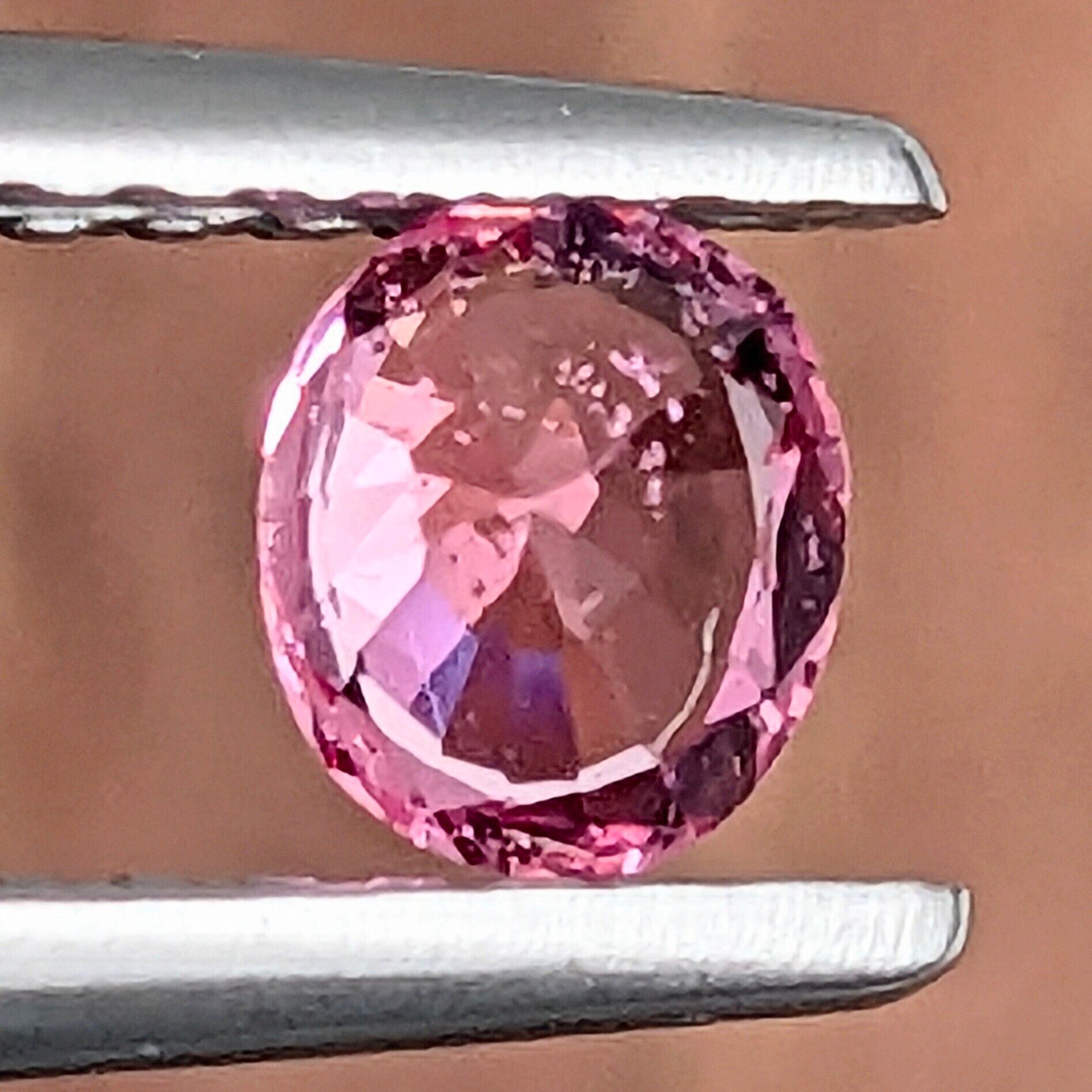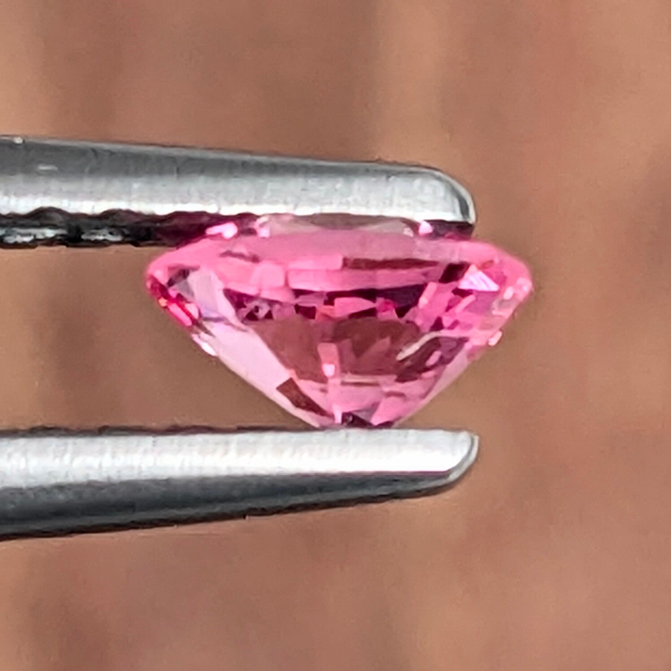 とても可愛らしいピンク色に目を惹きつけられる1粒。光に当たるとピンク色の濃淡の煌めきがコロコロとその表情を変え、小さな妖精たちが石の中で笑い合っているようです。スピネルは本当にその色合いが多彩で、同じピンク色でもその表情は様々。今回ご紹介のピンクスピネルは、その中でもとってもラブリーな1粒です。是非、この色と輝きをご覧ください!
