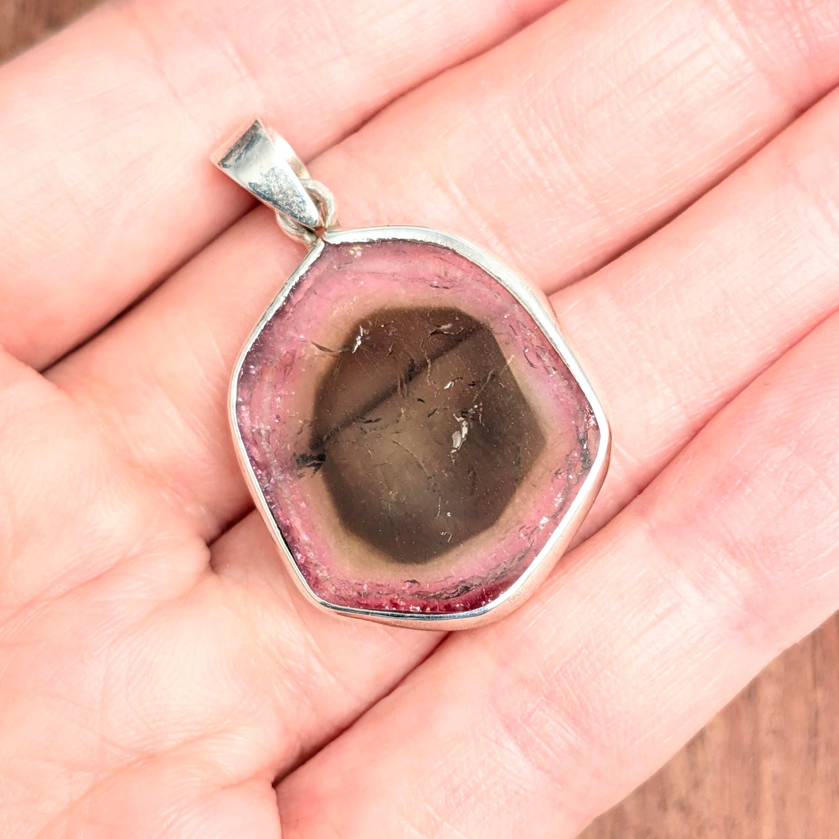 透明感と色のコントラストとのバランスがとても美しい一品。「ウォーターメロン・トルマリン」と呼ばれる色合いと逆の色の配置になっていますが、ピンク色とグリーンの色の組み合わせがやはりフルーツ感が出ていてとてもかわいいです。大きめサイズも嬉しいところ☆