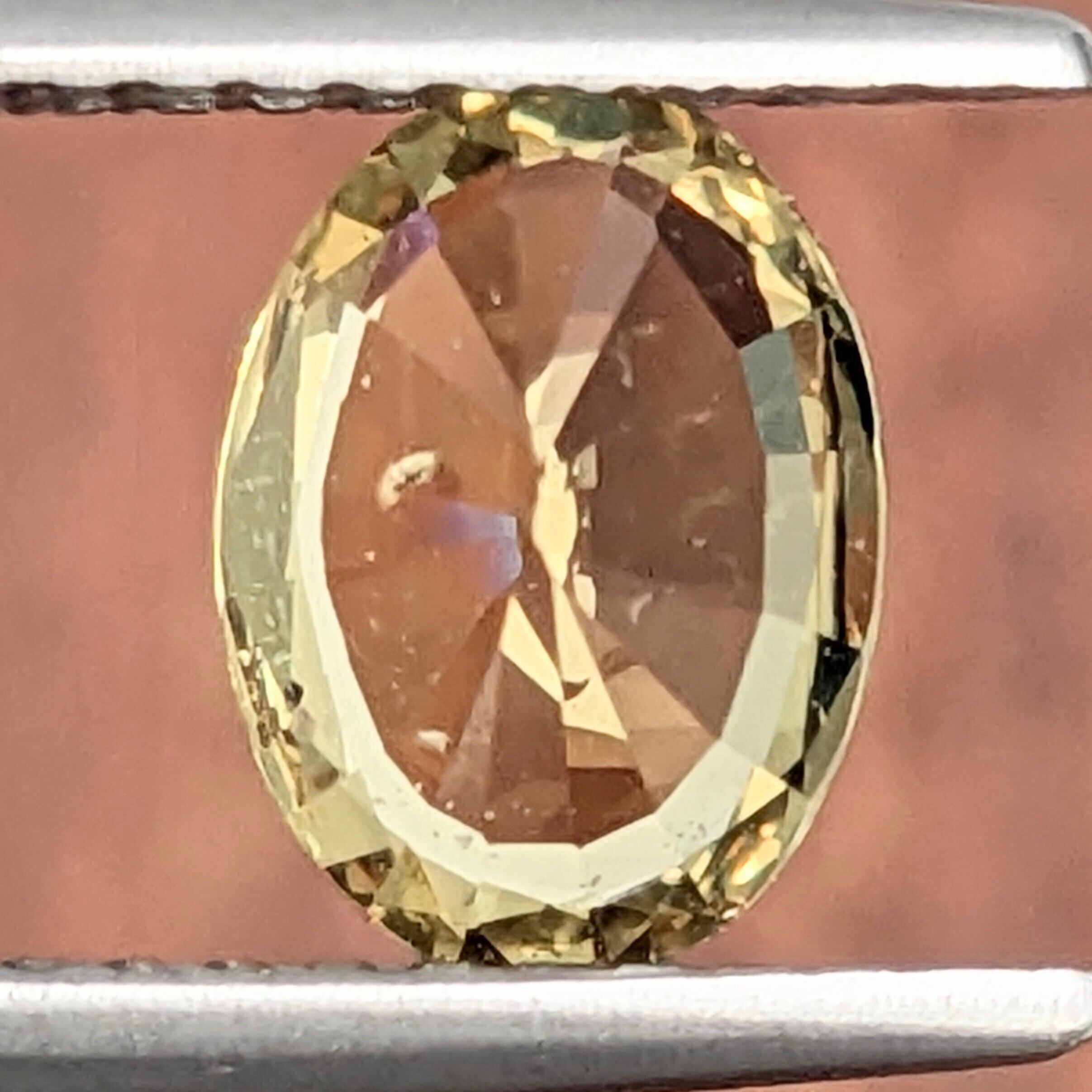 イエロー系のサファイアは、ひまわりの花を思わせる赤味を帯びたイエローの“ゴールデンサファイア”が有名ですが、こんなレモンカラーのスッキリした美しい結晶も存在します。今回ご紹介のイエローサファイアは、しかも“非加熱”。わずかにグリーン味を帯びていますが、そこがまた「熟しかけのレモン果実」を思わせる瑞々しい美しさを感じさせます。小さなフェザーはありますが、透明度も煌めきも抜群です。