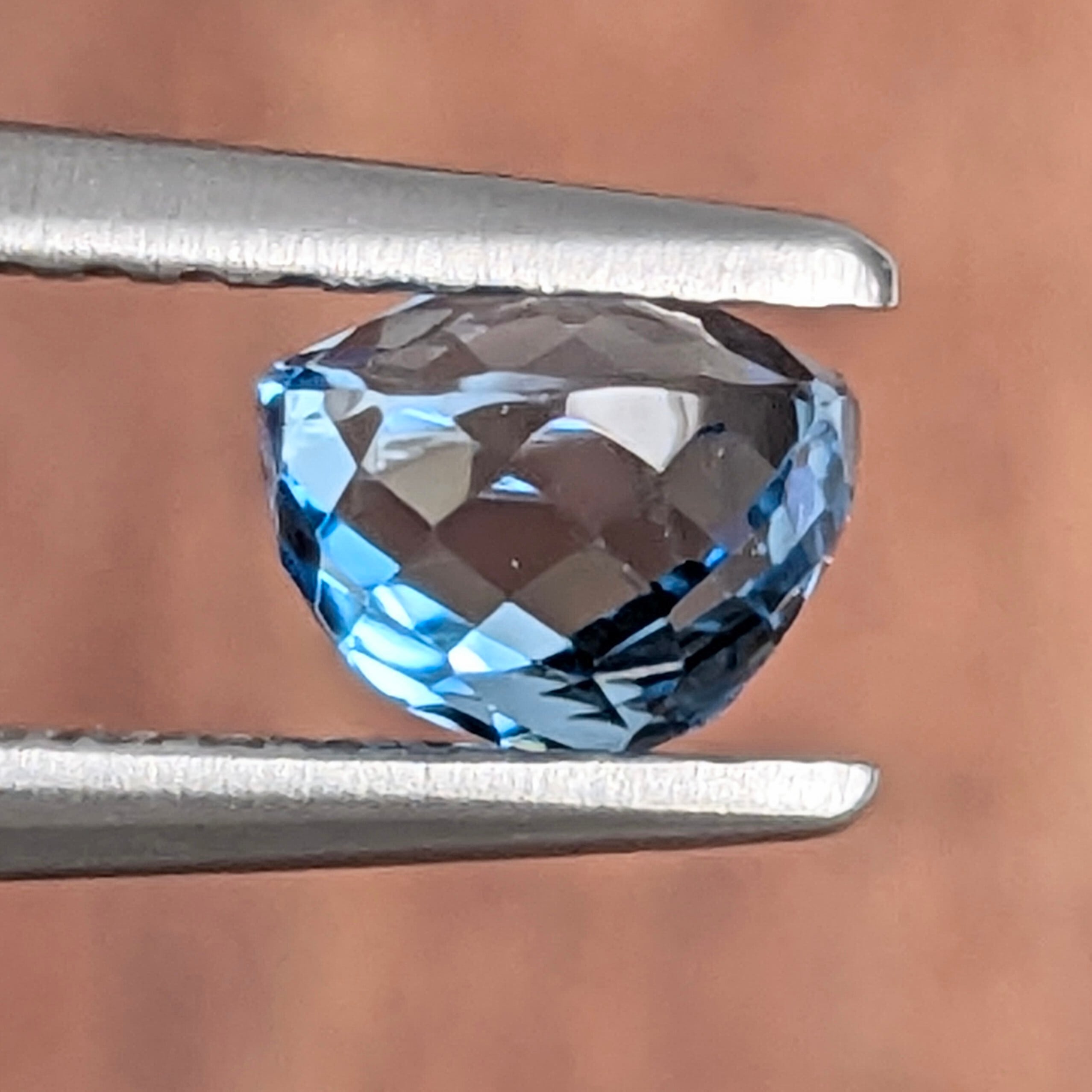 「サンタマリアカラー」と呼ばれる、極上のブルーのアクアマリンです。アクアマリンのブルーは不思議で、どこまで濃くなってもいわゆるサファイアのようなブルーではなく、あくまでも“アクアマリンブルー(濃い“水色”)”をしています。今回ご紹介のピースは、それに加えて透明度も高い!インクルージョンはほとんど見られません。そして更に付け加えるのであれば、現在は採掘されていない「ブラジル産」のレアな一品です。