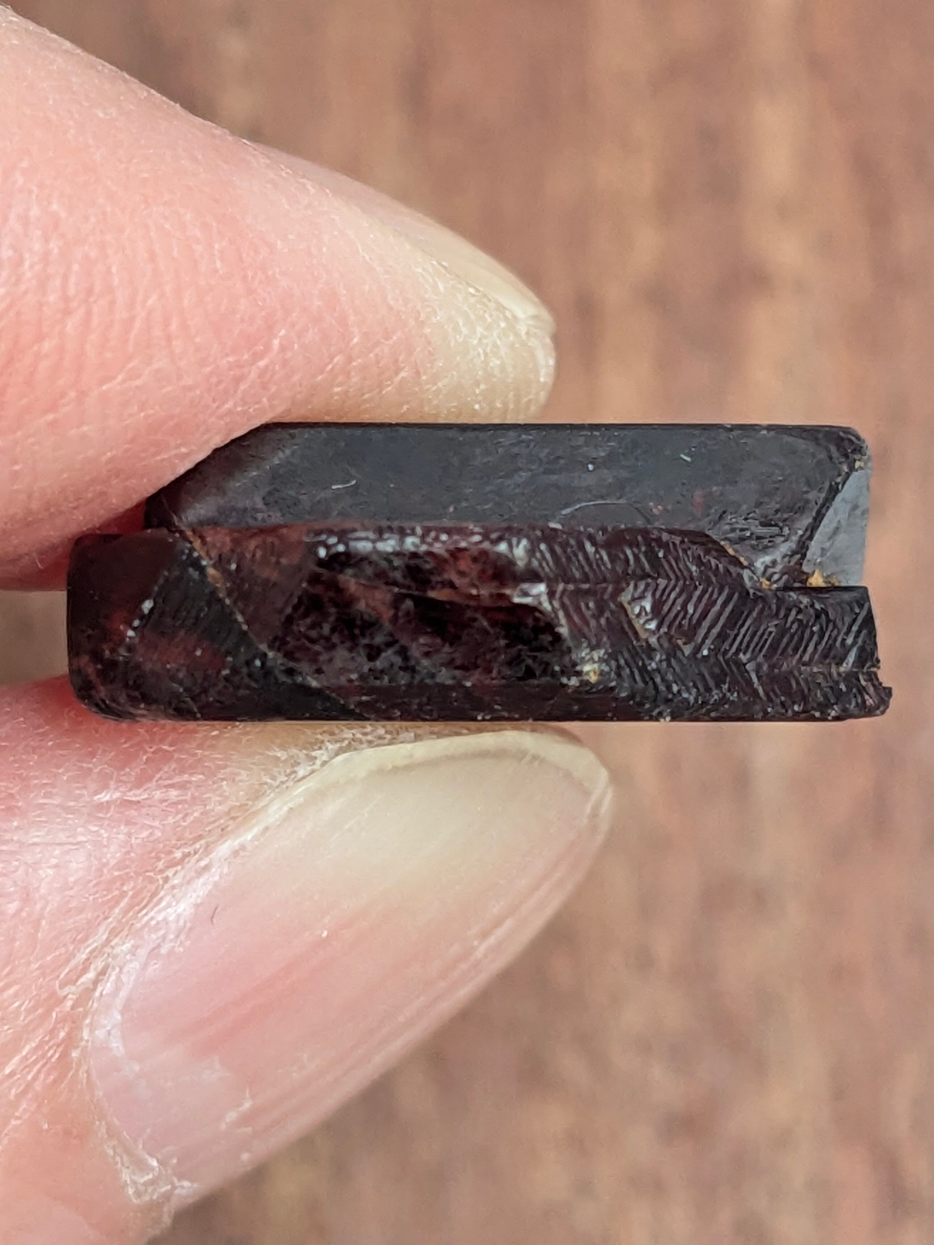 かなりのボリュームのあるスピネル原石の登場です。スピネルは「等軸晶系」と呼ばれる結晶の決まりがあり、制約なく成長することができると「正八面体」の結晶になります。今回ご紹介の原石は、その一面だけがキレイに表れている1ピース。この平面状の結晶は、恐らく“双晶(そうしょう)”という現象だと思われます(難しい説明は割愛☆)原石コレクターの方にとっては、見逃してほしくない1ピースです。