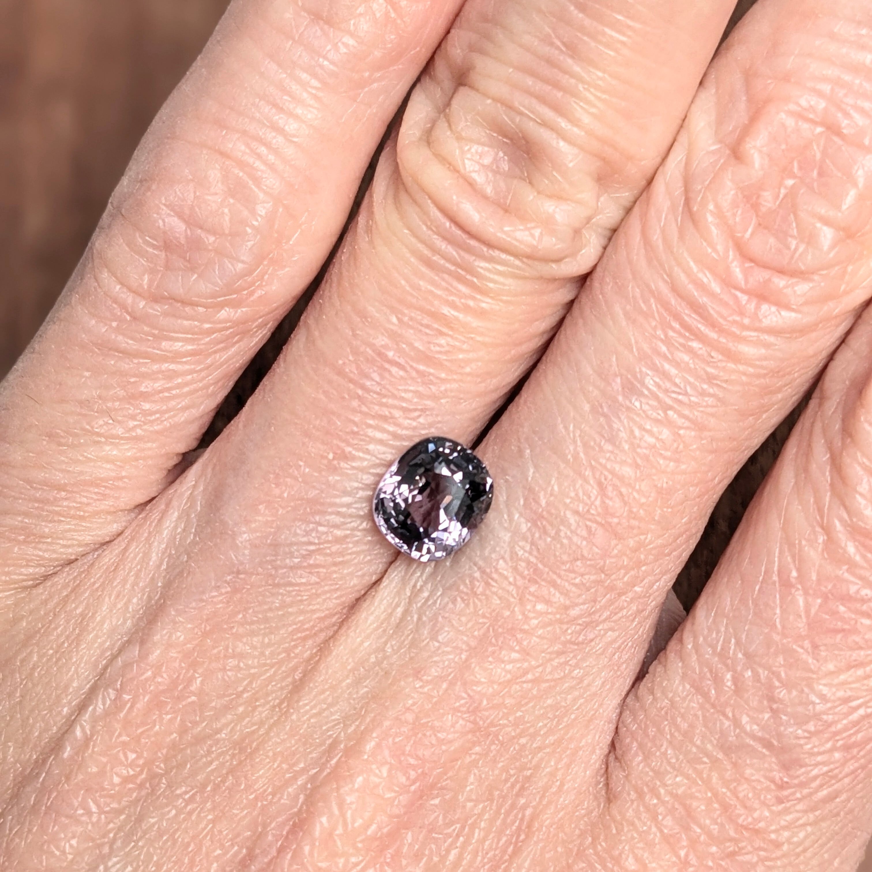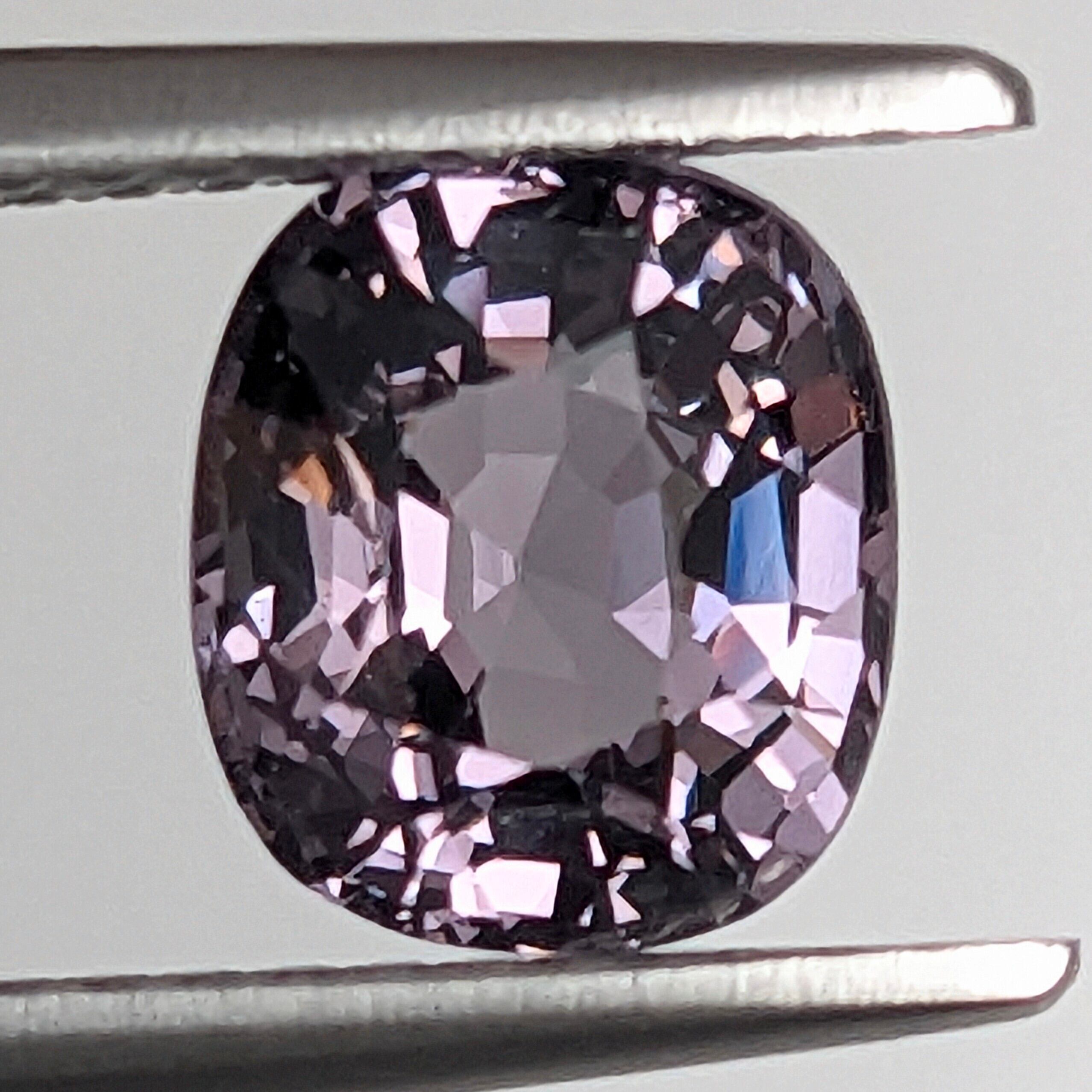 あらゆるパープルカラー、バイオレットカラーのどの宝石とも違う、スピネル特有の“憂いを帯びた紫”に目を奪われる1粒。スピネルは若干“グレー味”を帯びやすい性質があることから、このような大人っぽい色合いの個体が生まれます。でも“地味”かというと、とんでもない!高い硬度(モース硬度8)から生み出される強い輝きと光の閃光は、とても整っていて安心できる美しさでいつも私たちを楽しませてくれます。