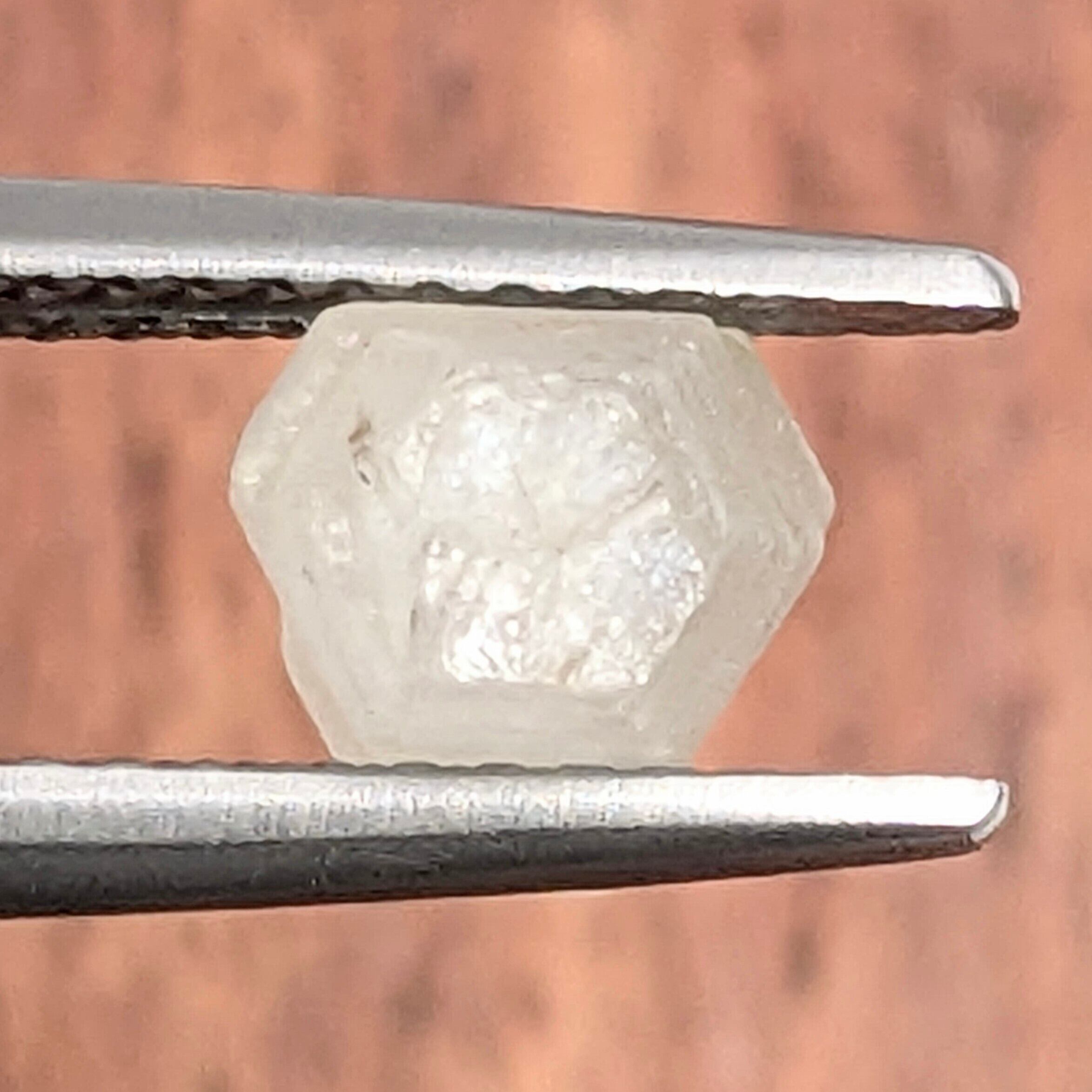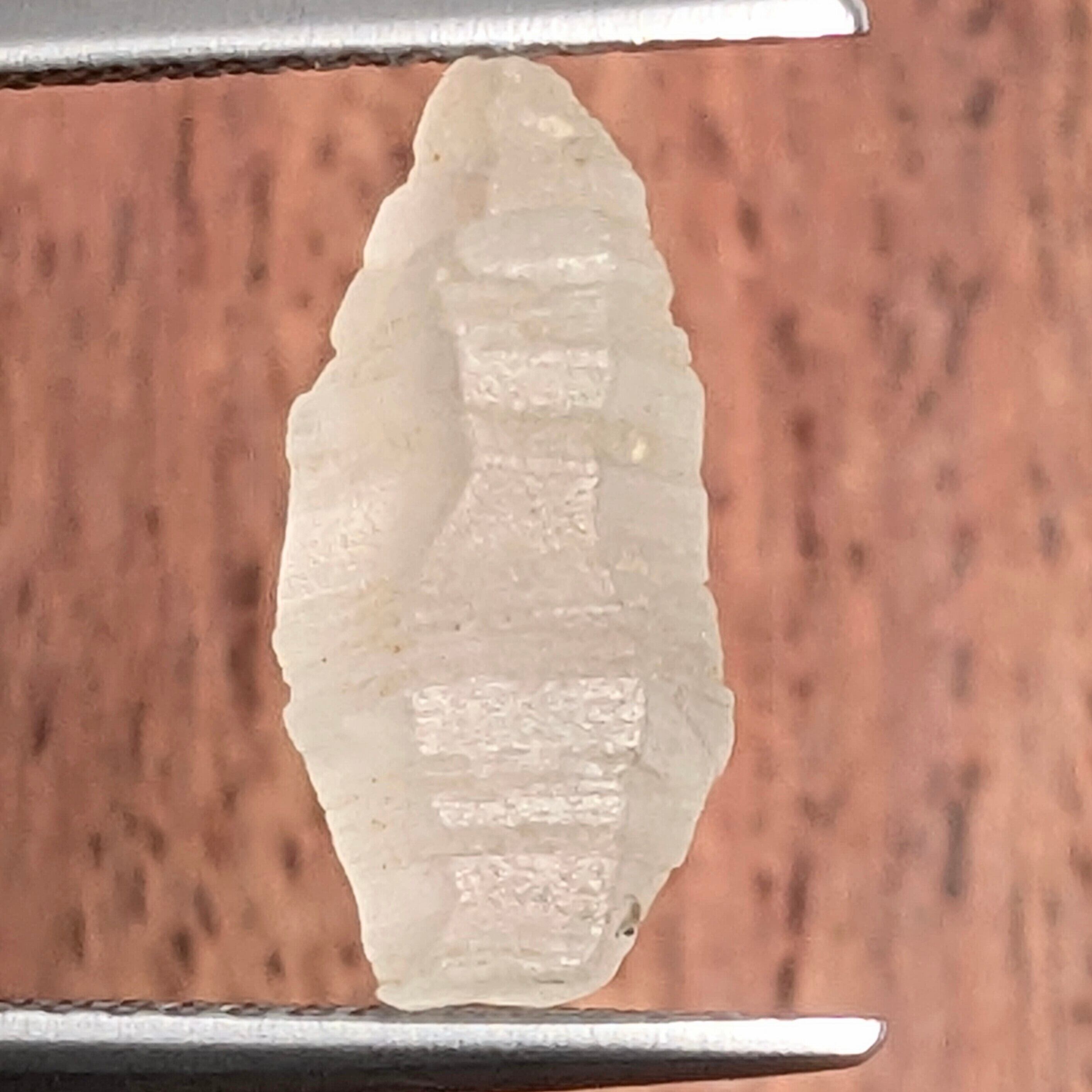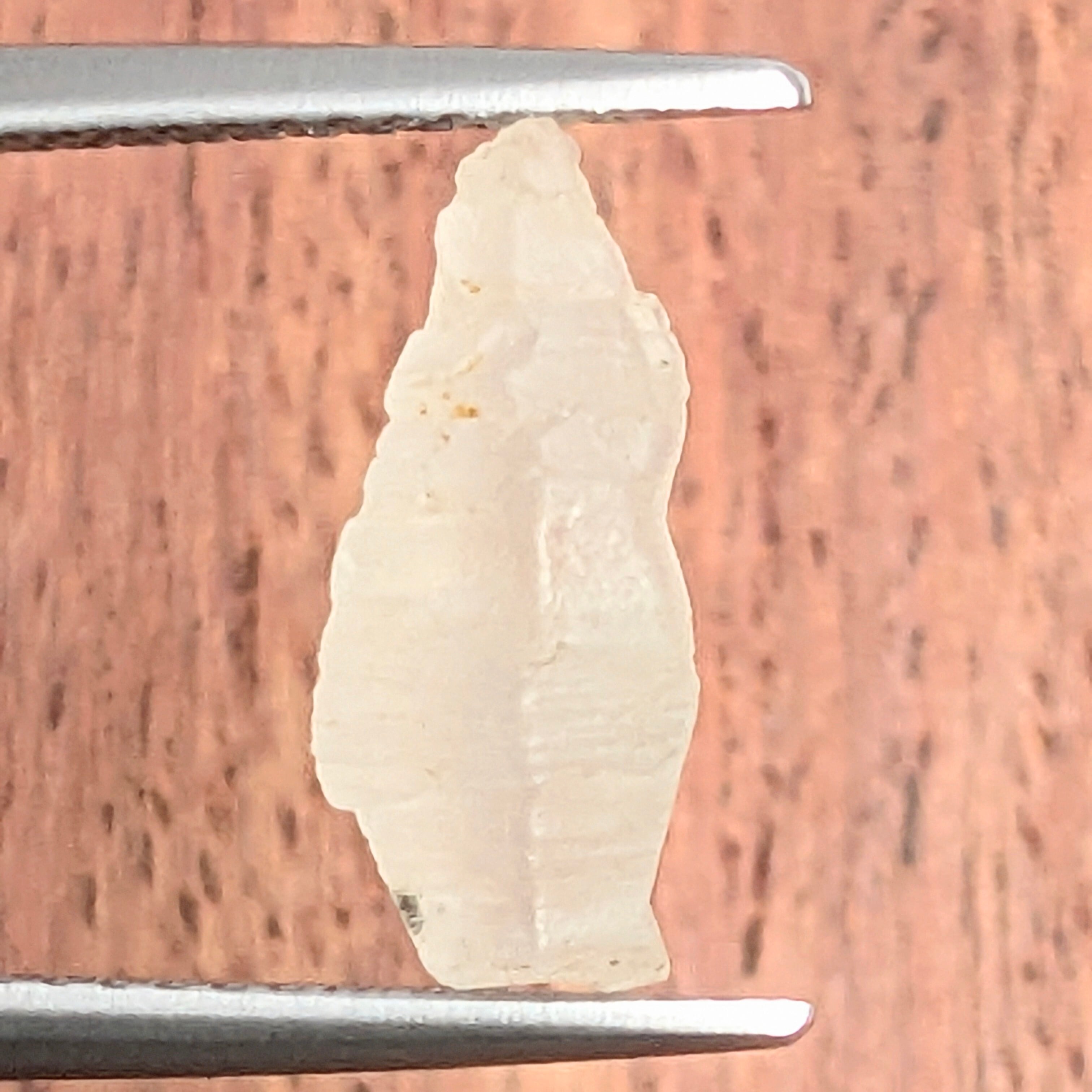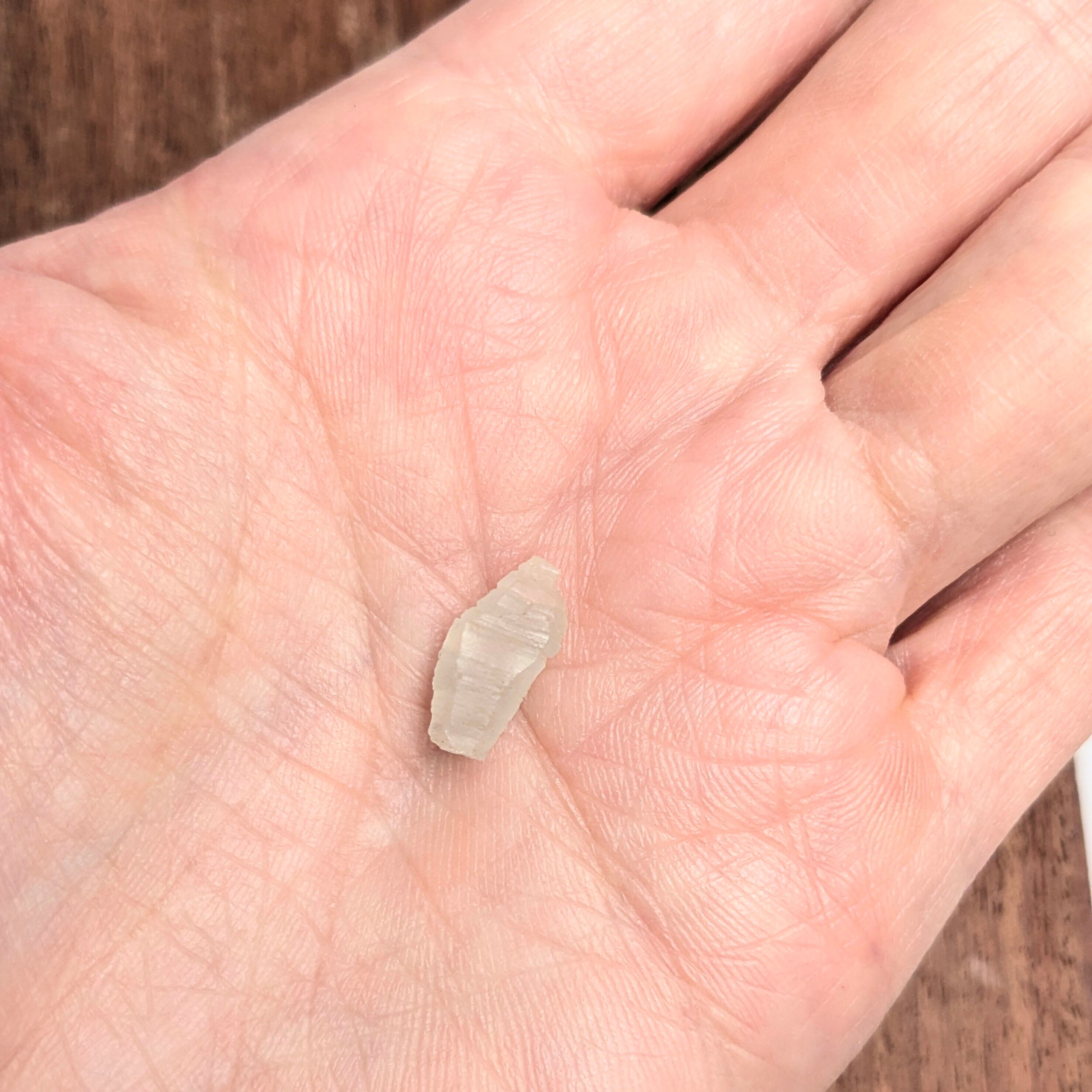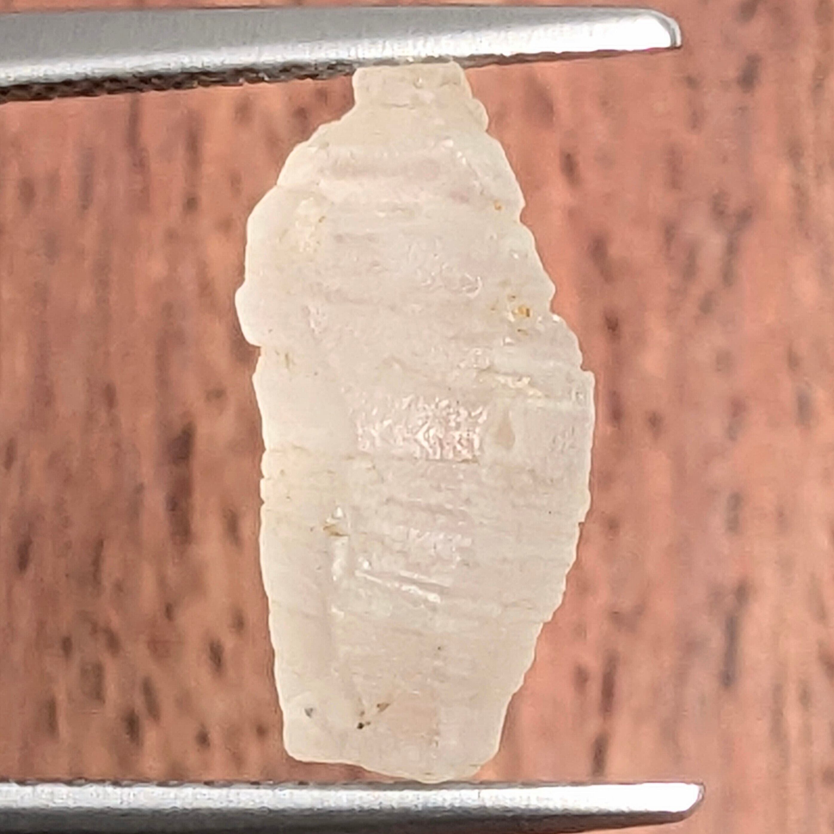 「ルビー」や「ブルーサファイア」のように色鮮やかな宝石が属する、「コランダム」と総称される鉱物の本来の姿がこの“無色透明”な結晶です。不純物の種類によってルビーの“赤色”やサファイアの“青色”などの姿に変わりますが、純粋無垢な結晶は“色がありません”。原石の状態なのでちょっとすりガラス状の見た目ですが、カットすれば恐らく「カラーレス・サファイア」としてその美しさの姿を現します。その“秘められた美”を堪能するのが、原石の醍醐味です。