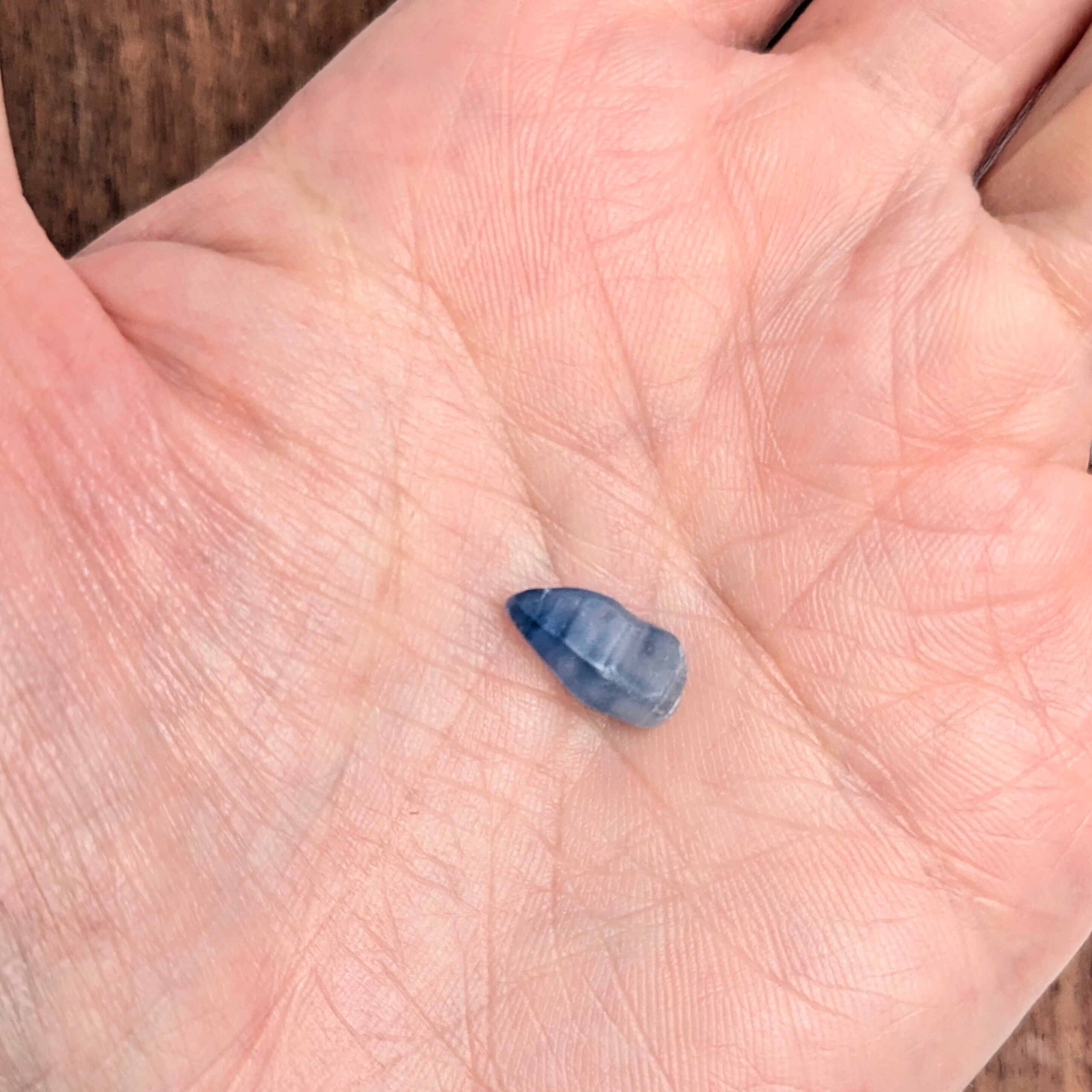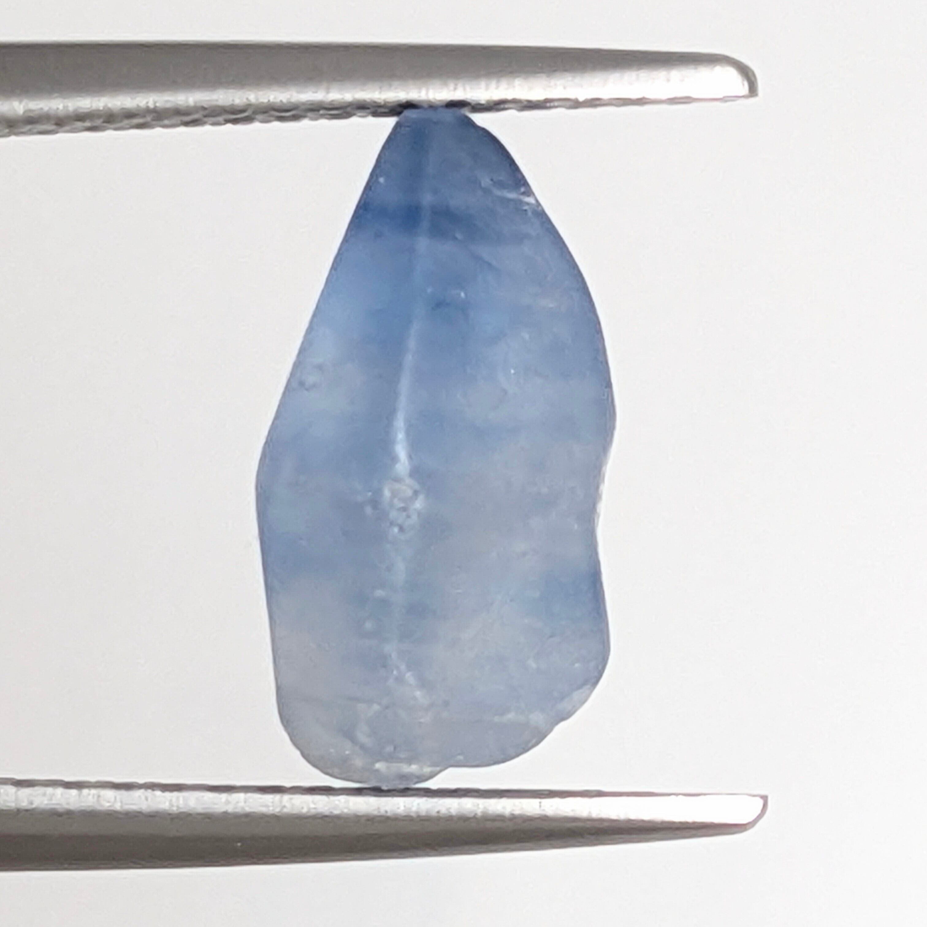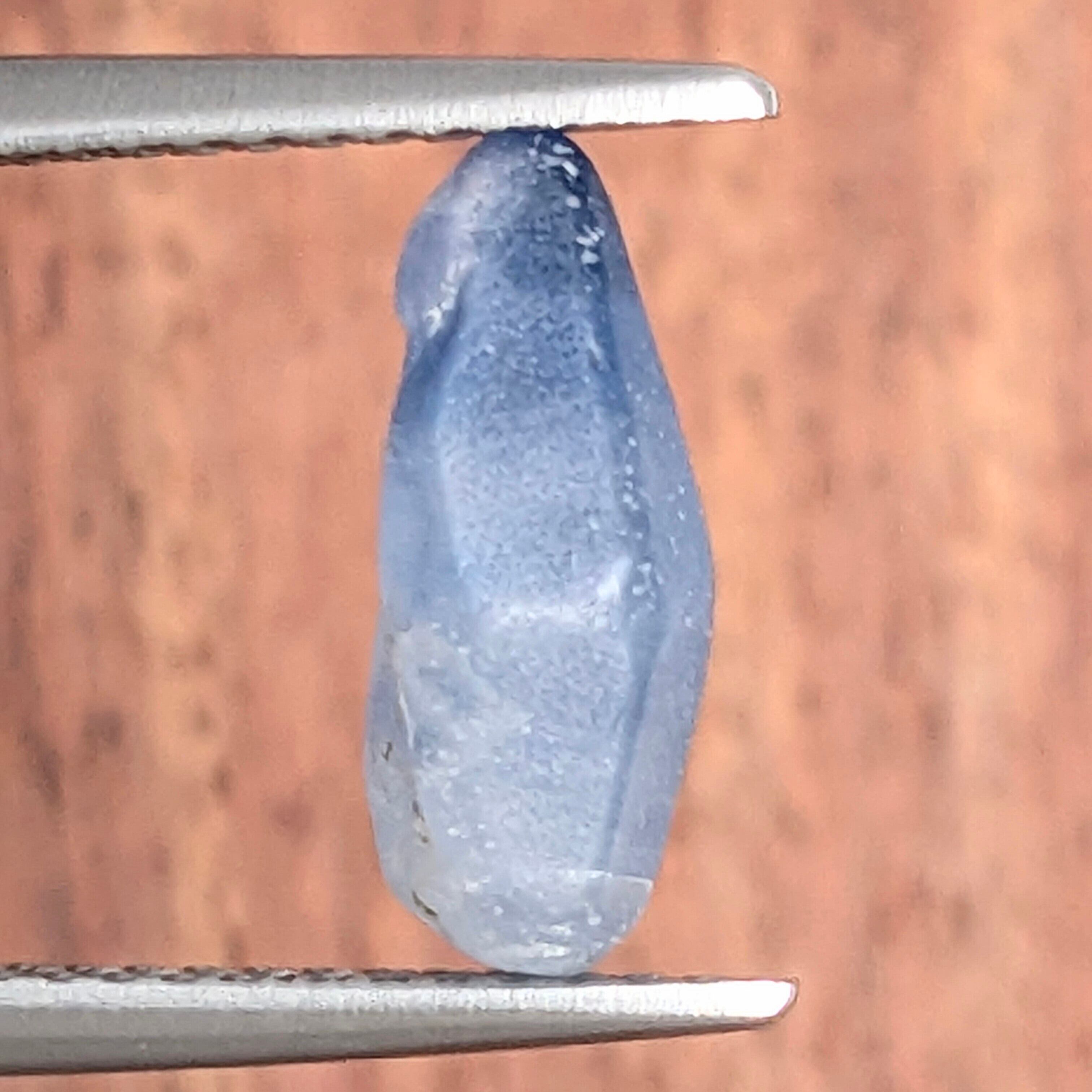 地球から抜け落ちた“牙”のようにも見える、力強さを感じるサファイアの原石。ブルーの色ムラがその成長歴を語り、悠久の時間に私たちを誘います。このように表面がすりガラス状になっている原石は、主に「漂砂鉱床」と呼ばれる堆積した地層から産出したもの。長年の旅に耐え抜いた個体だけが、この地から私たちのもとへ運ばれます。色の美しさ、表面の風合い、原石の美しい形、全てを合わせて楽しんでいただきたい1ピースです。
