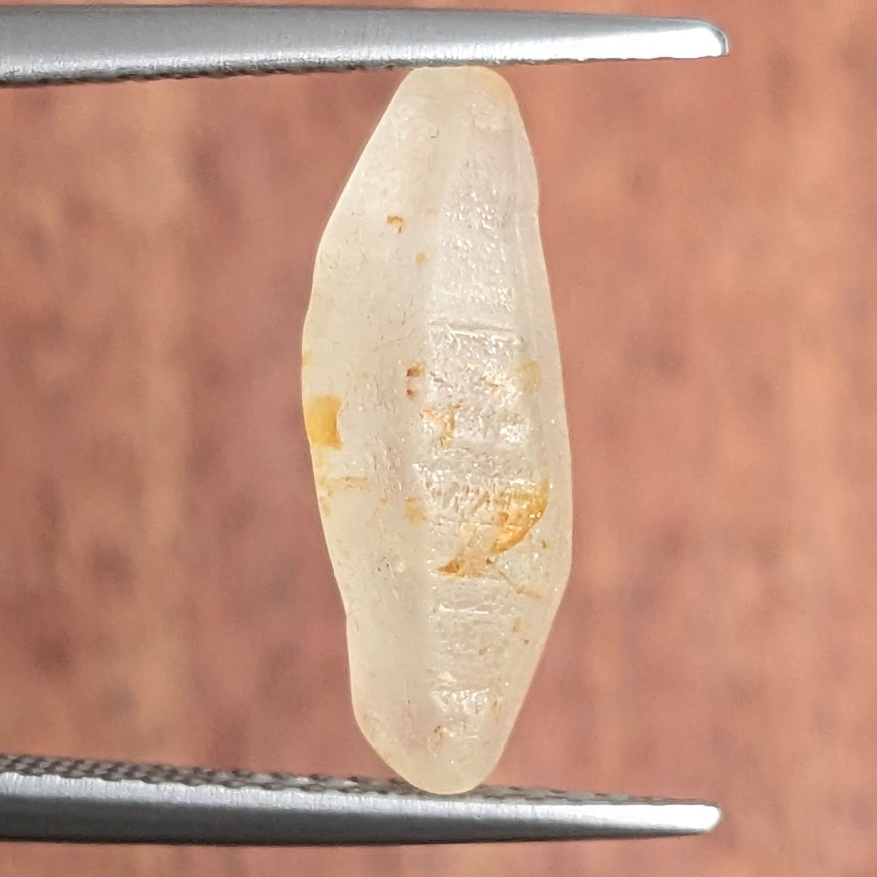 氷砂糖のような、シャリシャリとした風合いが印象的なサファイア原石です。カラーストーンの多くがそうであるように、サファイアが属する「コランダム」という鉱物は“微量元素”が不純物として結晶に混ざることで、色が生じます。純粋無垢なサファイアは、この様な“無色”。偶然にも何も混ざらなかった、純粋な結晶です。果たしてこの石には、どのような未来があったのか・・・色を空想で重ねてみるのも一興です。