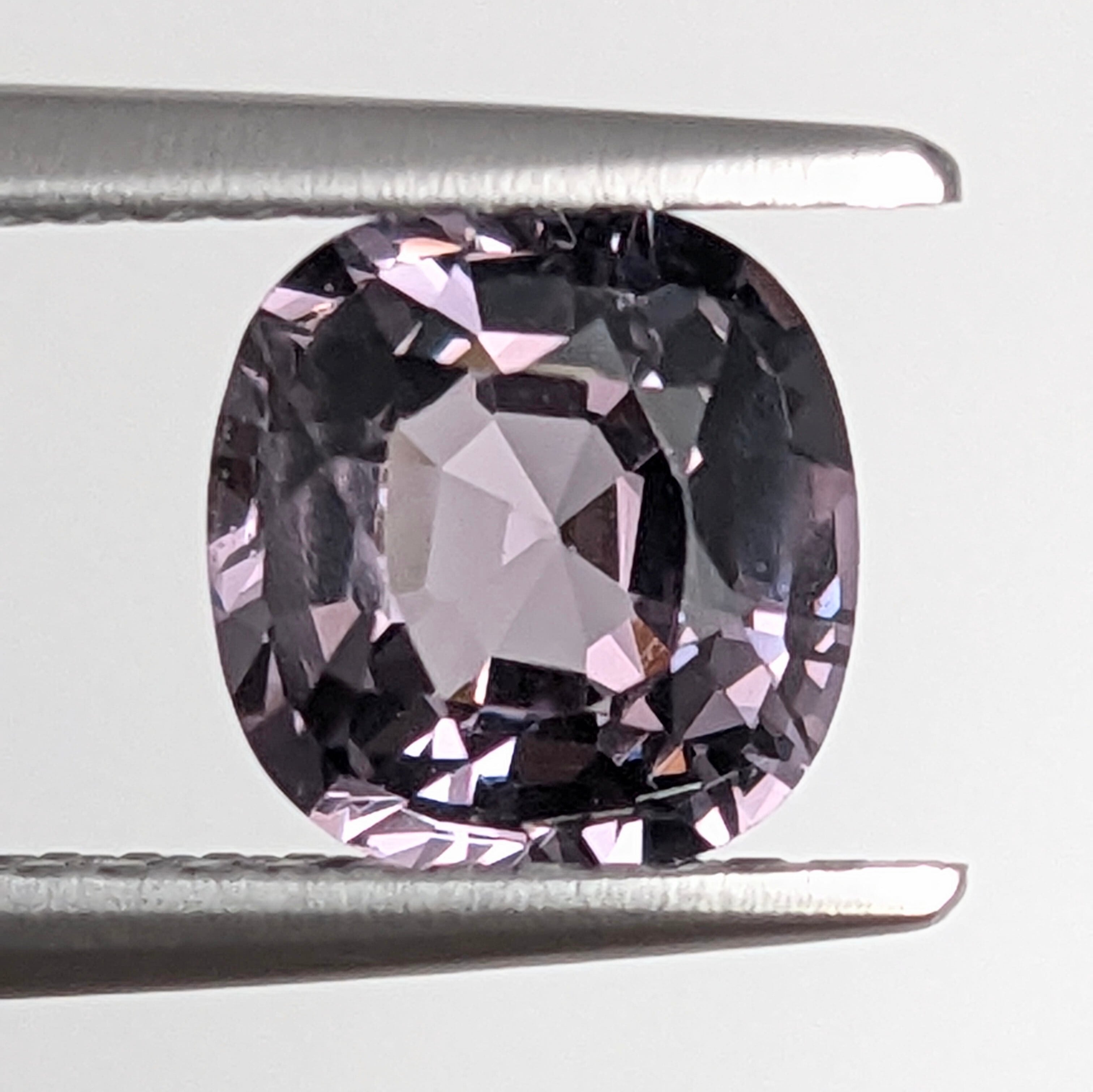 幼いころの記憶にかすむ、花壇に可憐に咲いていたパンジーの花を思わせる色合いのスピネル。色相としては、「グレー味をかんだバイオレット」といった印象。透明度が高く、輝きも強いことでかえってその哀愁漂う色合いが引き立ちます。決して変えられない過去の記憶、でもそれは時間が経てばキレイな一つの結晶として心の宝石箱にしまわれるような・・・。でもこのスピネルは、暗闇にしまってしまわず是非ジュエリーに仕立てて、たくさん身に着けてください☆