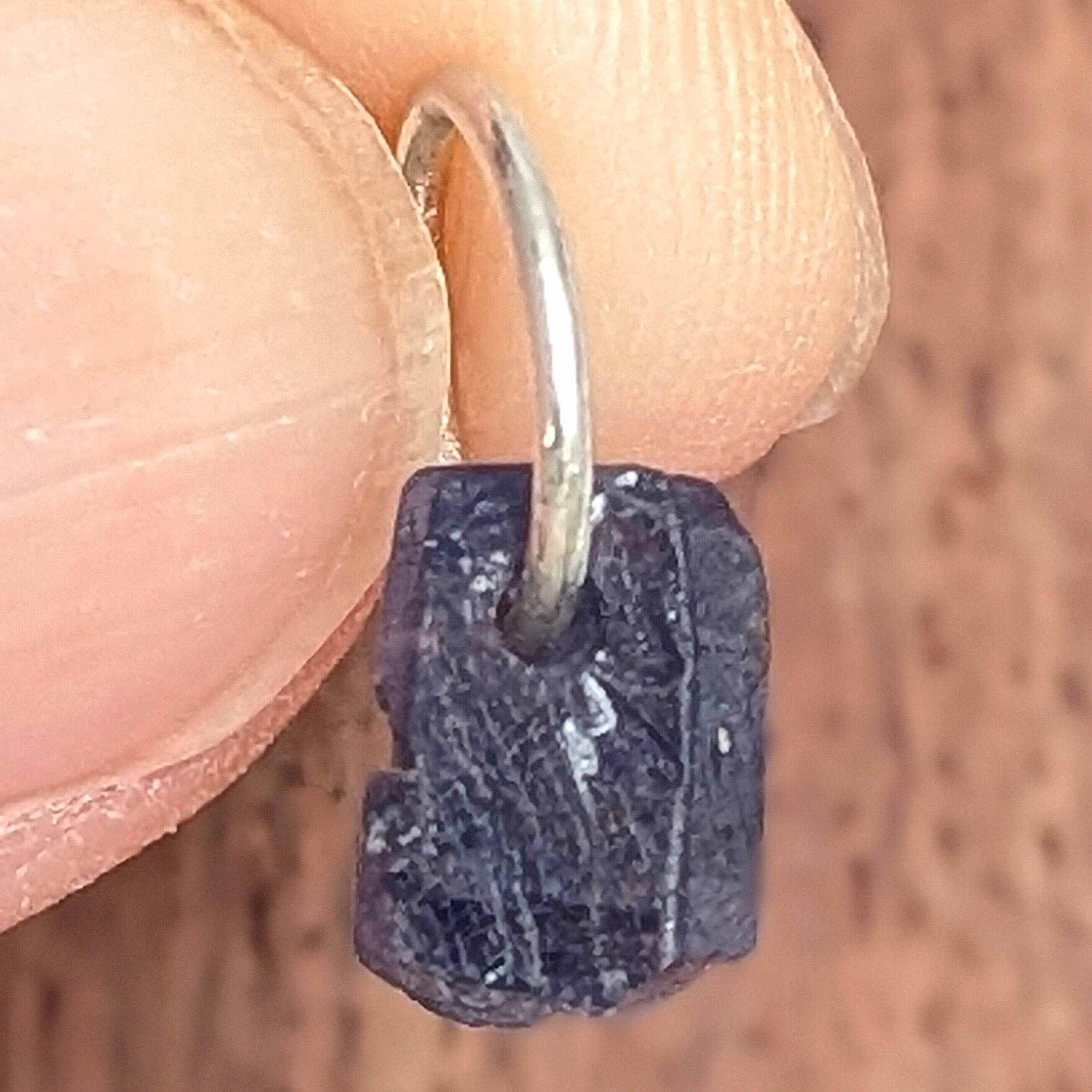 サファイアは「コランダム」と呼ばれる鉱物で、多くが“樽型(ワイン樽のような形)”もしくは“両錘形(膨らんだアーモンドのような形)”で産出することが多いですが、今回のチャームは綺麗な六角柱状です。一見ブルーサファイアのように見えますが、光をあてると若干赤みを帯びたパープルであることが分かります。結晶系も色も、存分に楽しんでいただける一品。首から地球の一部をぶら下げているような、そんな不思議な気持ちになります。