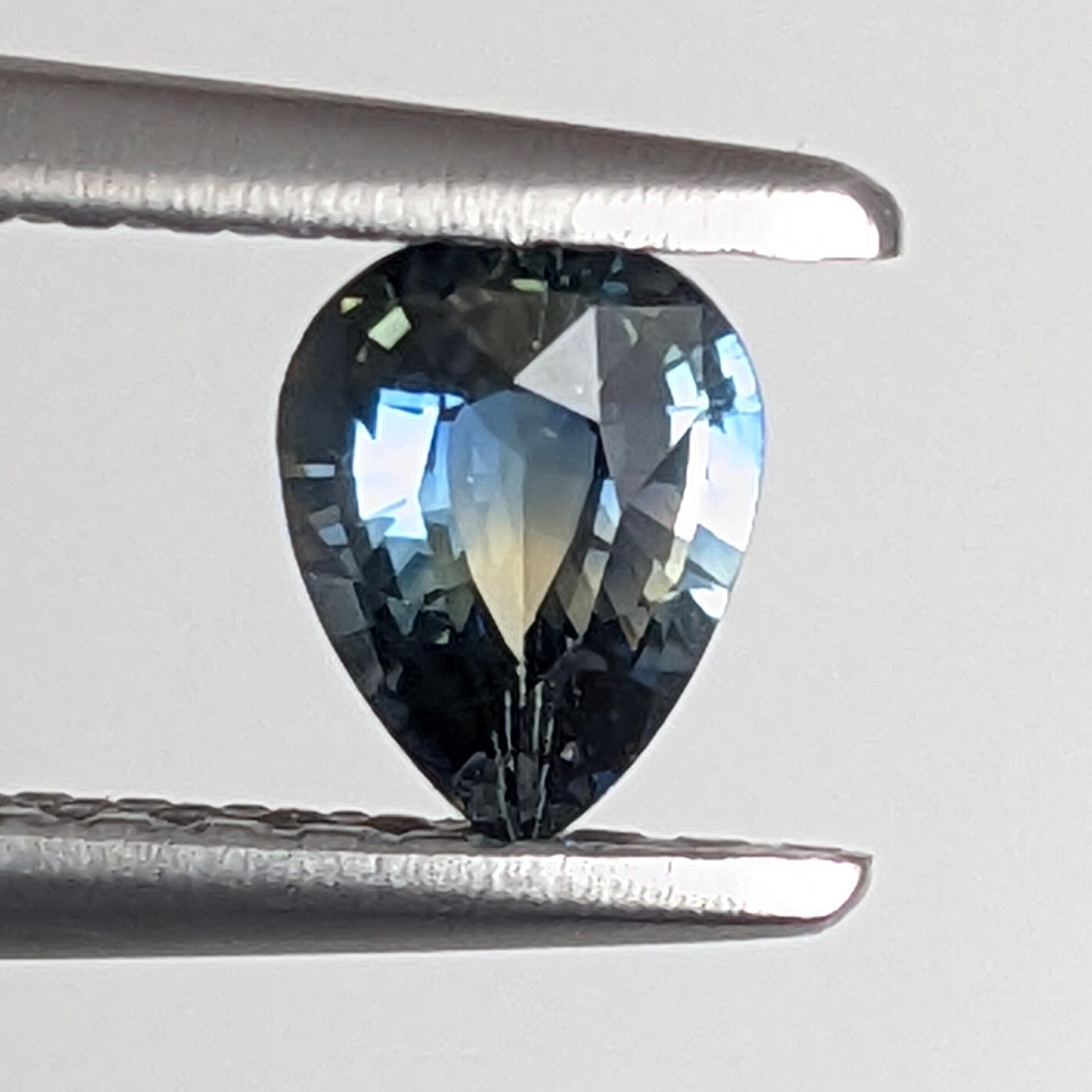 イエローとブルーのバイカラーへのグラデーションで、ちょうどその境目の部分が若干グリーン味を感じるサファイアです。複雑に絡まり合ったその色合いと、その色相を引き立たせてくれるサファイア特有の強い輝きがとても美しいです。イエローの部分は「Fe(鉄)」、そこに「Ti(チタン)」が加わるとさらにブルーになるということは、結晶の成長の段階で周りの環境が変化した痕跡だと思いを馳せることができます。地球活動の神秘です☆