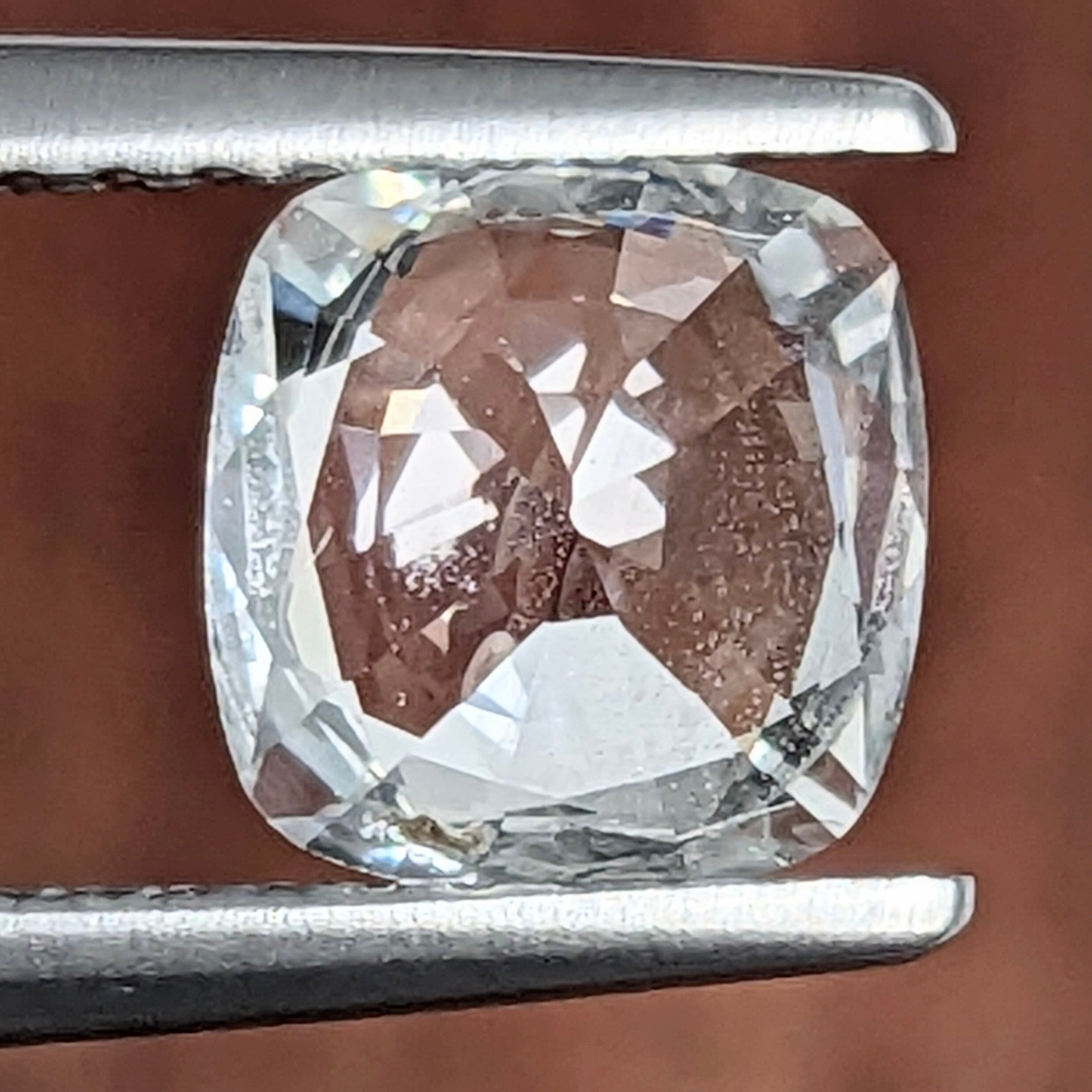 わたしは別に、サファイアやルビーののような“コランダム”のマニアではありませんが、「ホワイトサファイア」の姿を見た時だけは、ちょっと特別な気持ちになります。別にダイヤモンドほど輝きも強くないし、なんなら透明度は水晶の方がすっきりクリアかもしれない。でも、カットされたホワイトサファイアには純粋無垢な“ウエディングドレスを纏った花嫁”ような輝きに見えるのです。特に今回のホワイトサファイアは、「鮮やかなオレンジ色蛍光」を放つ1ピース。その隠されたポテンシャルは、まるで花嫁による“キャンドルサービス”のようにも感