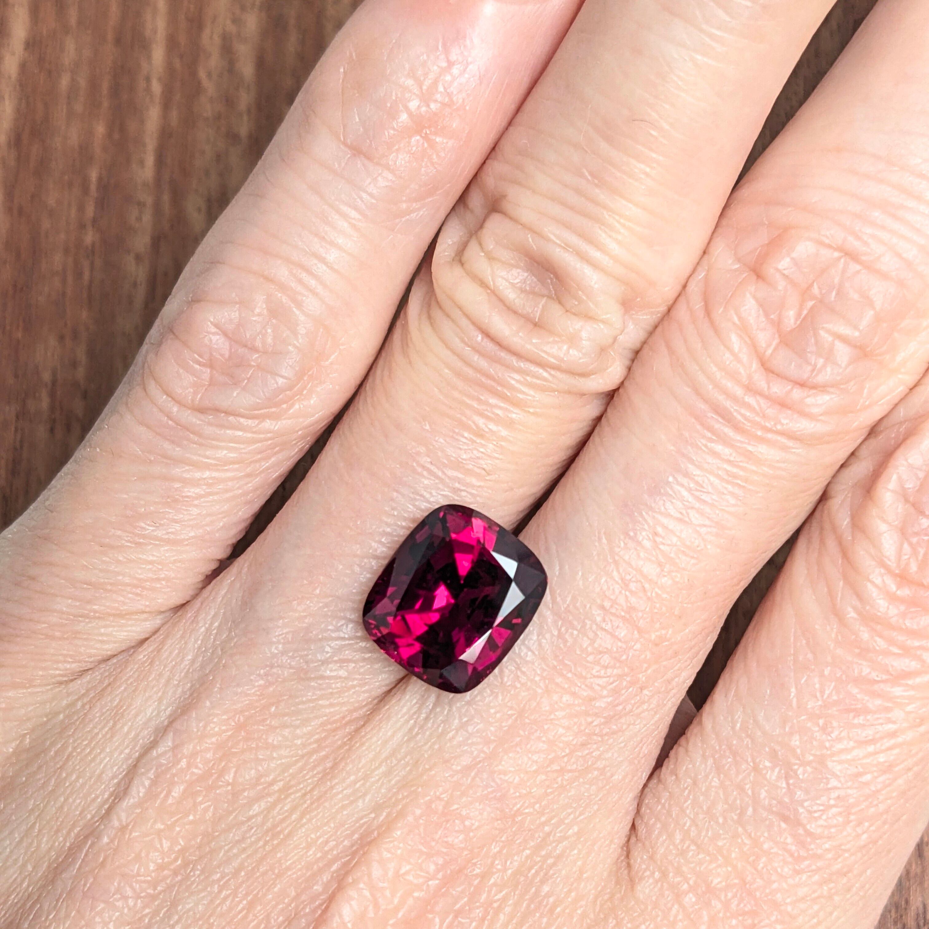 まるで、惑星の終わりの時に真っ赤に燃え上がる空に、無数の流れ星が煌めくようなインクルージョンを湛えたロードライト・ガーネット。肉眼ではクリアで輝きも色も最上級の1ピースですが、一度10倍のルーペでその内部を覗き込むと、想像を絶する幻想的な「宝石の内部世界」が広がっています。宝石のインクルージョンは、その美しさを損なわない限りその石の個性です。いや、むしろ“欠点”と捉えるかはその人次第。今回のロードライト・ガーネットは、文句なしの最上級品ですけどね。