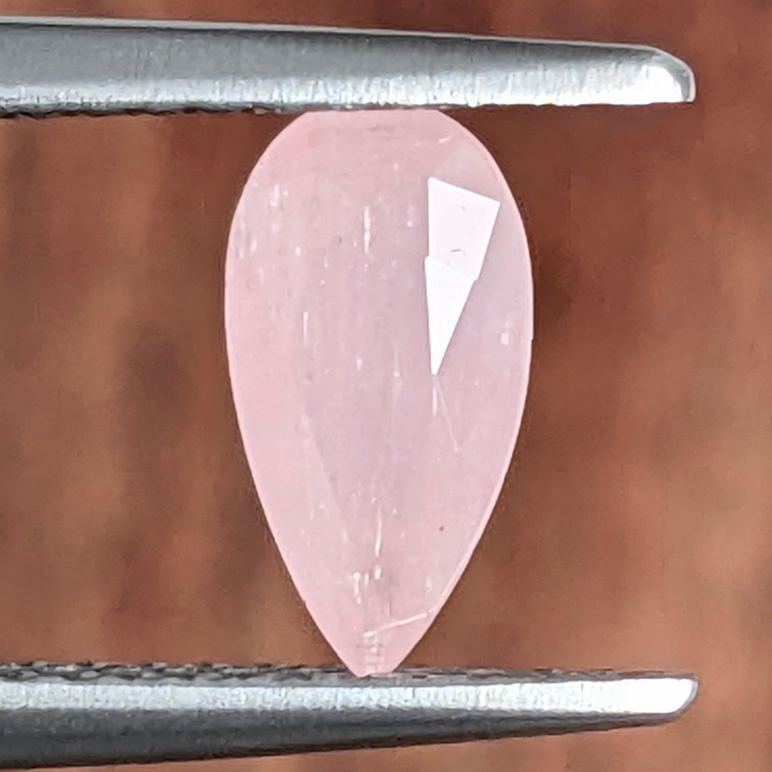 ミャンマーで直接原石で仕入れをした2.55ctの「アブデーバイト原石」を、日本にてカットした1ピース。アブデーバイトは現在のところエメラルドやアクアマリンと同じ「ベリル・グループ」に属する鉱物だと考えられていますが、原石写真からもわかりますように、柱状の細い結晶が群晶になっているような状態で産出します。今回切り出された1ピースはシュッと切れ長で、その形とは対照的な柔らかいベビーピンクが印象に残る1ピースになりました。