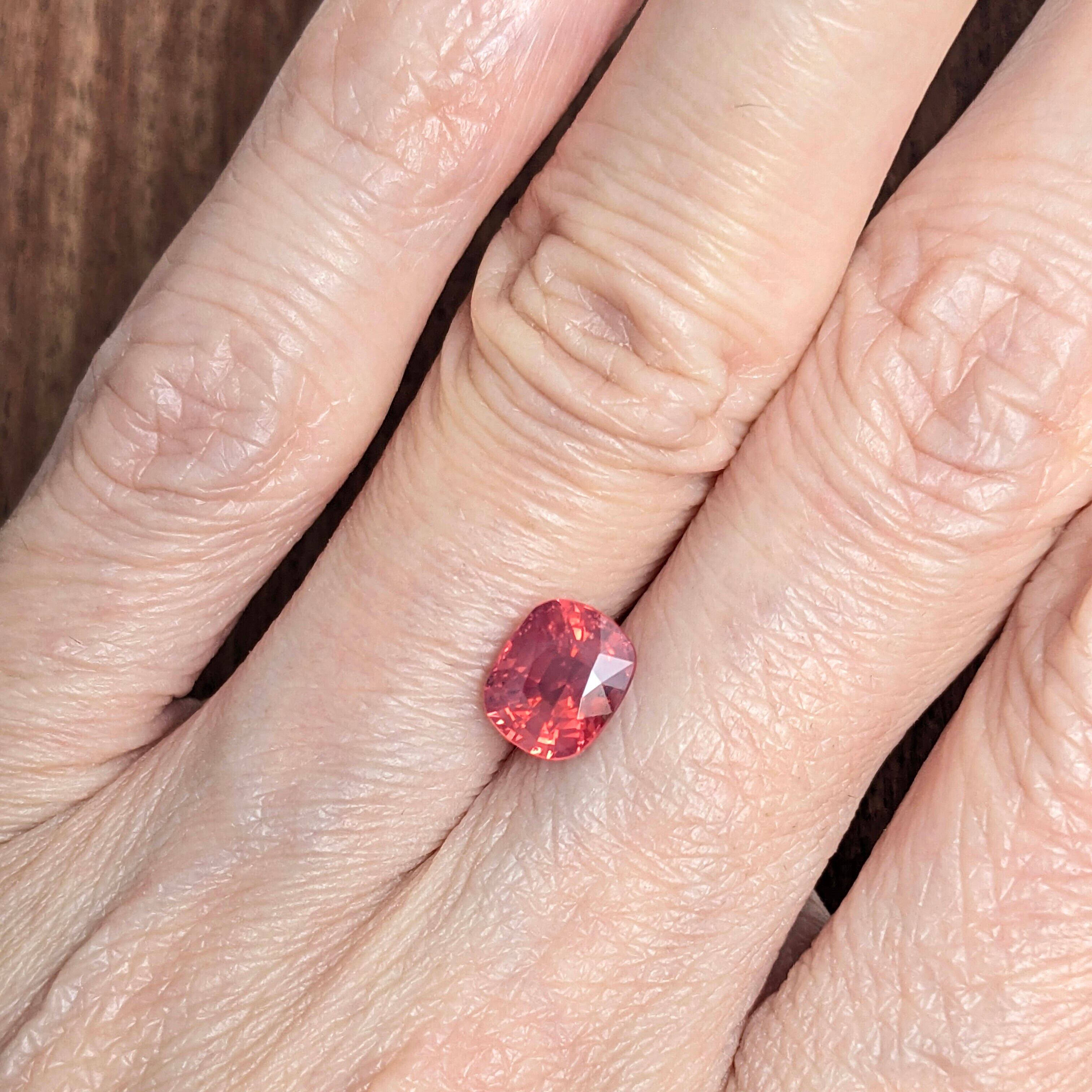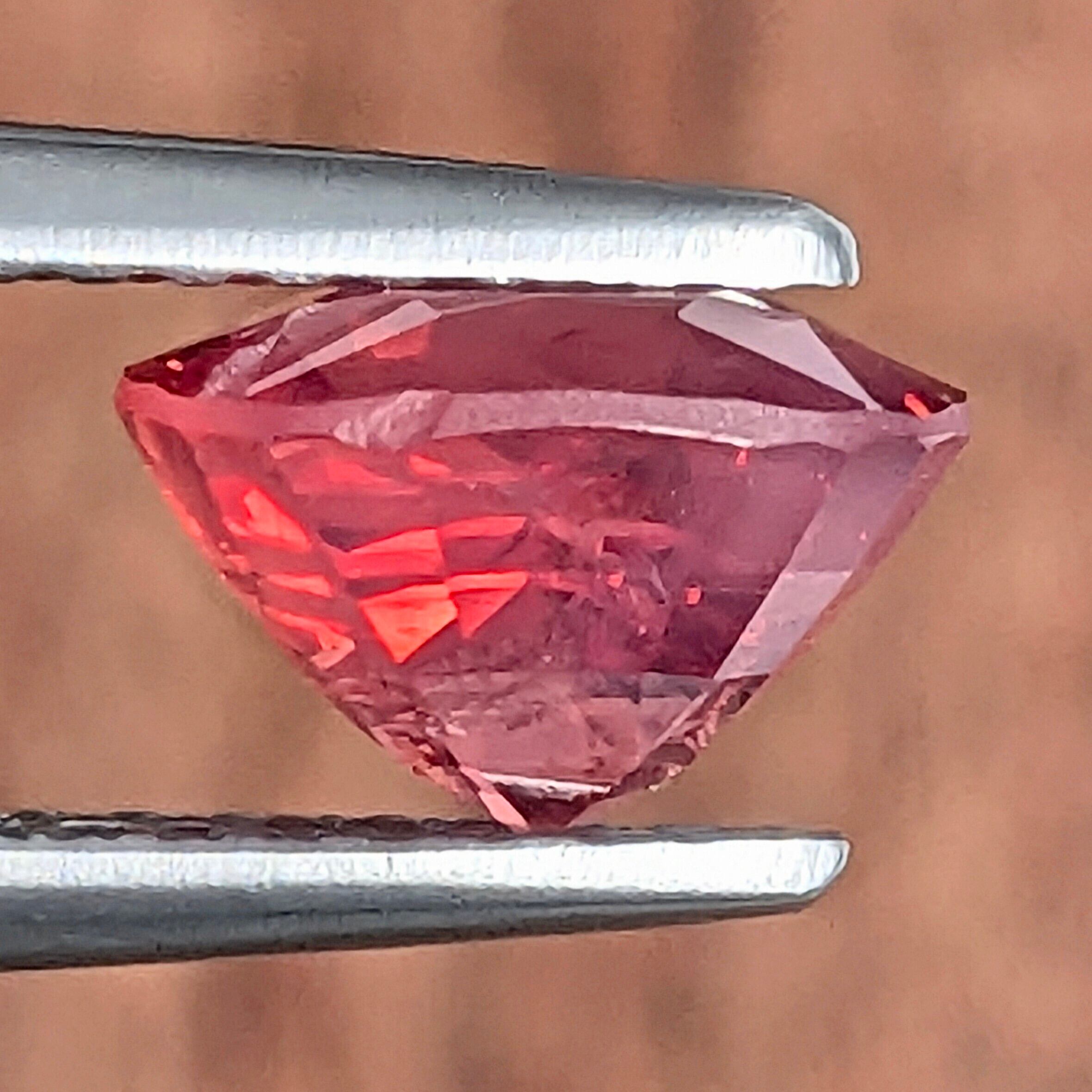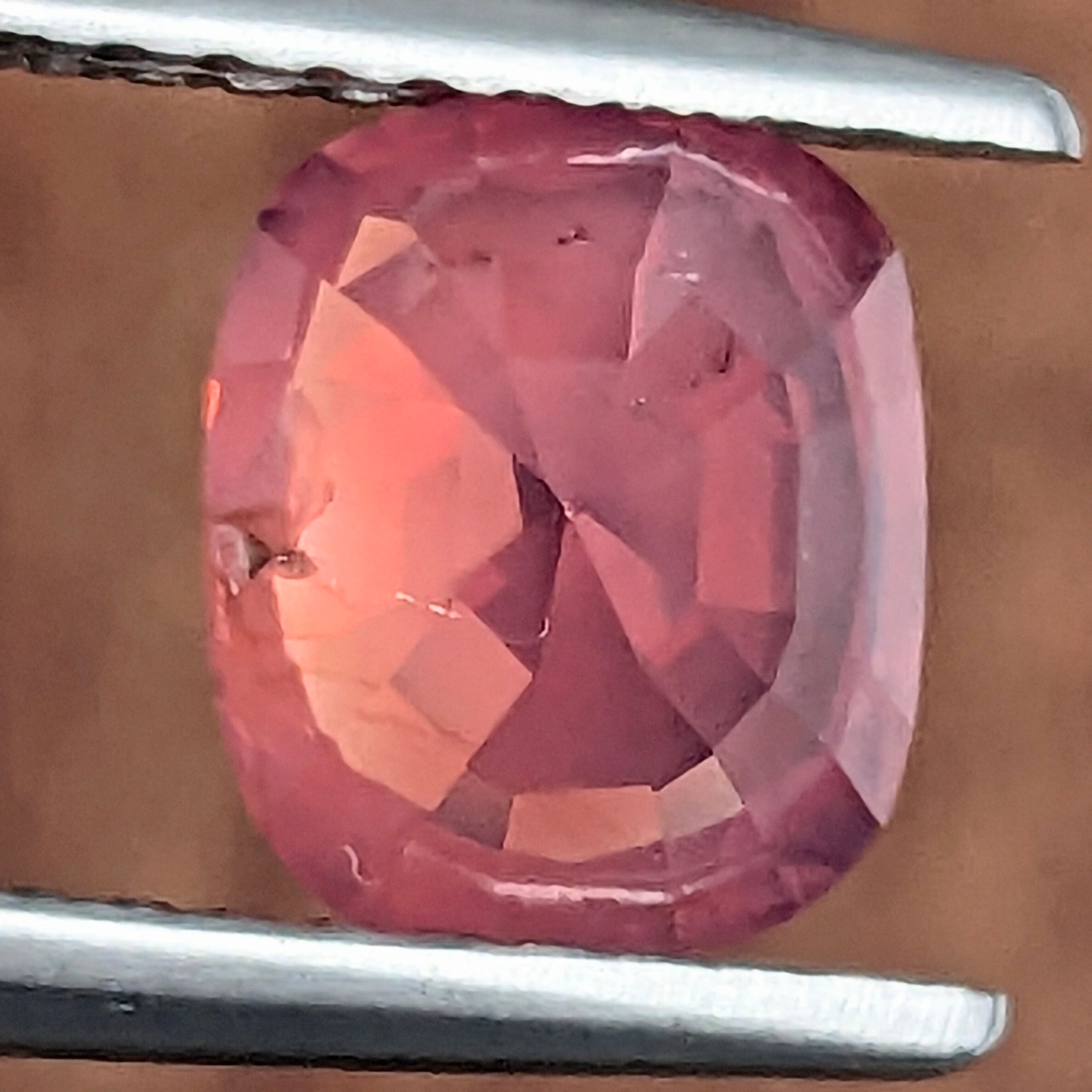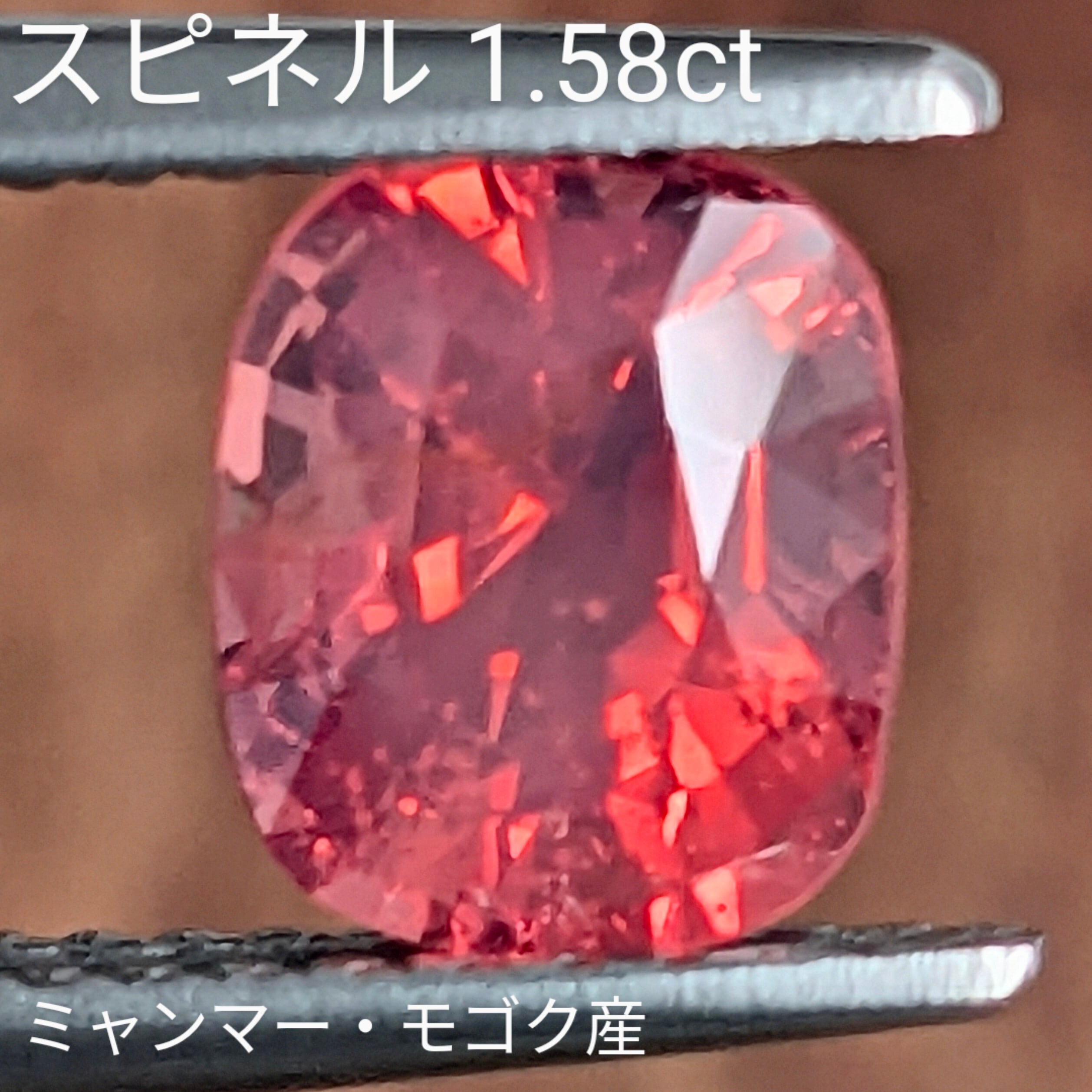 夕立にけぶる、夕陽に照らされた風景のように、幻想的な輝きを放つスピネル。いわゆる“クラウド”と呼ばれる、雲状の液体インクルージョンがこの独特の見た目の原因です。過ぎ去った追憶の記憶、まるでそこから発光しているかのように、でも穏やかに美しく輝くその姿は、誰しもが「何の宝石だろう!?」と心を鷲掴みにされます。何やら郷愁を誘う、とても雰囲気のあるスピネルです。