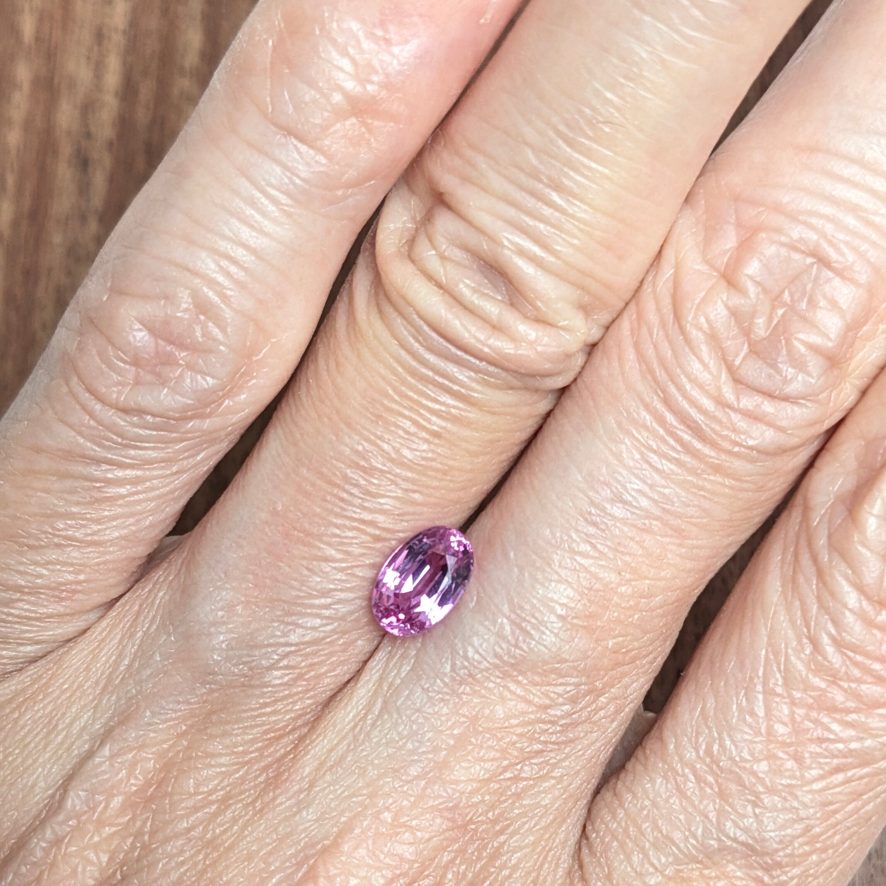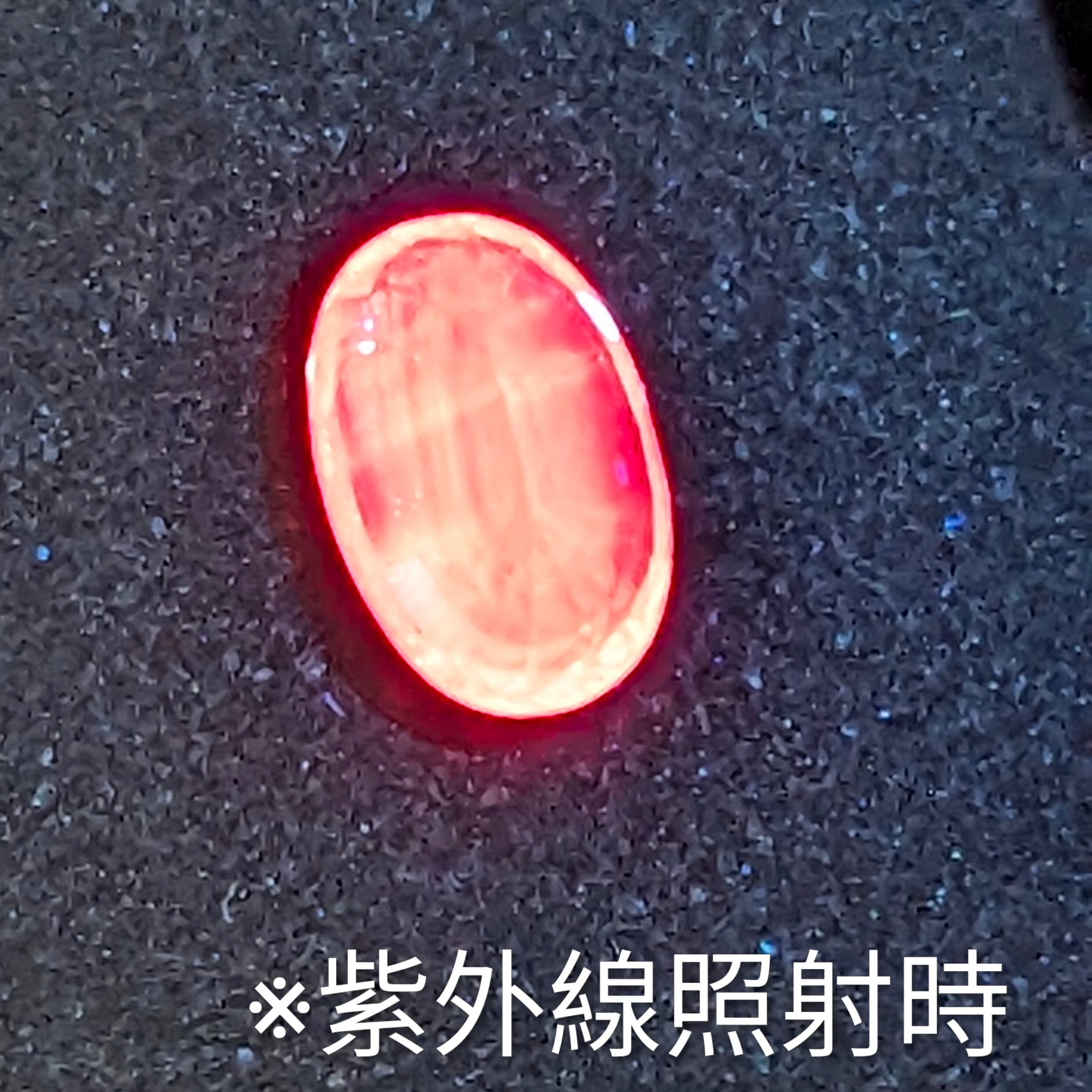 ピンク色の宝石はいろいろな宝石種で存在しますが、その中でもサファイアにおけるピンクの高貴な輝きは群を抜いて品を感じる気高さです。今回ご紹介の1ピースも、輝き、透明度はもとより、わずかに青みを帯びているような艶やかなピンク色の輝きに心を奪われます。一見気高く、静かに香っているかのような美しさですが、一度紫外線に当たると、内に秘めていた情熱が爆発するかのように、鮮烈な赤色の蛍光を発します。