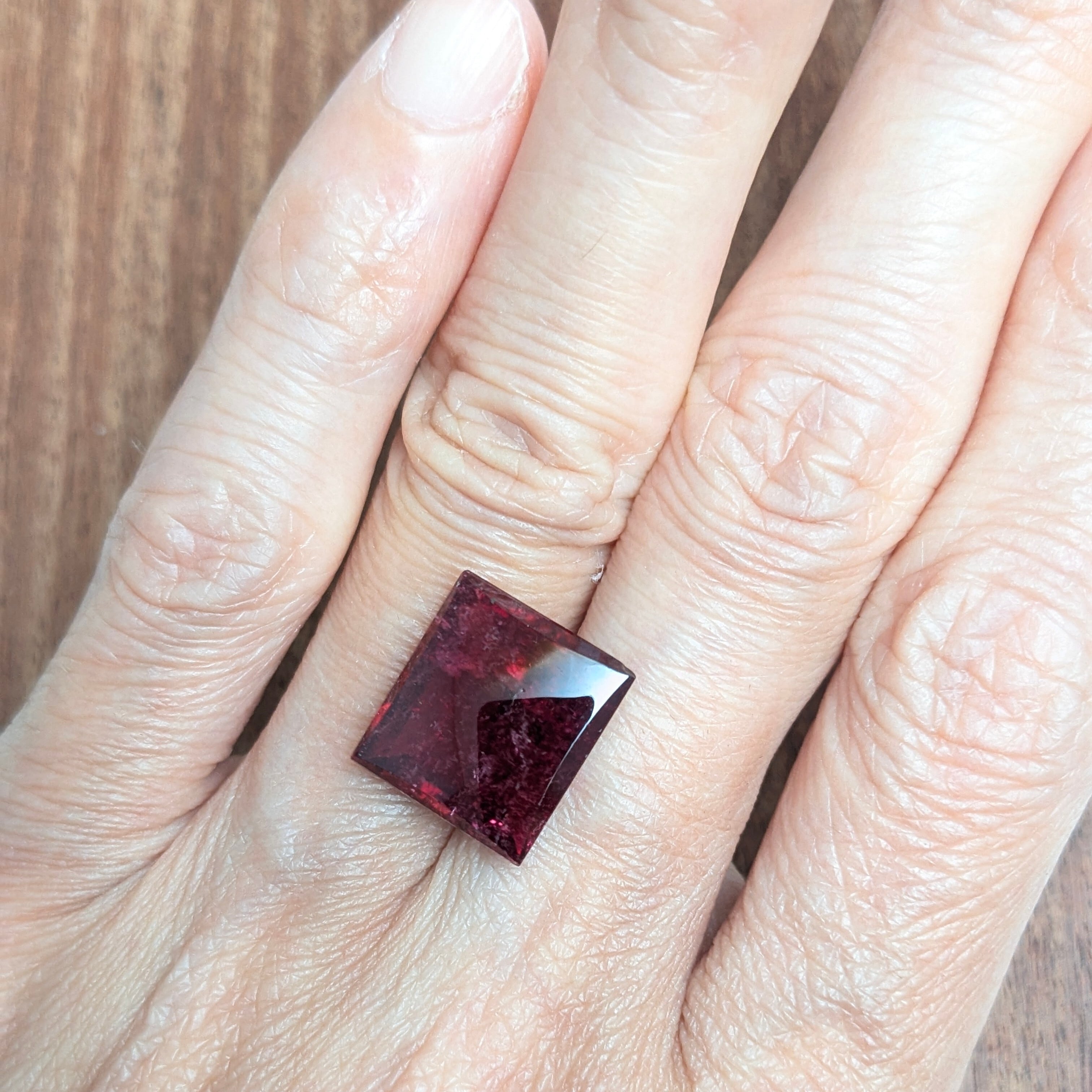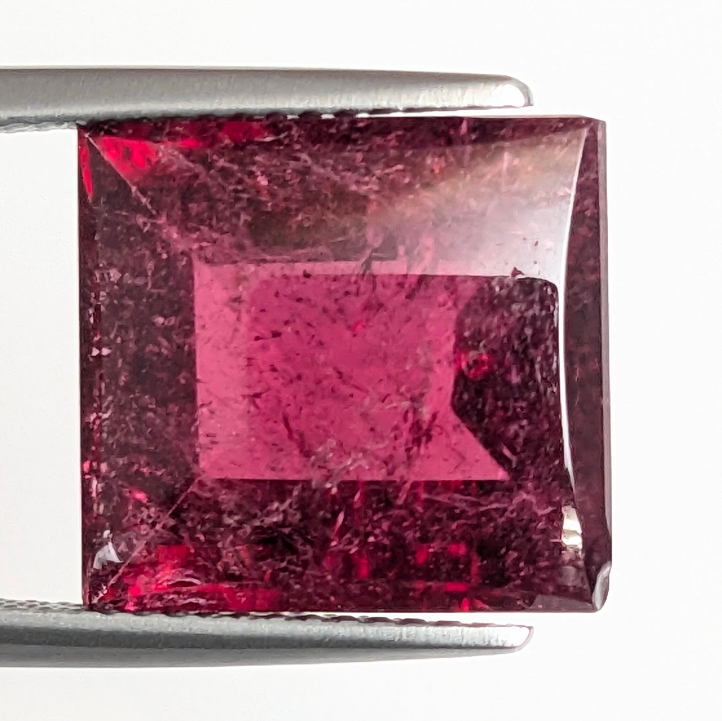 かなり大粒のレッド・トルマリン「ルベライト」が、8.95ctで登場です。トルマリンに含まれるインクルージョンには、“糸くず状”である液体インクルージョンが含まれることがありますが、特性によってこれがキラキラと鏡のように煌めき、美しい色合いに豊かな表情を付け加えてくれています。その様子はまるで、夕焼けが消える瞬間、真っ赤に燃える太陽に一瞬で煌めく宇宙の星々のよう!個性的な1ピースです。