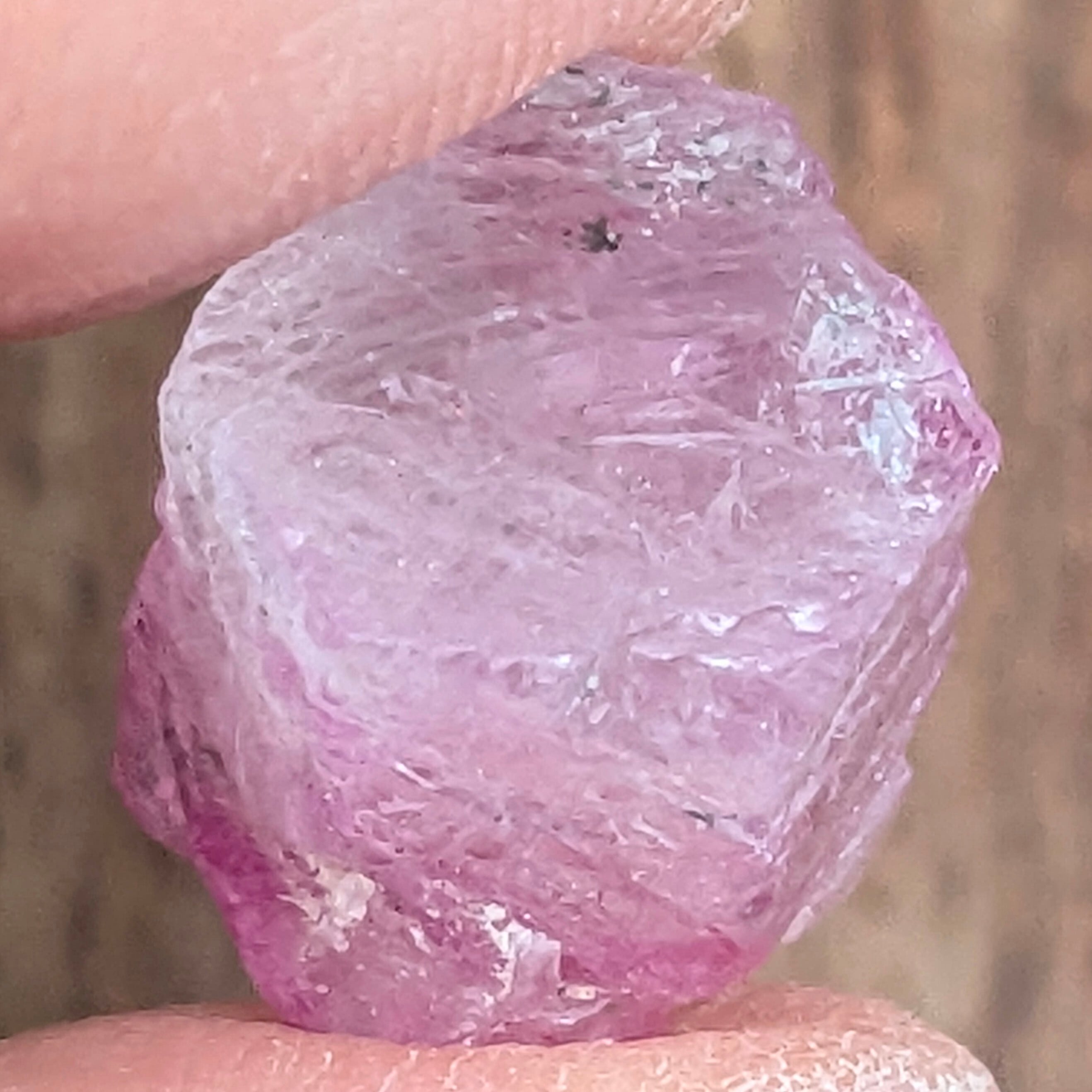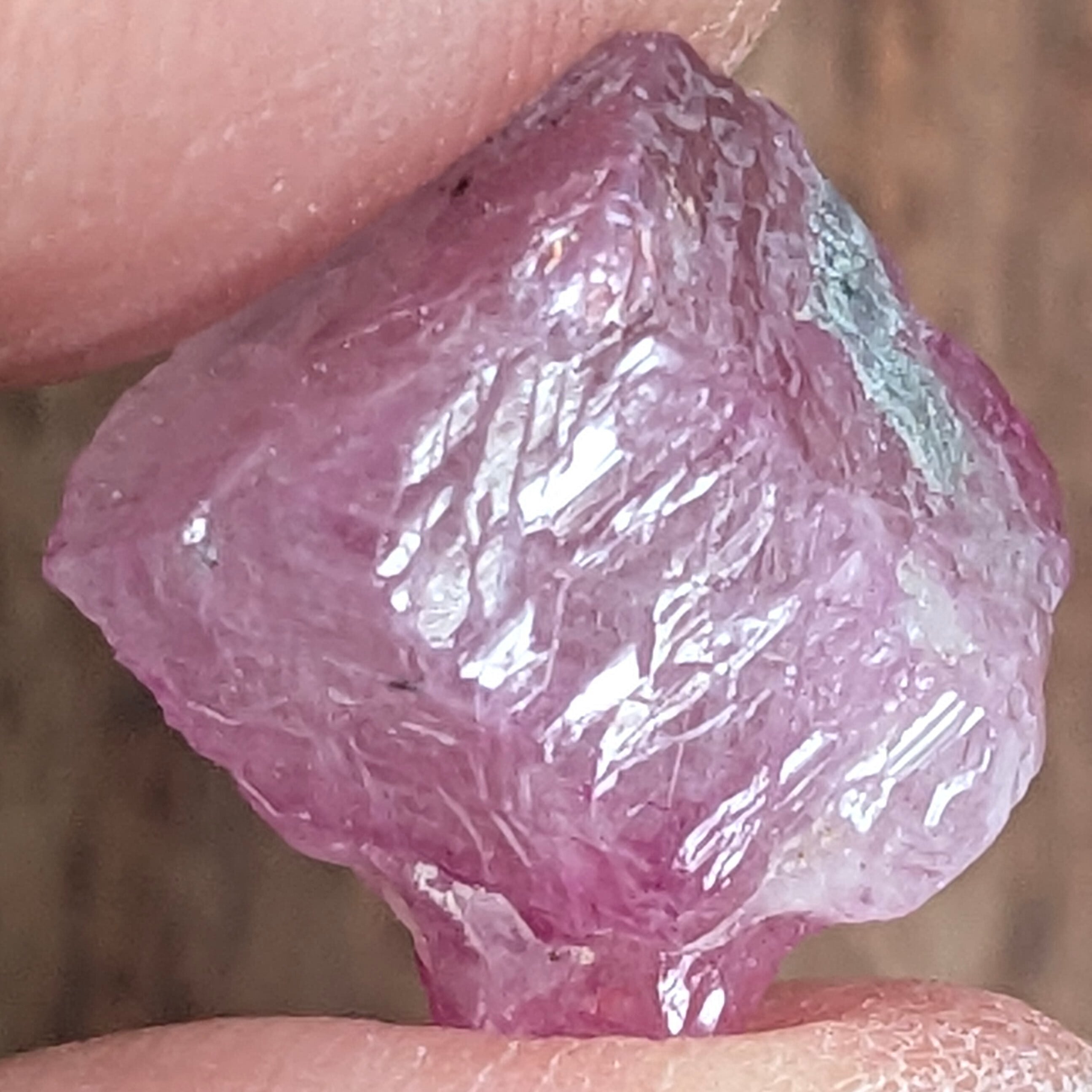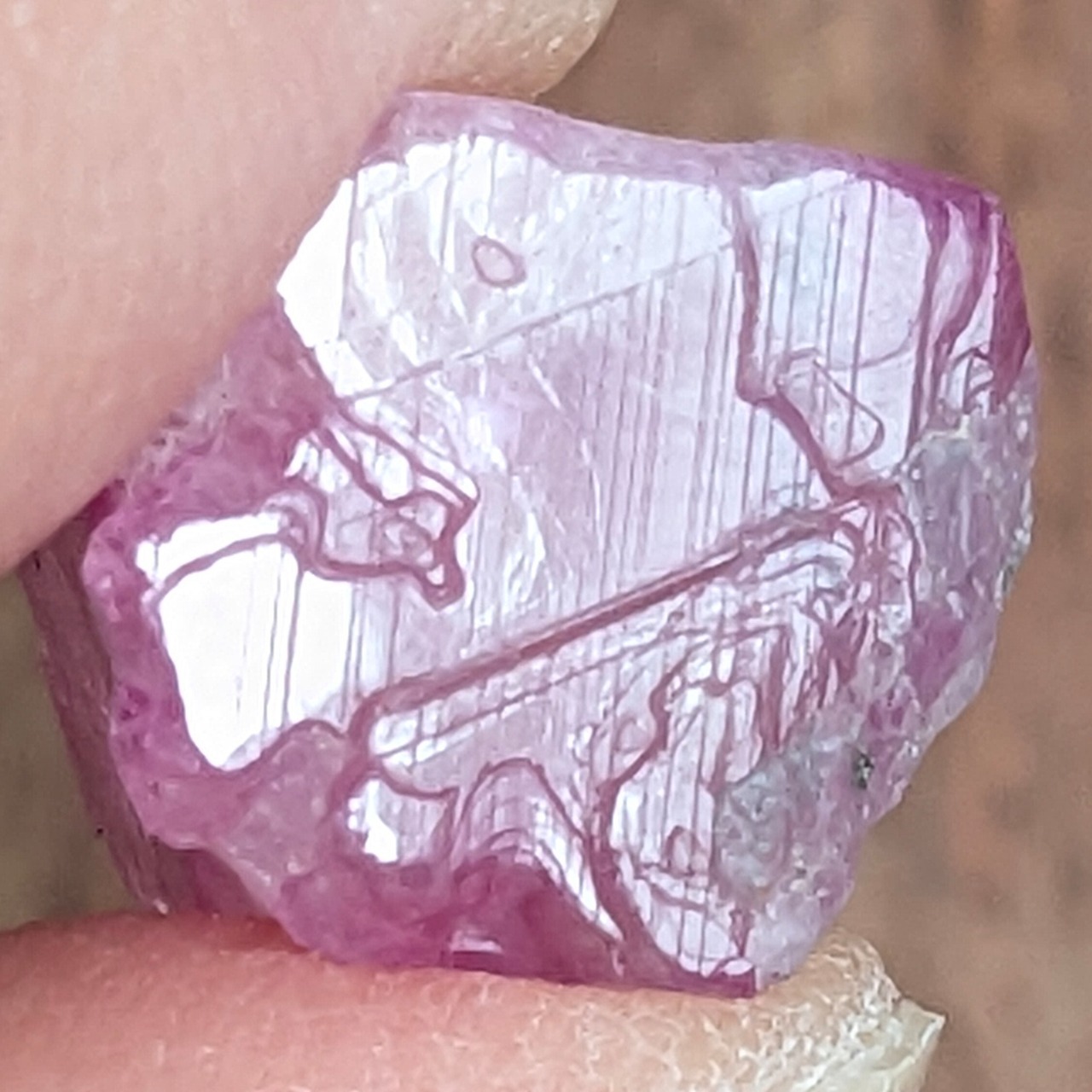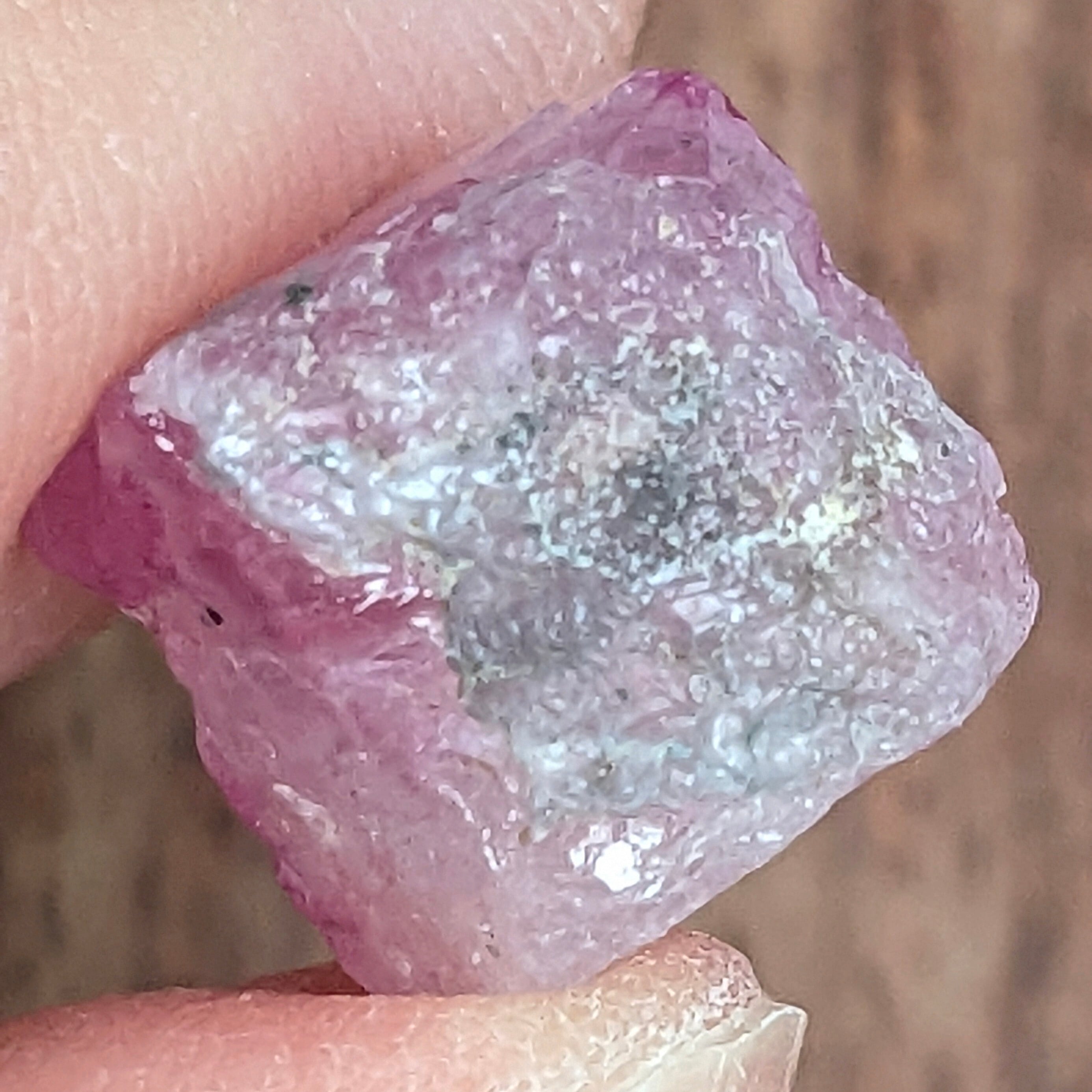 ルビー・・・と言いたいところですが、どちらかというと可愛らしいピンクサファイアの柱状結晶の原石です。イチゴのシロップをかけたかき氷のような、シャリシャリとした冷ややかさを感じる艶めきに目が奪われる1粒。サファイアの原石は“樽状”のことが多く、ルビーは“板状”のことが多いですが、今回ご紹介の原石は堂々とした“六角柱状”という点もレアです。色ムラも美しく、艶めきにも心躍る1粒をどうぞ・・・☆