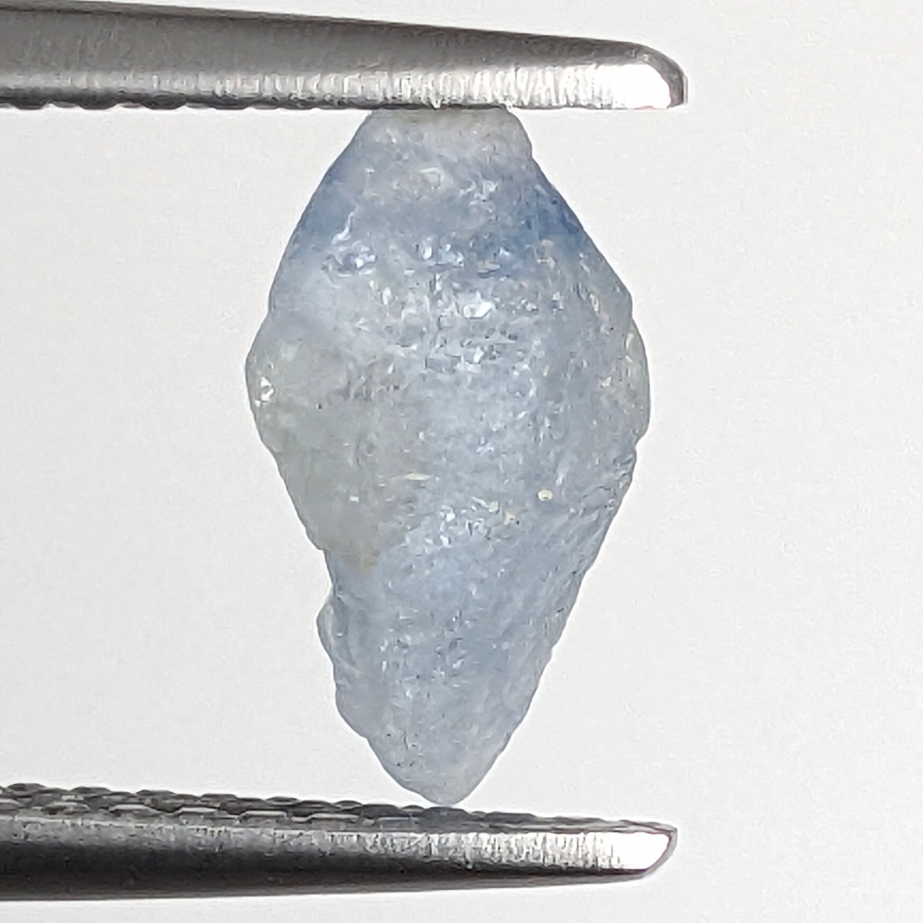 サンカラ・・・。神の宿る石とも思える、内側からボワッと光が灯っているかのように輝くサファイアの原石。まだカットされる前からすでにもう、“特別な石”であることが垣間見えるのが不思議です。ごく淡いブルーの色帯と、乳白色の半透明感のコントラストがなんとも美しい一粒。それぞれの鉱物が持つ“結晶形”という枠組みの中で、それでも成長過程における“個性”が色濃く見える部分が、原石の興味深い魅力の一つです。
