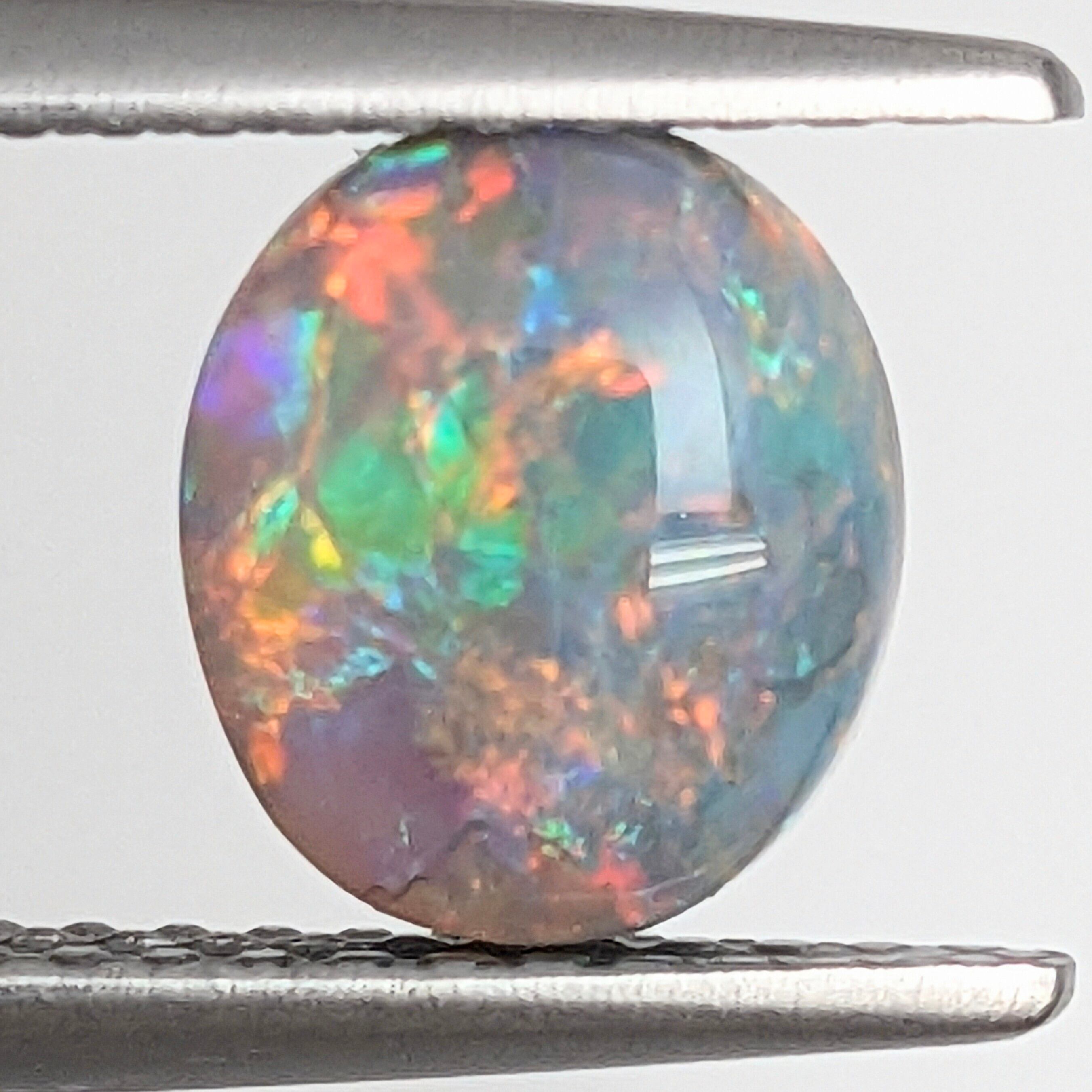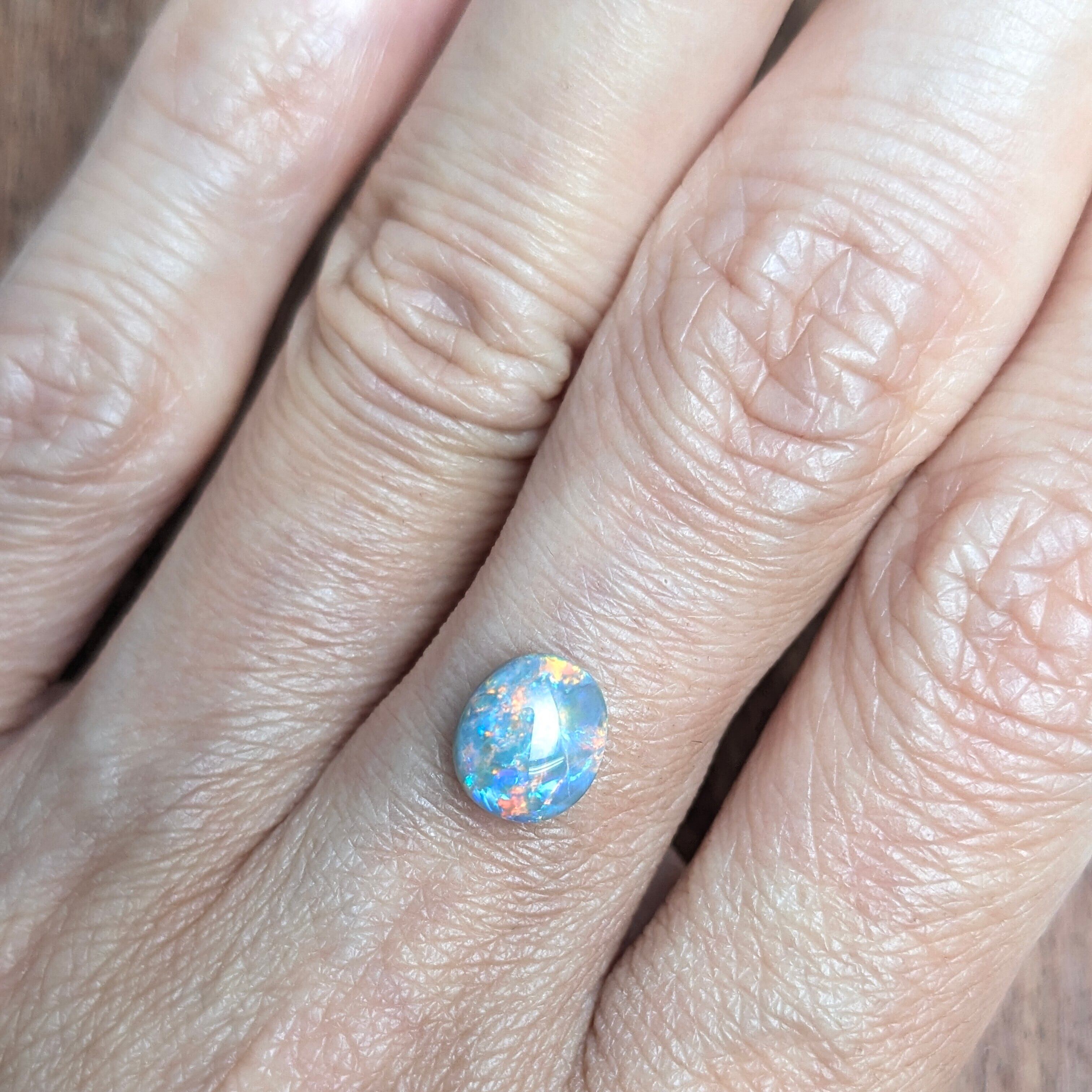 オパールは、“ケイ酸球”と言われるケイ素の球が規則的に重なった構造をしている宝石。この“球”が十分に大きく、大きさが揃っていると今回のような「赤・橙・黄・緑・青・藍・紫」の7色がバランス良く現れます。グレーの地に、思い思いに浮かぶ虹色の光たち・・・。程よく透明感も感じられ、とても美しい1ピースです。脈動する大地をそのまま結晶にしたような躍動的な美しさ。”チリチリ・・・。チリチリ・・・。”と、マグマの猛りが微かに感じられそうな、臨場感のある輝きです。
