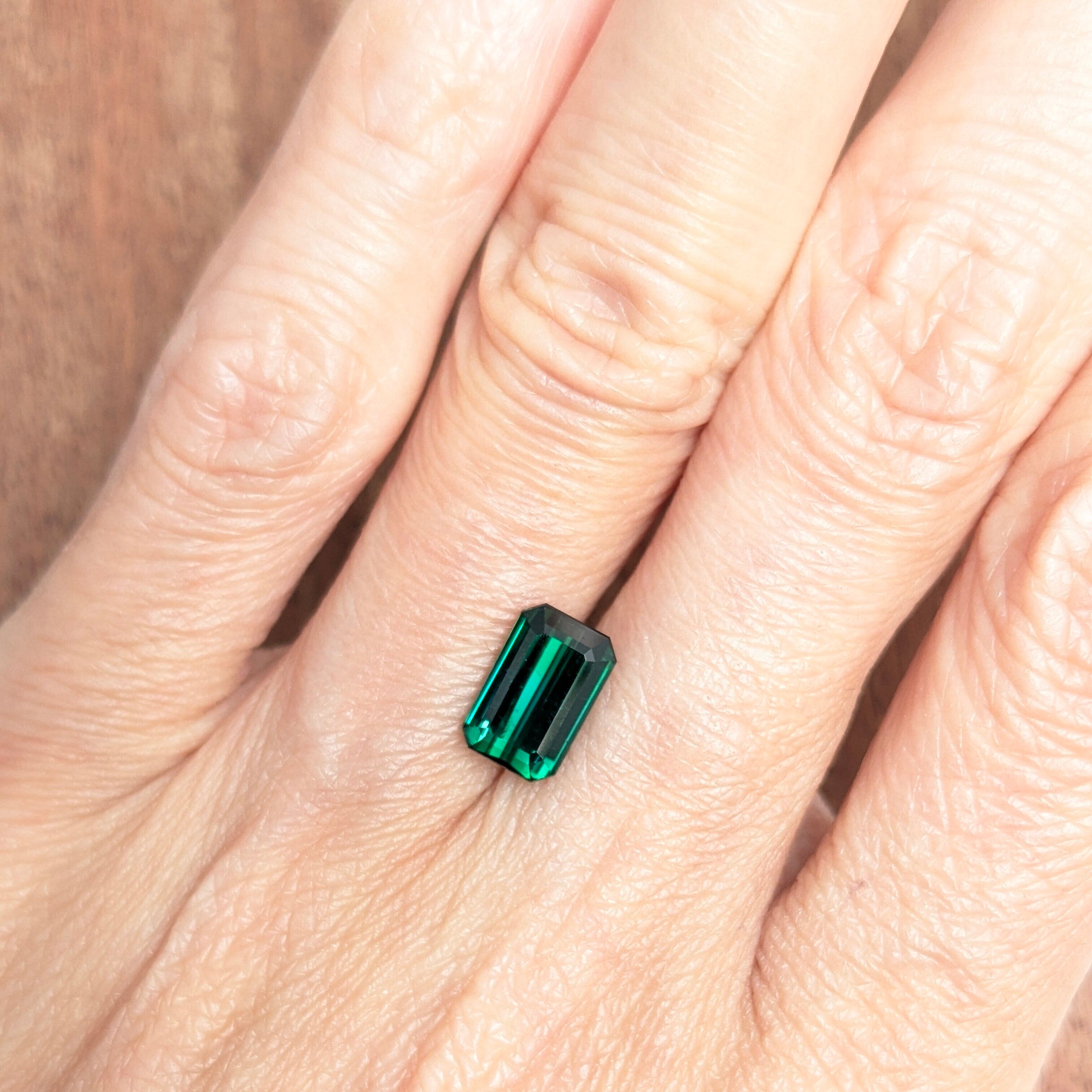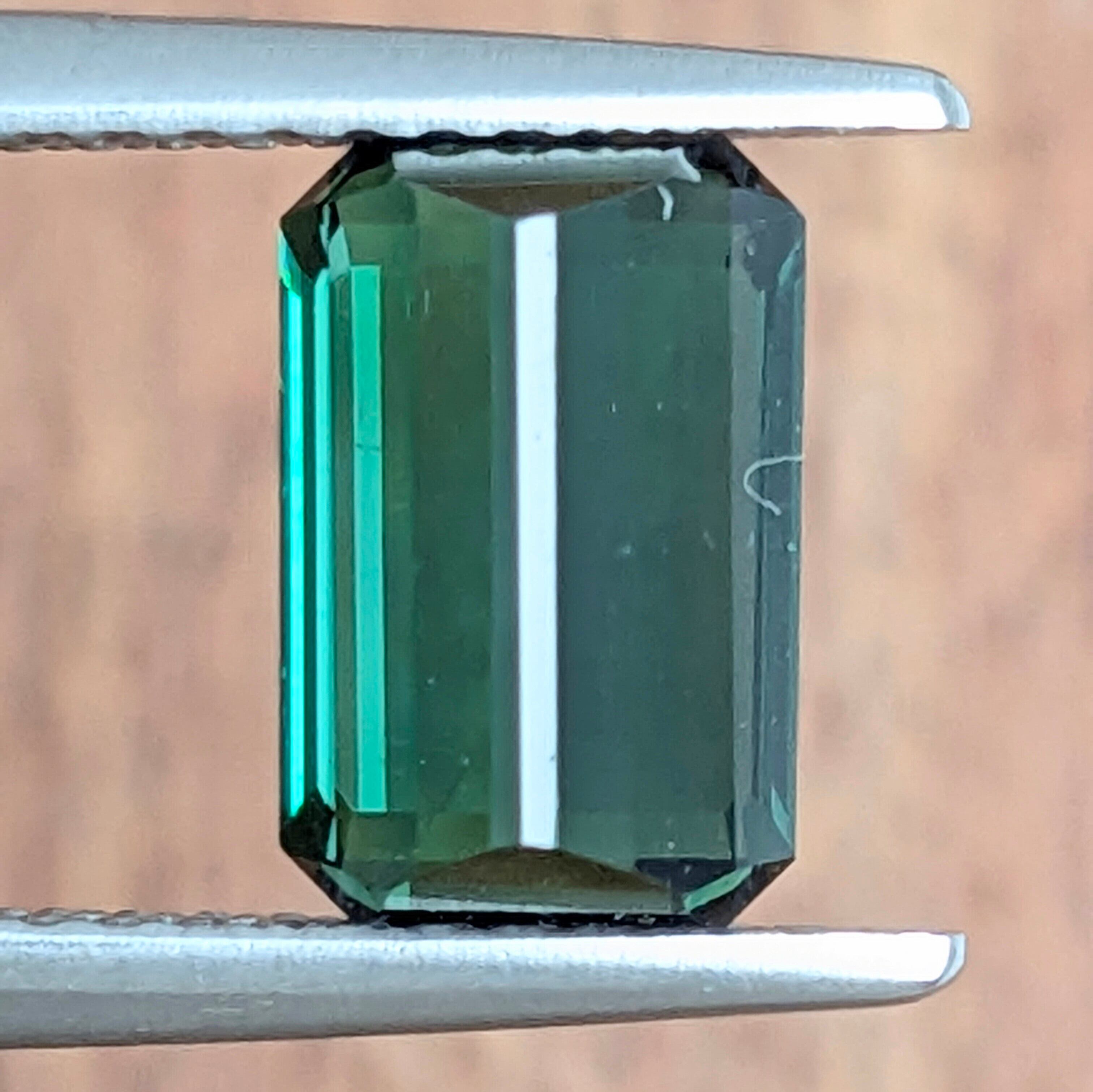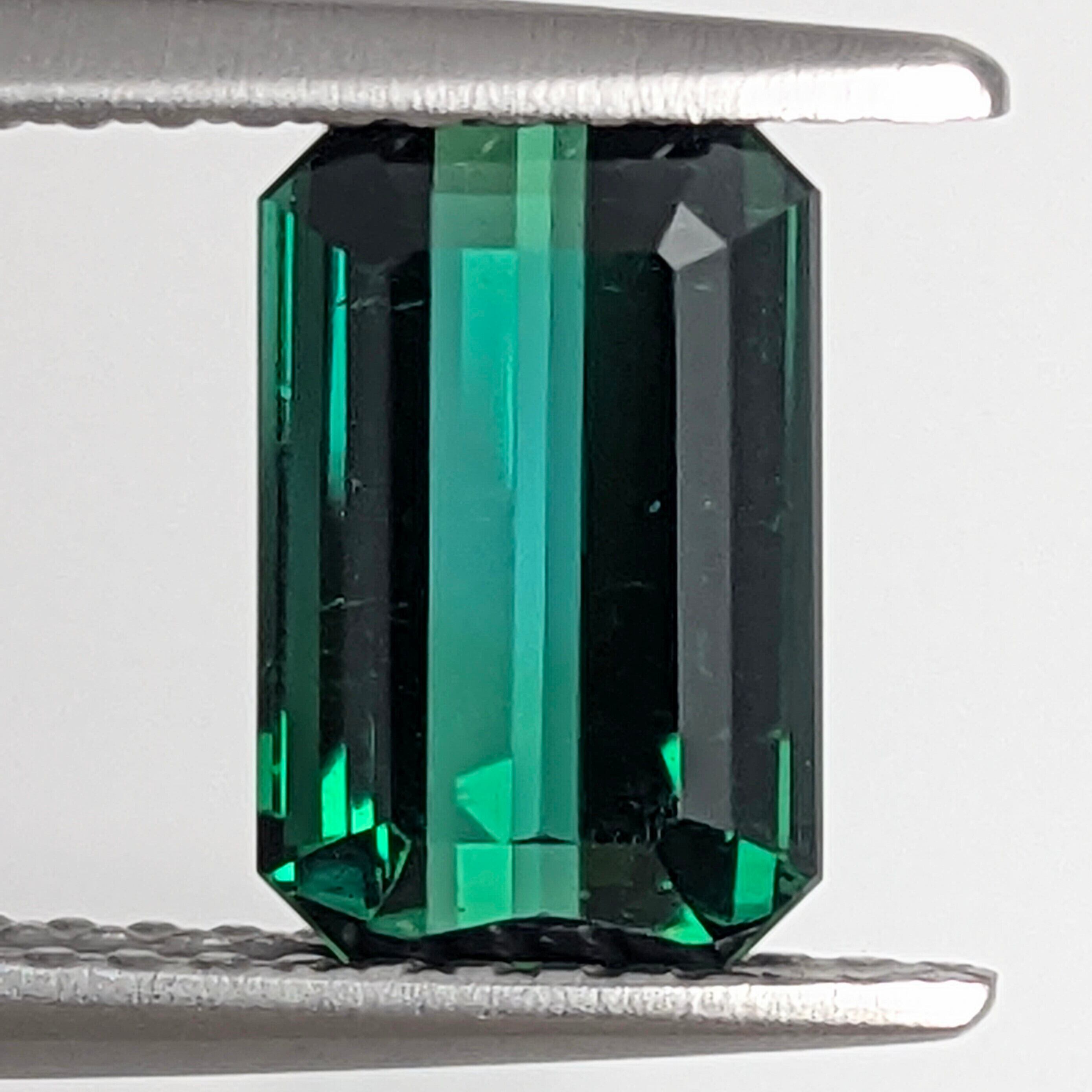 ご覧ください・・・!この見事な“ボトルグリーン”のトルマリン。別名、「ベルデライト」の名を持つ美しいグリーンのトルマリンです。トルマリンは比較的インクルージョンが少なく大きな結晶も見つかりやすい宝石ですが、ここまで鮮やかでクリアなグリーンは稀有だと言っていいと思います。トルマリンは“二色性”という性質が強く、特にこのグリーン系の石はある一定の方向から見ると“黒く”光を通していないように見えます。肉眼でも宝石種を特定できてしまう、とても面白い宝石です。