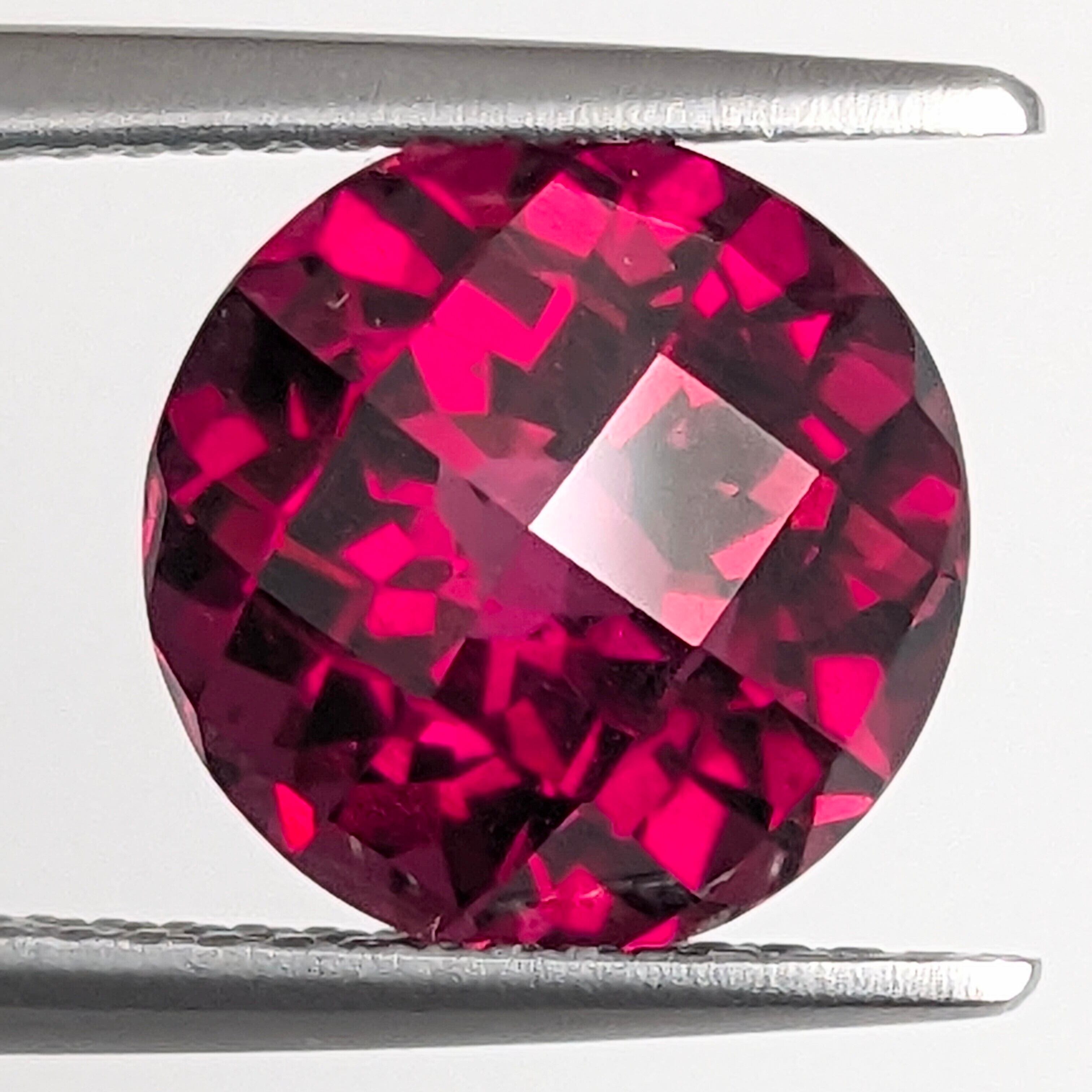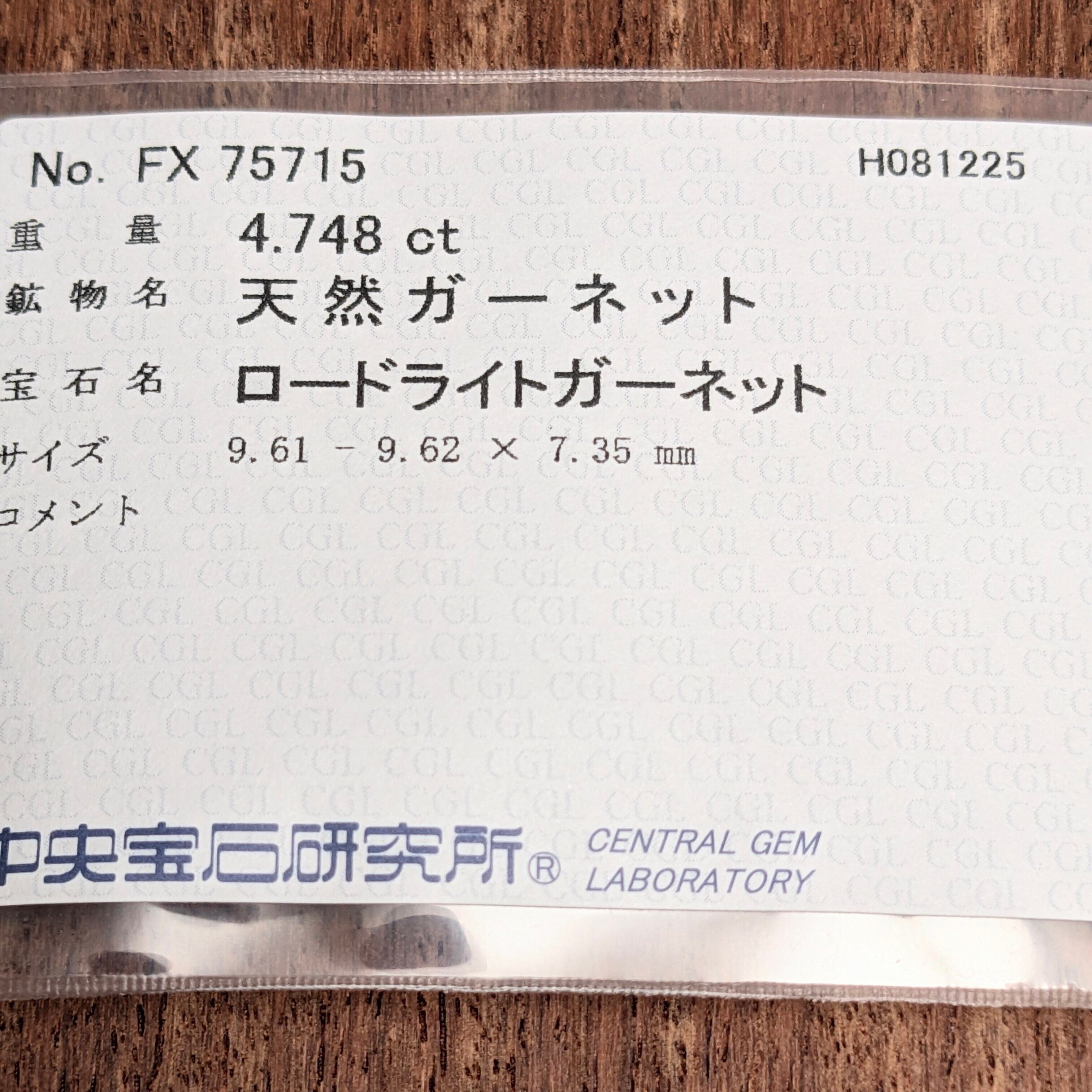艶(あで)やかな“チェスカット”が施された、濃厚な色合いのロードライト・ガーネット。絶妙なトーンのワイン色と、折り重なるように煌めく濃淡の輝きに目が奪われます。その光の奥底をそっと、10倍のルーペでのぞき込んでみると、そこに広がるのは地中から宝石に抱かれて永遠に漂う煌めくシルク・インクルージョンの虹色の輝きが・・・!ロードライトに期待されるワインレッド、ガーネットに特徴的なシルク・インクルージョン、特徴を捉えたこれ以上ない美しい1ピースです。