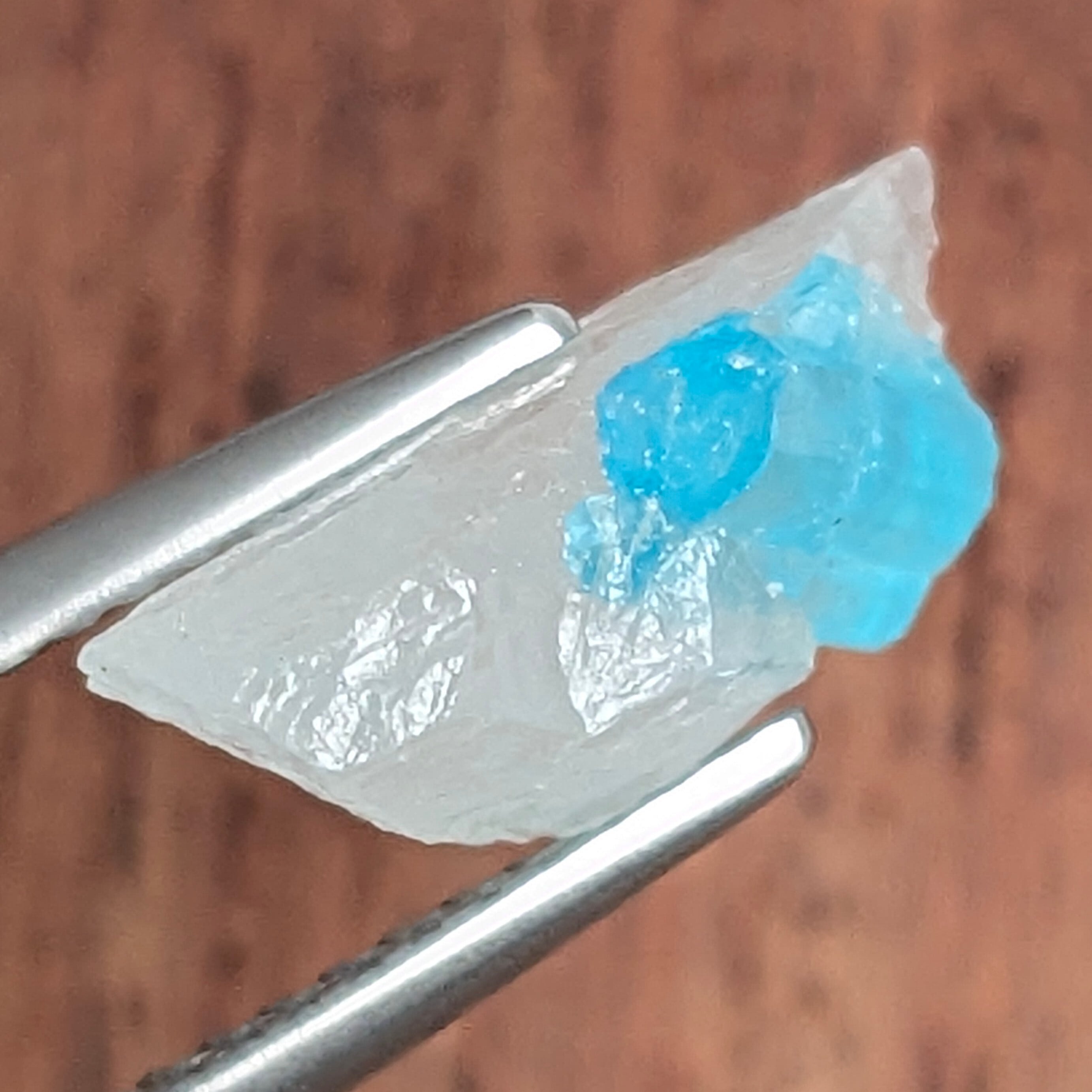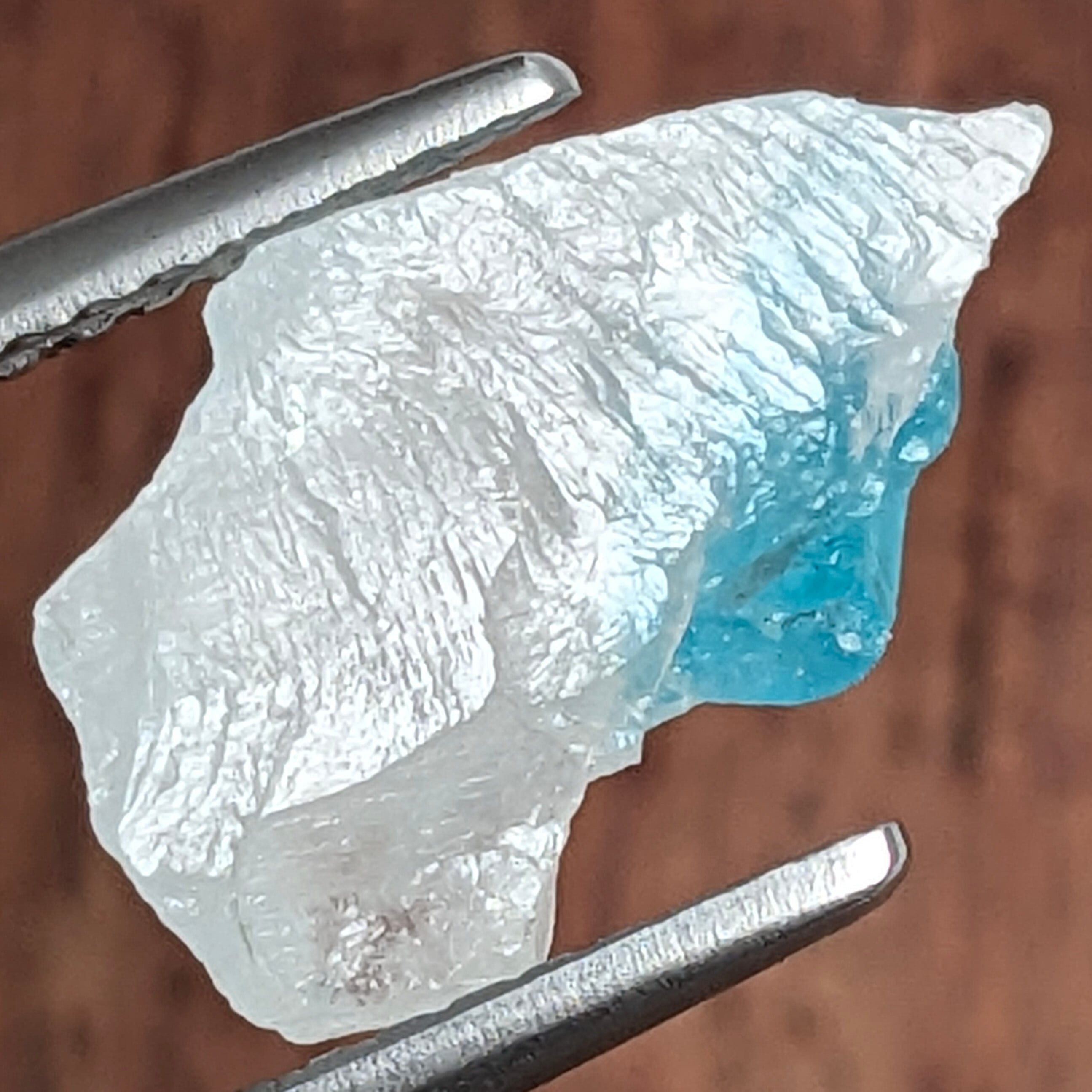 ブルーハワイのシロップをかけたかき氷のような、涼やかで美味しそうな原石。パライバトルマリンの美しいネオンブルーはもちろんですが、母岩部分の石英の透明感と艶めきにも心を奪われます。カットされて輝きを得た宝石ももちろん美しいですが、原石のままでもその晶癖も含めて楽しめるのが宝石の良いところです。どのような環境で、どのような時間をかけてこの姿に生まれ出たのか・・・想像力を働かせたくなります。