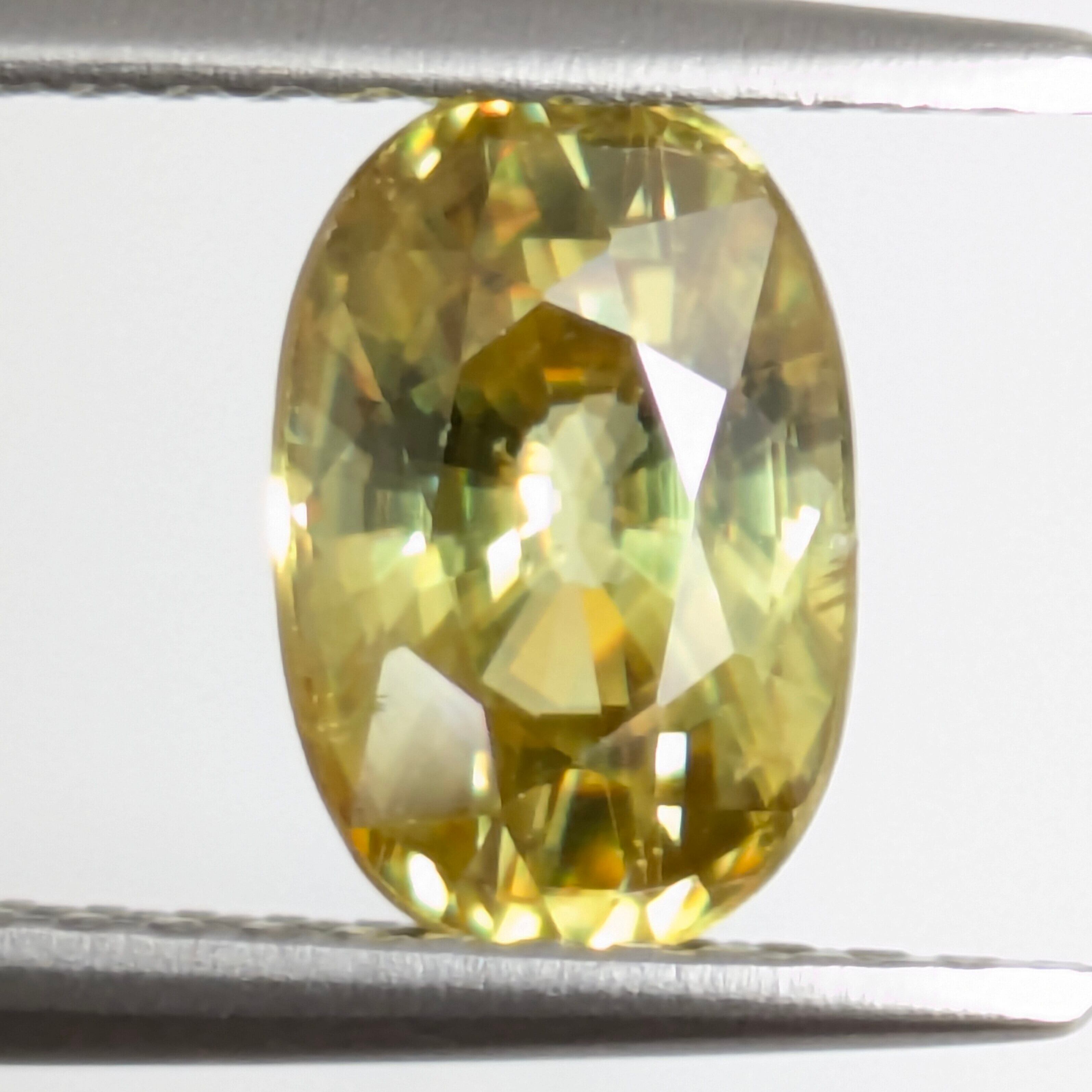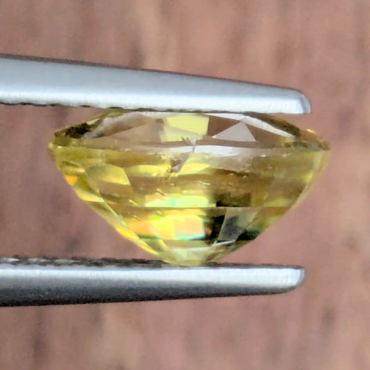 万華鏡のように虹色が煌めくスフェーン。本来の鉱物名は「チタナイト」と言い、その名前の語源は構成成分である「Ti(チタン)」から来ています。他の宝石たちの色因にも言えることですが、透明で光り輝く宝石にもたらすその色が、単体だと金属質の無機質な金属元素であるという点がなんとも不思議でなりません。一つの結晶を複数の元素で作り上げている・・・そんな輝きが、贅沢な美しさを作り上げているのです。