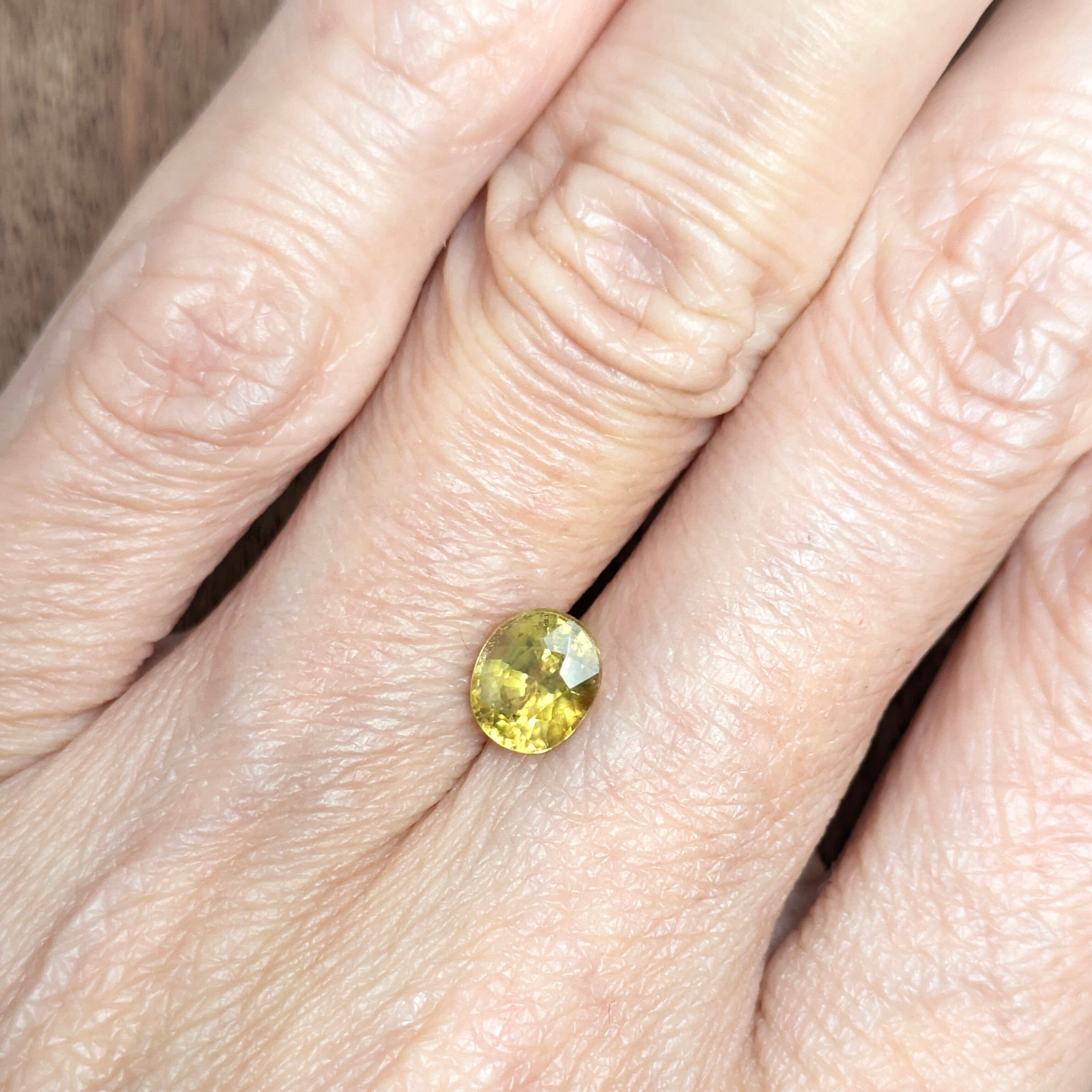 黄金色の稲穂の輝きを想起させる、眩しく芳醇な色合いのスフェーン。今回はイエロー系のルースをご紹介です。実りの秋、爽やかな秋風に揺られてたわわに実った一粒一粒の輝きが、石の内部の虹の七色で表現されているかのよう!日本に住んでいる私たちの食卓には、欠かせない生命の源が宝石で表現されているような、尊い美しさです。ああ、この輝きを見ているだけでお腹が鳴ってしまいそう・・・☆