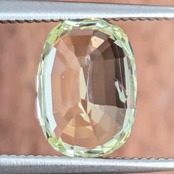 なかなか、この「クリソベリル」という本来の名前単体で出会うことが少ない宝石かもしれません。この宝石は、大人気の「キャッツアイ」や「アレキサンドライト」に代表される本来の宝石で、先に挙げた二つの光学的効果を持った宝石種はクリソベリルの“変種”です。黄みを帯びた淡いグリーンに、クリソベリル特有の強い輝きが加わったとても輝きの強い美しい1ピース。本来の輝きからお楽しみください。