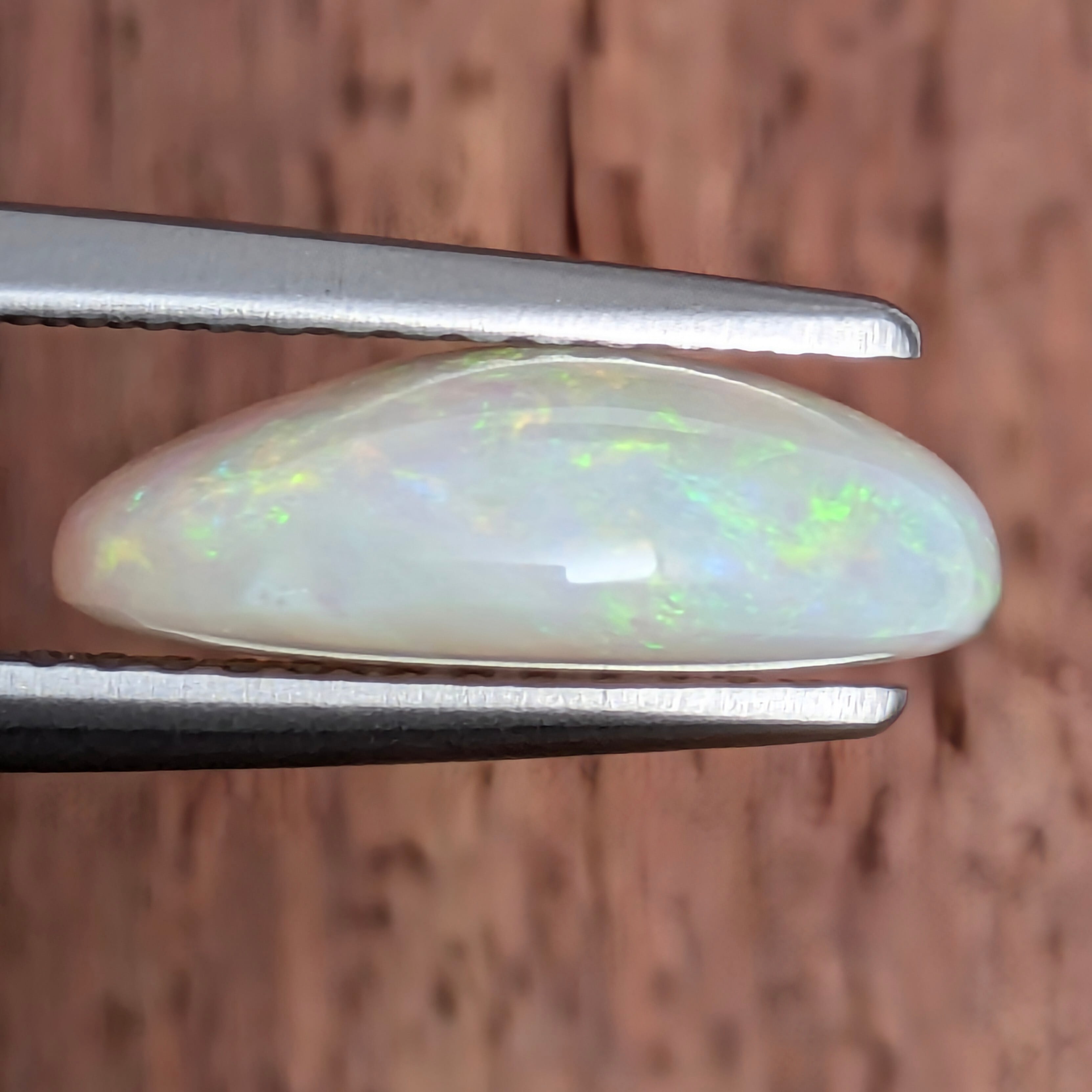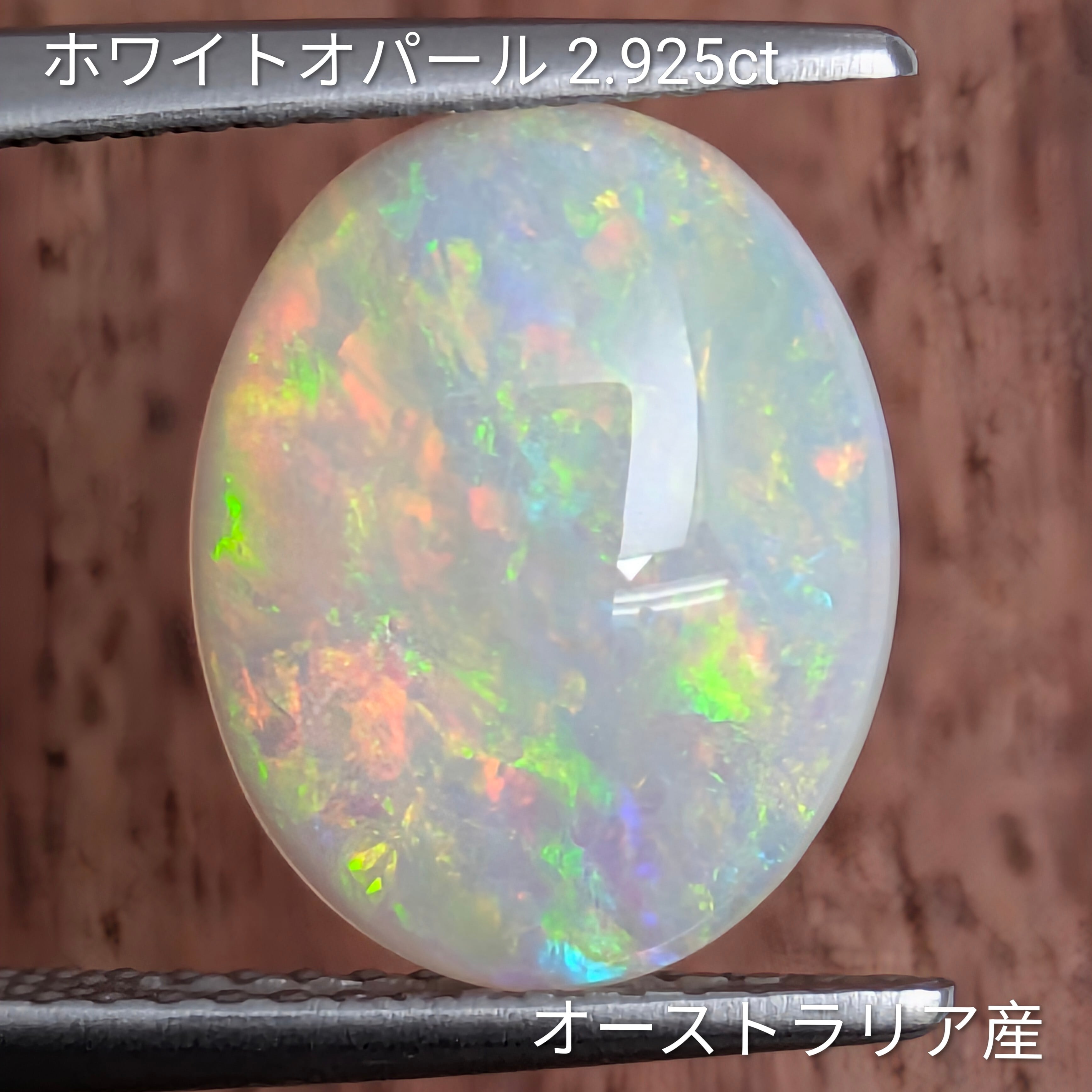 雲に反射する大きな虹のように、乳白色の母体にユラユラと煌めく七色。恐らく画像よりも、肉眼での方がもう少し賑やかに色が煌めいて見えると思います。2.925ctというまあまあな大きさで、優しく私たちの目に飛び込んでくる美しさ。動くたびに変化するその様々な色合いのうごめきは、まるで石の中で精霊たちが賑やかにパーティーをしている様子のよう。ほら、耳を澄ませて・・・彼女、彼らの笑い声が、聞こえてきませんか・・・?