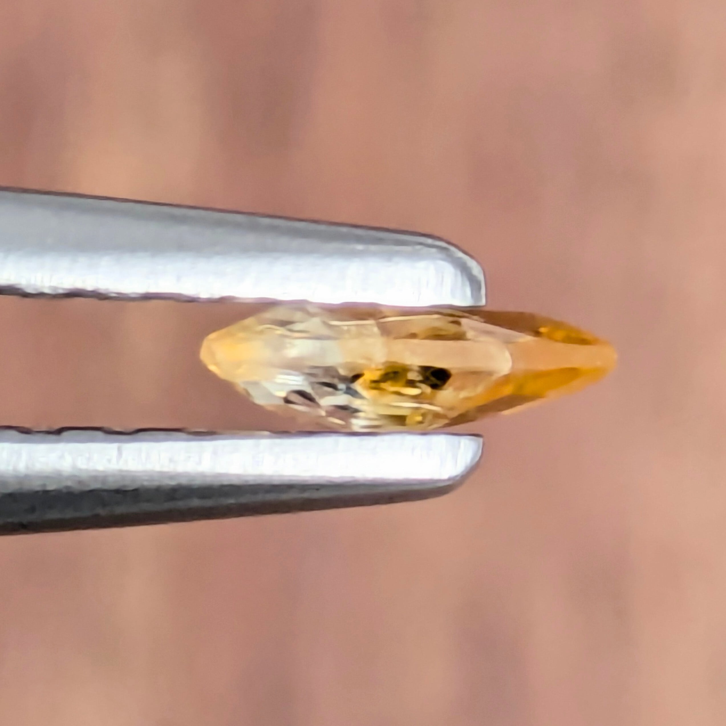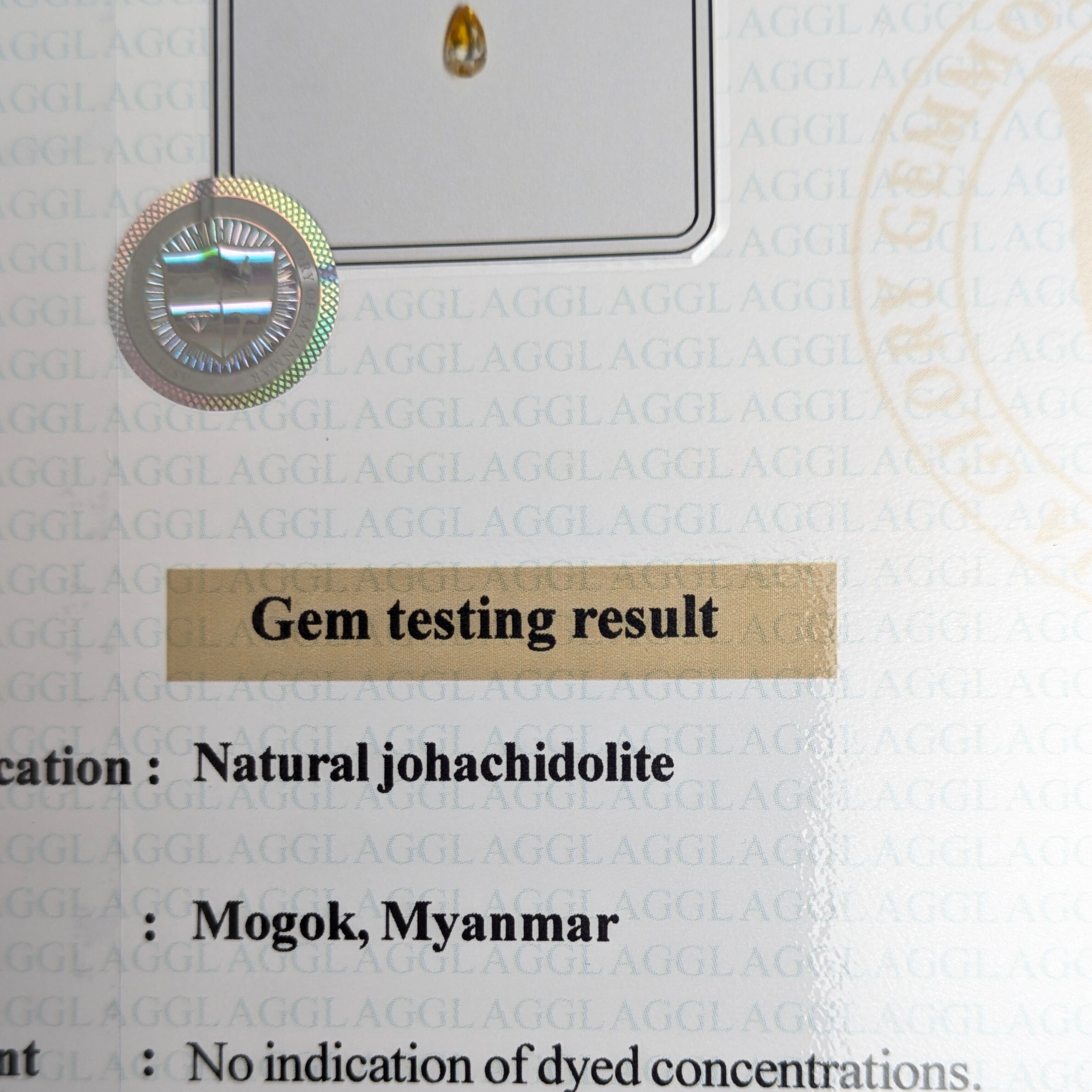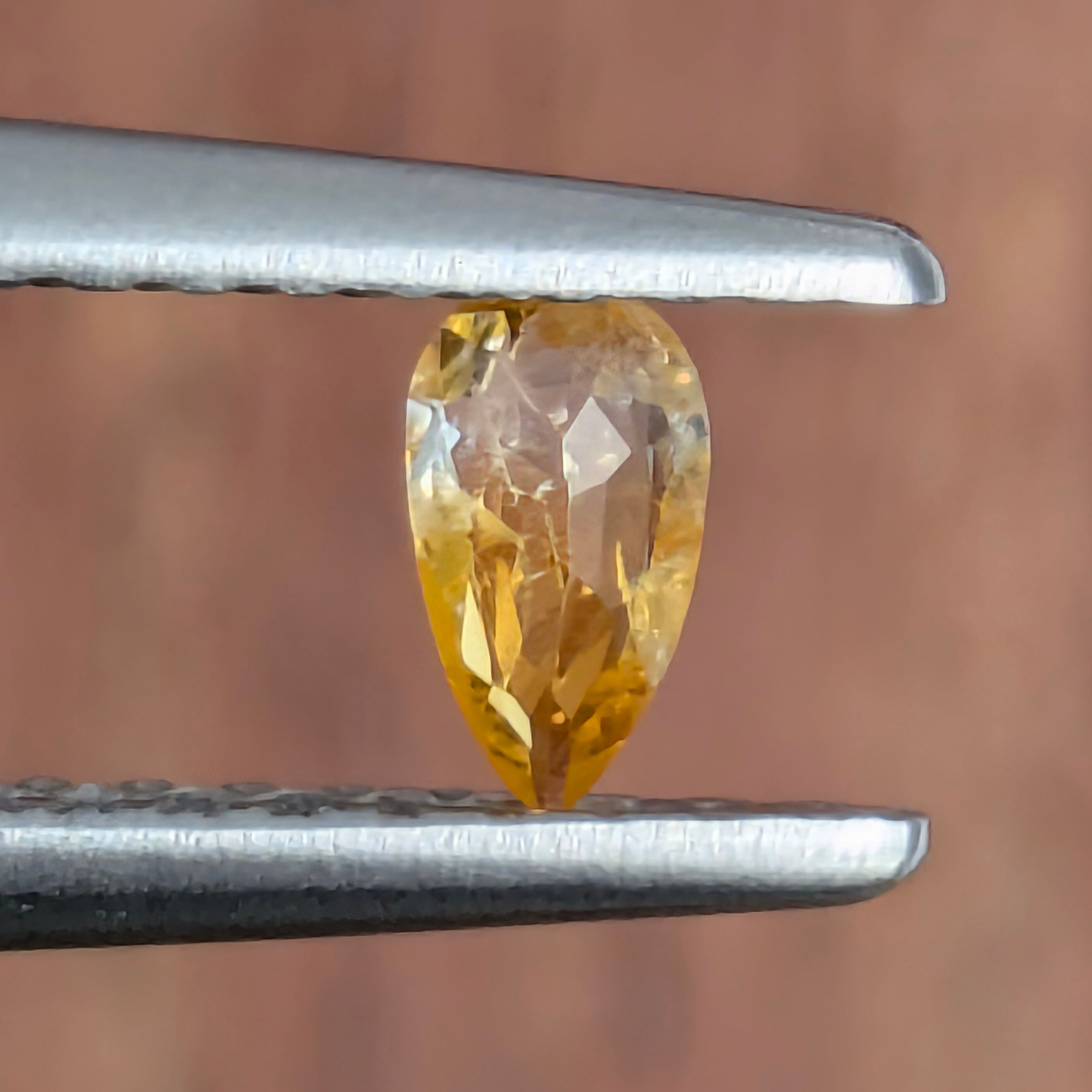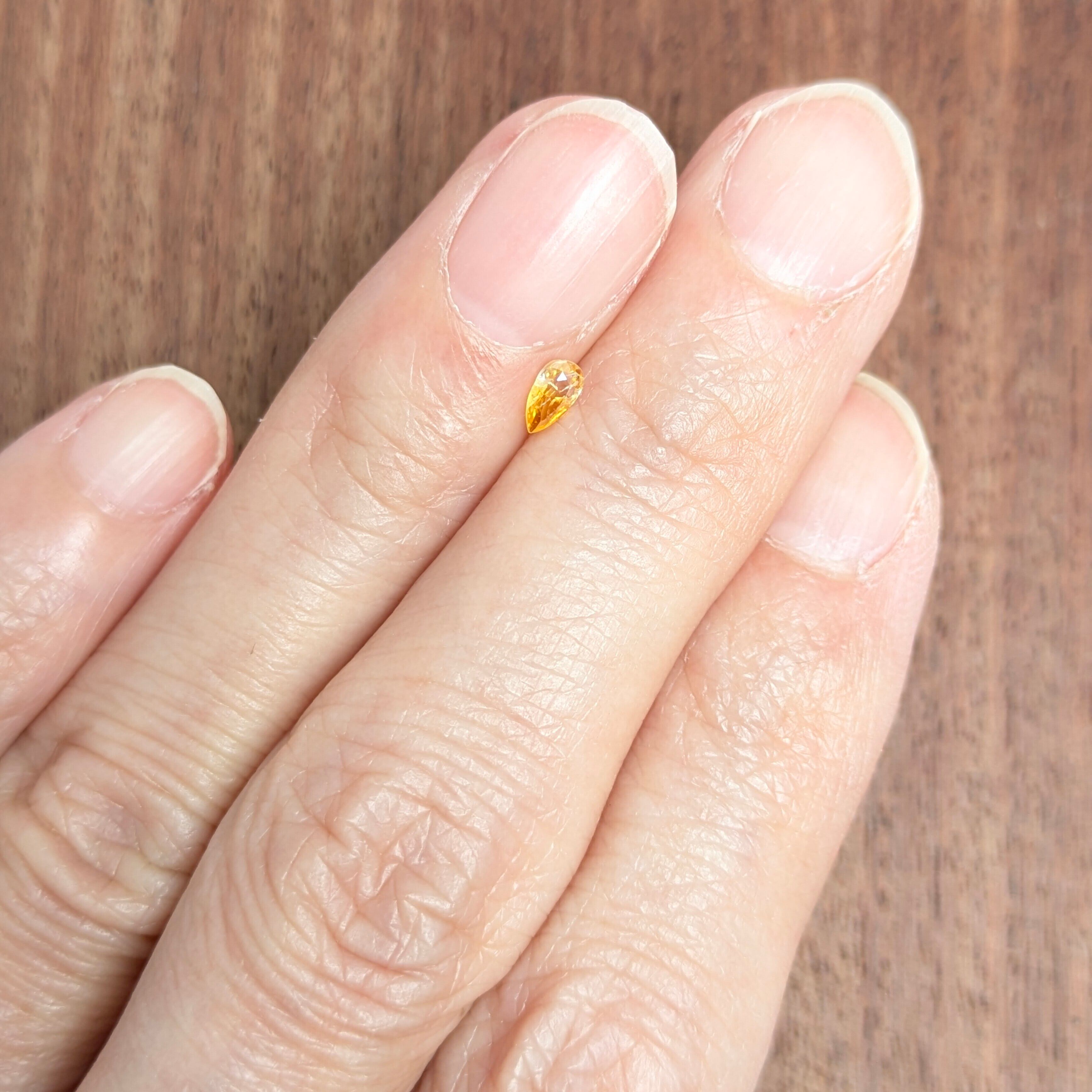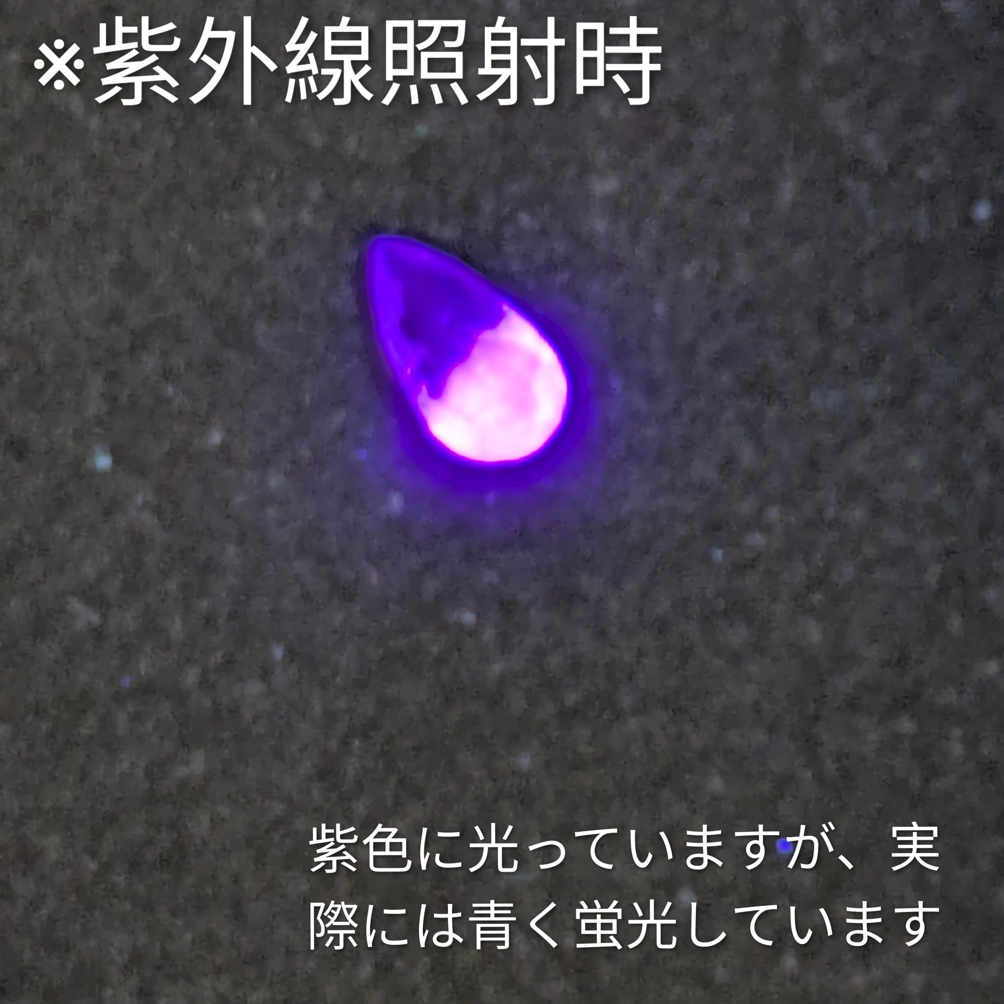なんとも長い名前で覚えにくい宝石「ジョーハチドーライト」。しかしその見た目は、一度目にしたら忘れられないキュートさです。オレンジ~イエロー~カラーレスの色相が宝石品質のものには多く、紫外線蛍光を持った個体もいます。今回ご紹介の1ピースは、バイカラーに分かれた色合い。蛍光性も、“カラーレスの部分に強い青色蛍光”が現れます。まだ謎が多い石ですが、これから人気が出ることは必至です☆