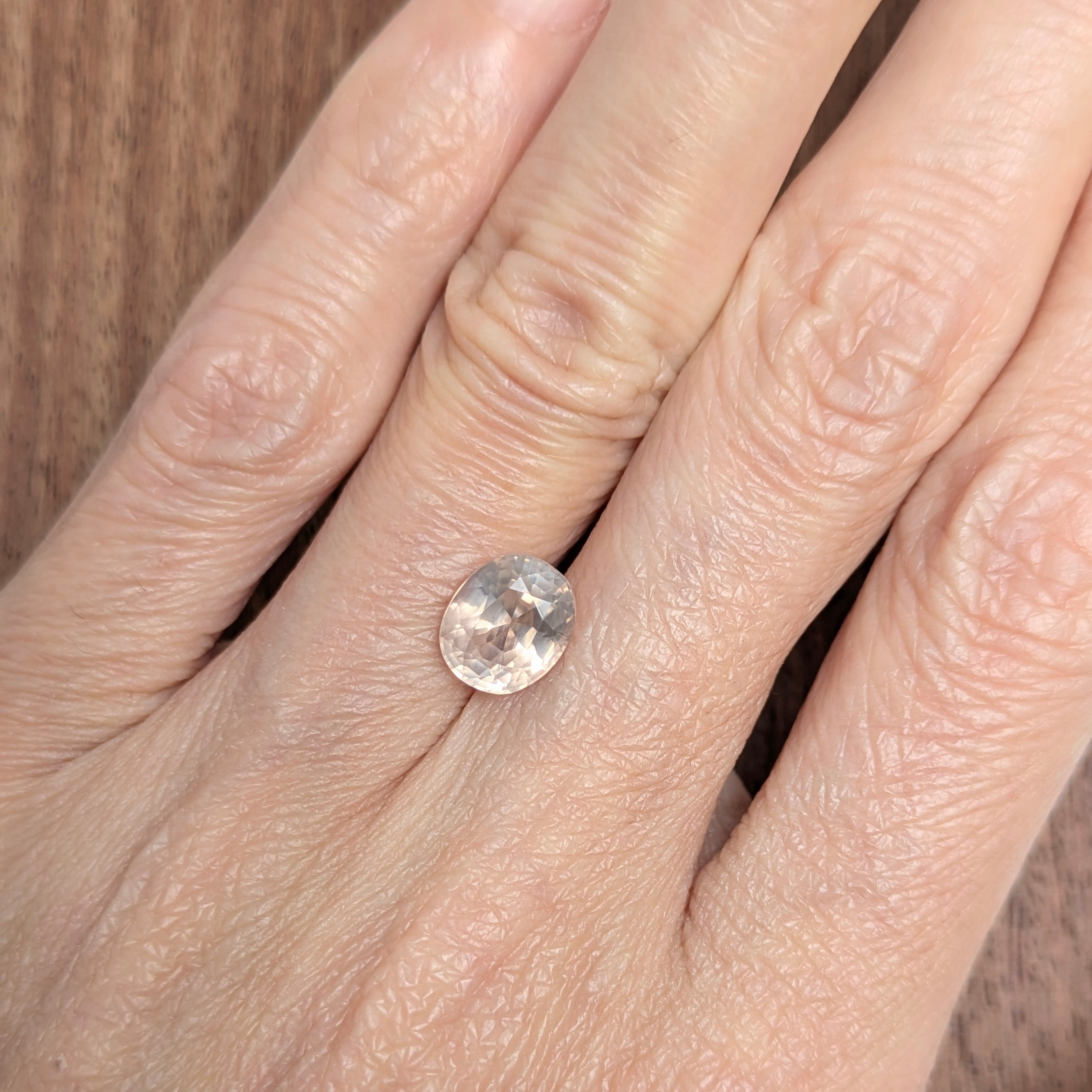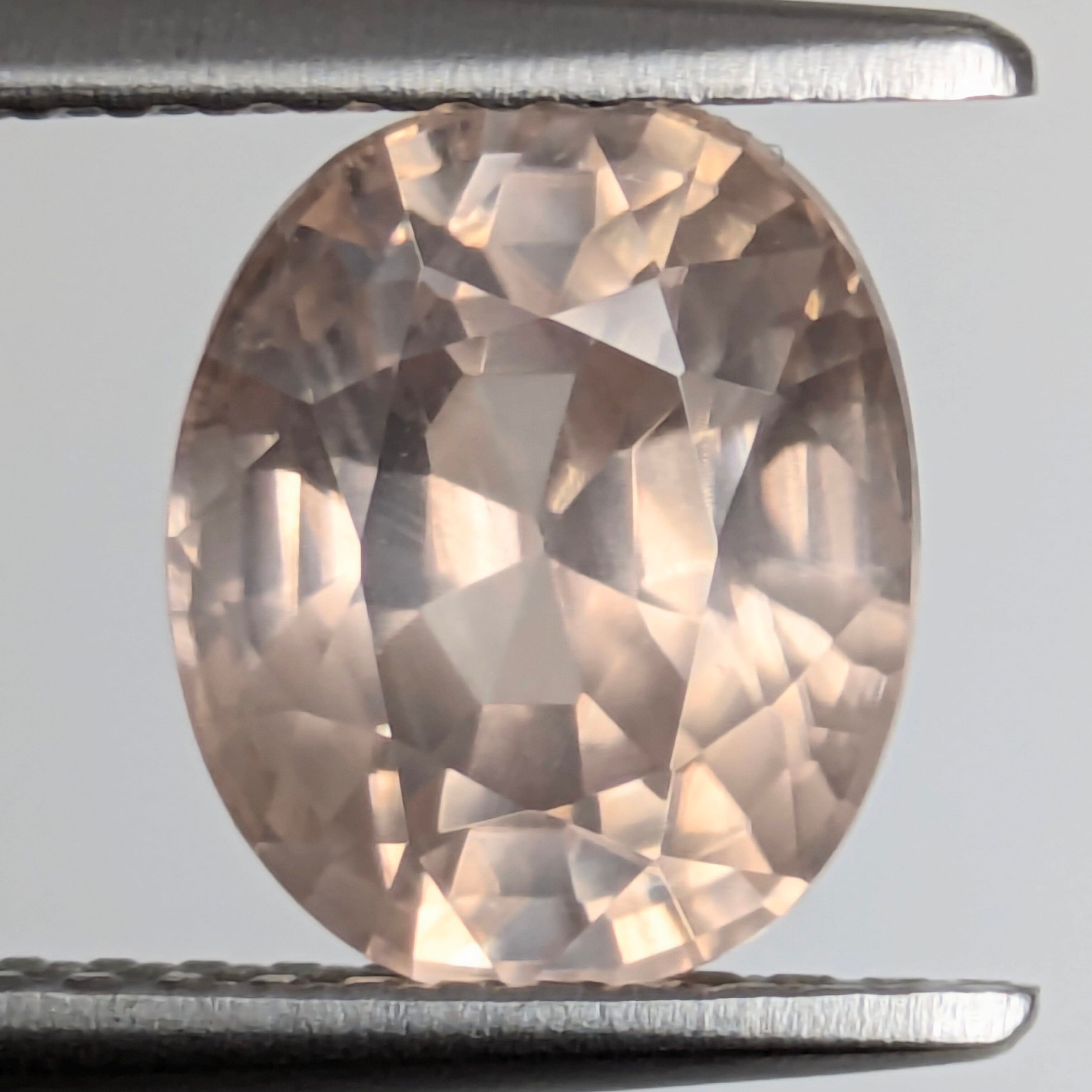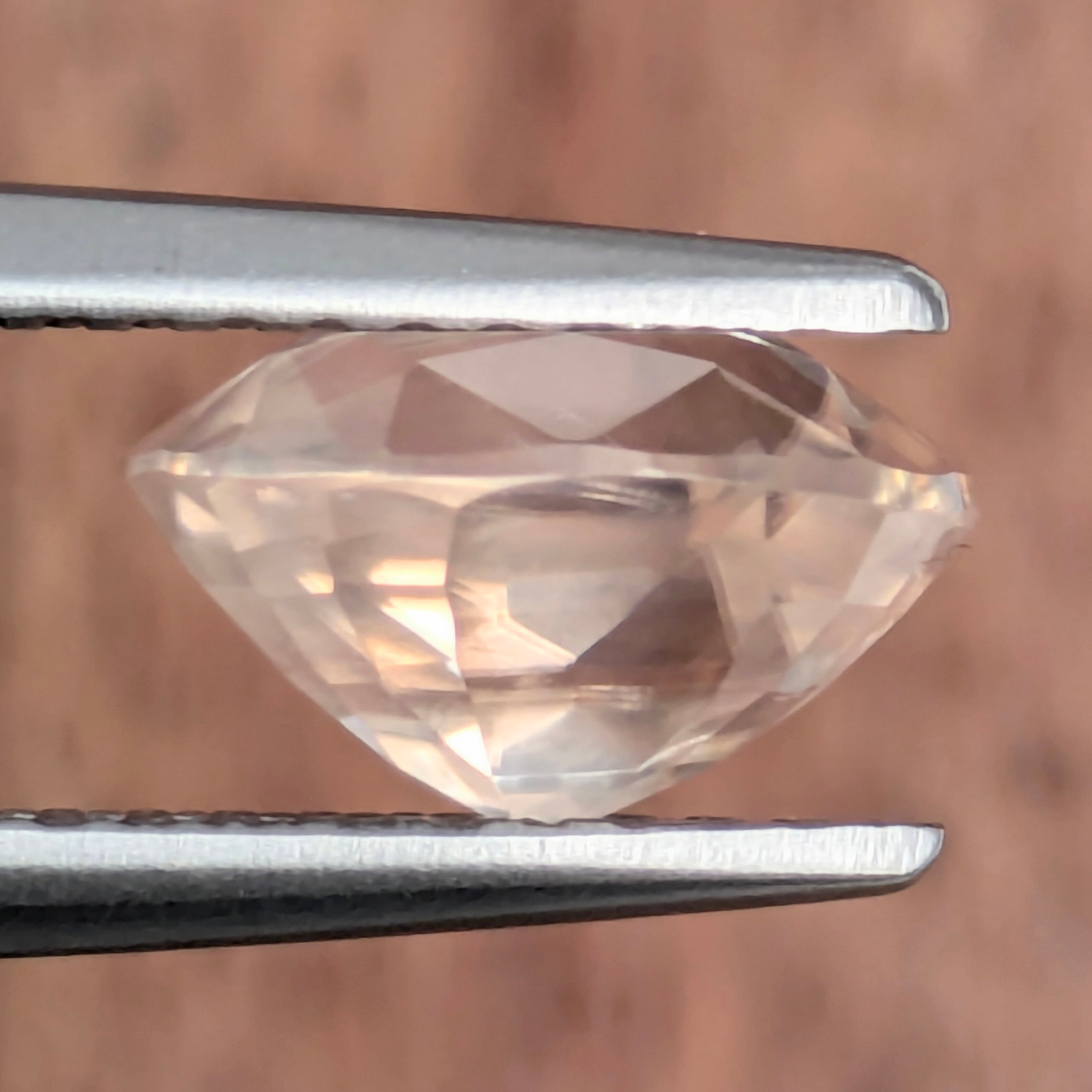 夢見るMistyな、ぼんやりとした輝きがとても美しいジルコン。全体的に霧がかかっているような、幻想的な見た目をした1ピースです。そこに「ライトピンキッシュブラウン」という柔らかな色合いが付加されることで、内側から発光しているような夢見心地の魅力を放っています。この石に、クリアさを求めてはいけません。夕焼けに煙る湖の霧のように、妖しく、ミステリアスな輝きに心をゆだねてください☆