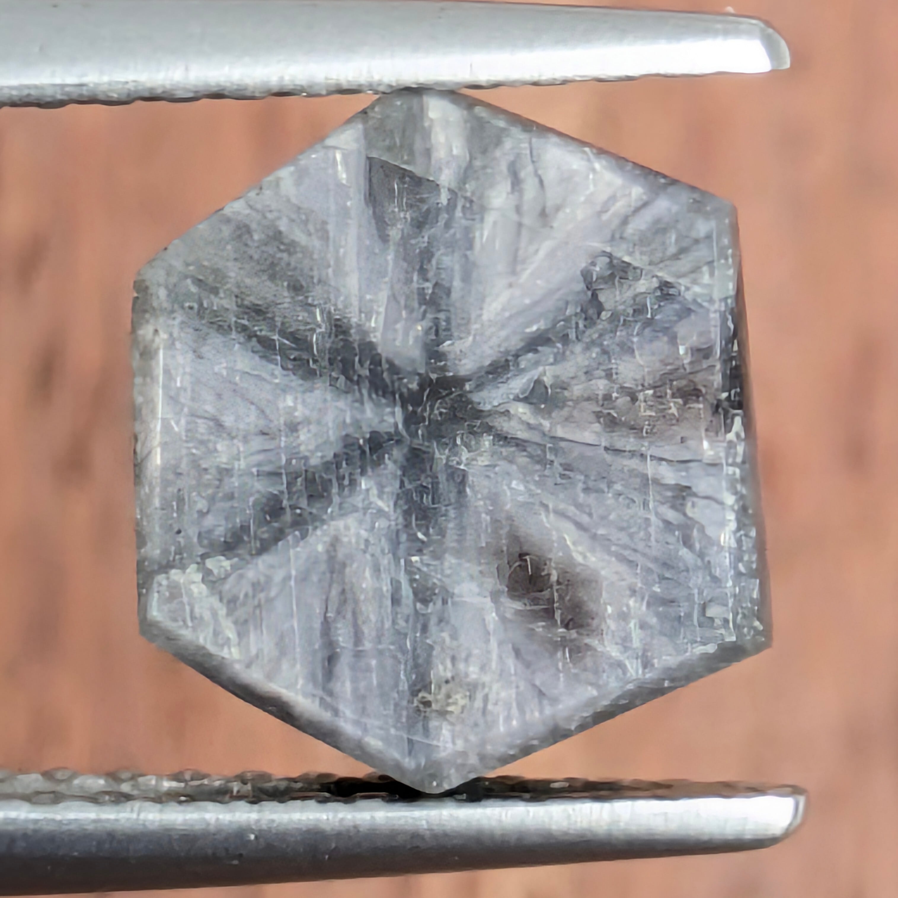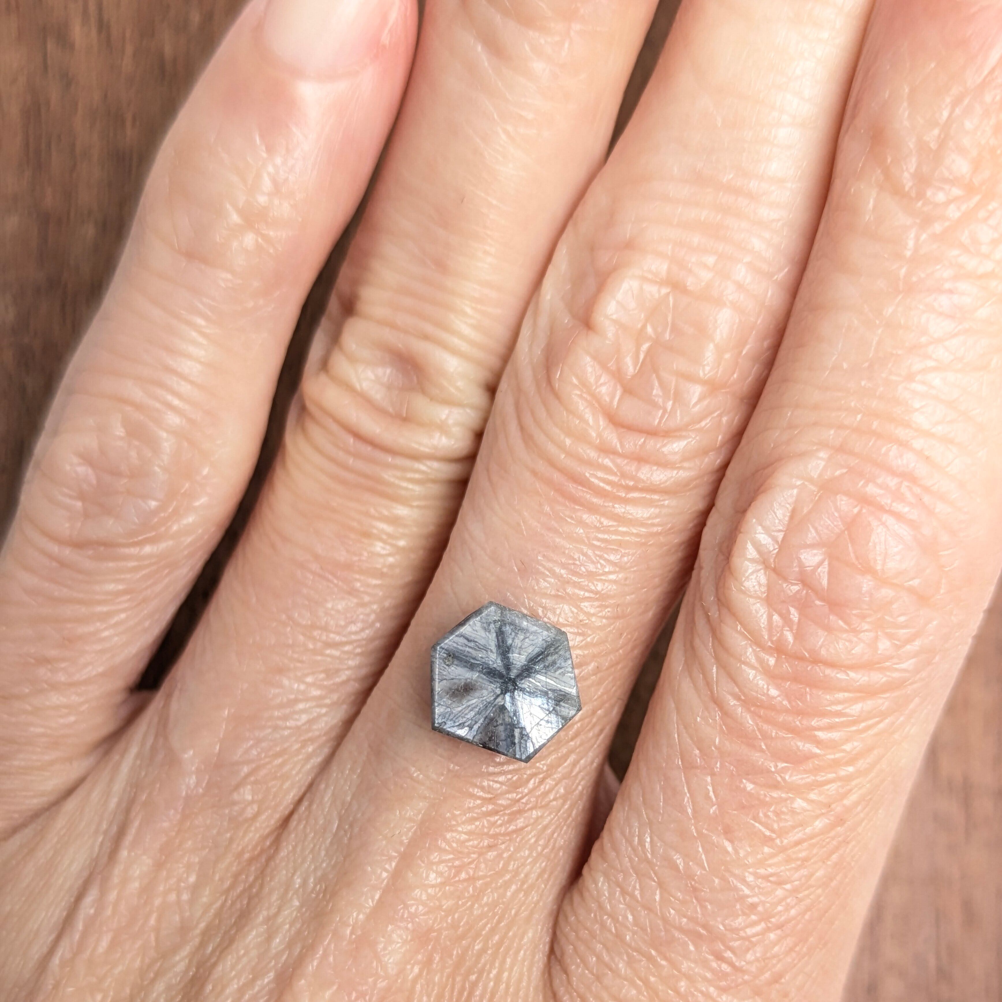 その模様が車輪のように見える「トラピッチェ・サファイア」。“サトウキビの絞り機”の歯車に似ていることからその名前が付いていますが、今回の1ピースはその硬質なシルバーの色合いから、タロットカードの「運命の輪」を思わせる佇まい。「人生の転機」を意味するそのカードに似ているこの石との出会いは、もしかすると何かを暗示しているのかもしれません。惹かれたそこのあなた・・・!もう、貴方のものです。