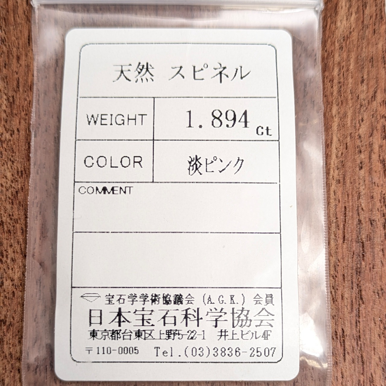 ピンクスピネル ミャンマー・モゴック産【1.894ct】 PRO207838