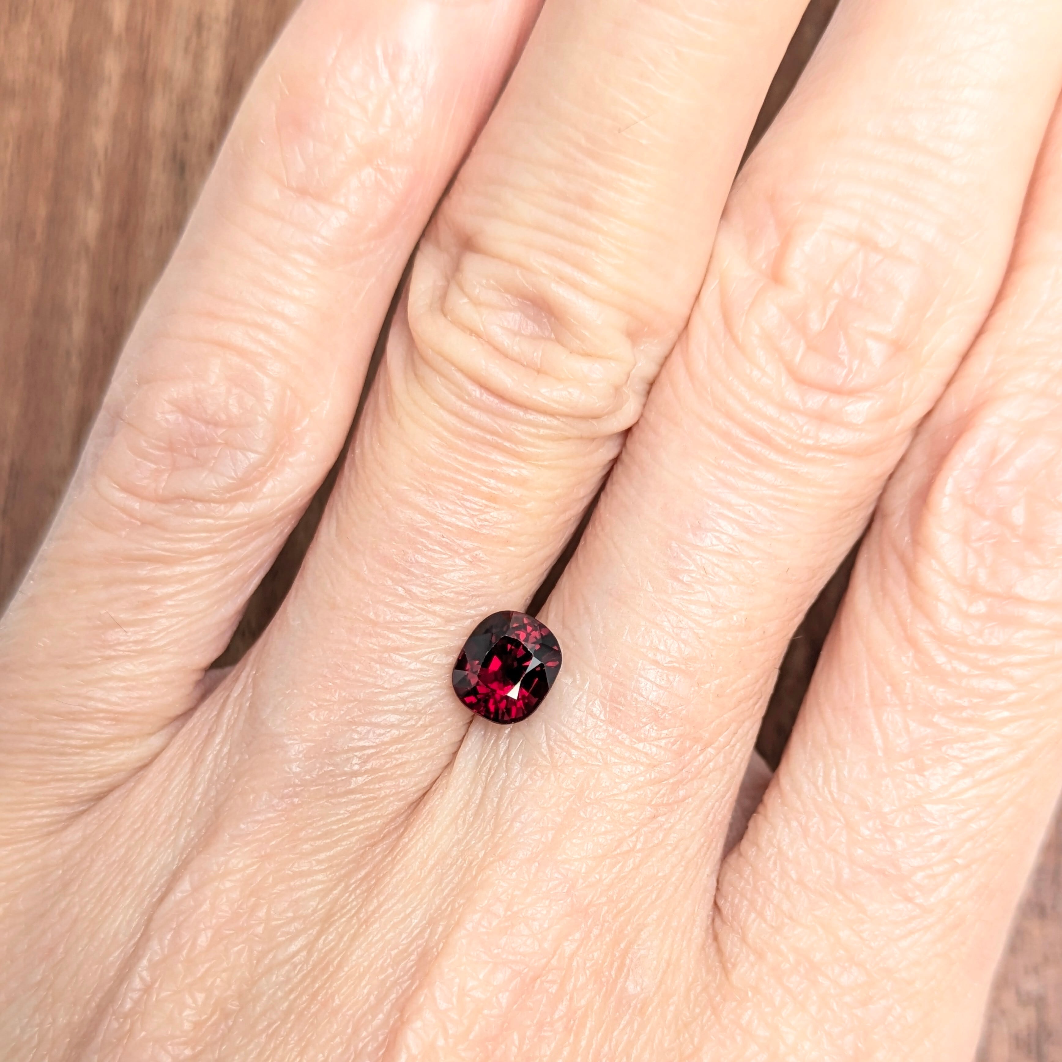 “赤色の饗宴”・・・全ての赤色の標本が入れ代わり立ち代わり輝きとともに姿を現す一粒。奥深い“ディープ・レッド”のスピネルです。今回の個体は、レッド系のスピネルでもルーペで拡大するとわずかに青みを感じるタイプの1ピース。肉眼では、混じり気のないとても主張の強い赤色に感じます。インクルージョンもほとんどなく、とてもクリアな美しさです。