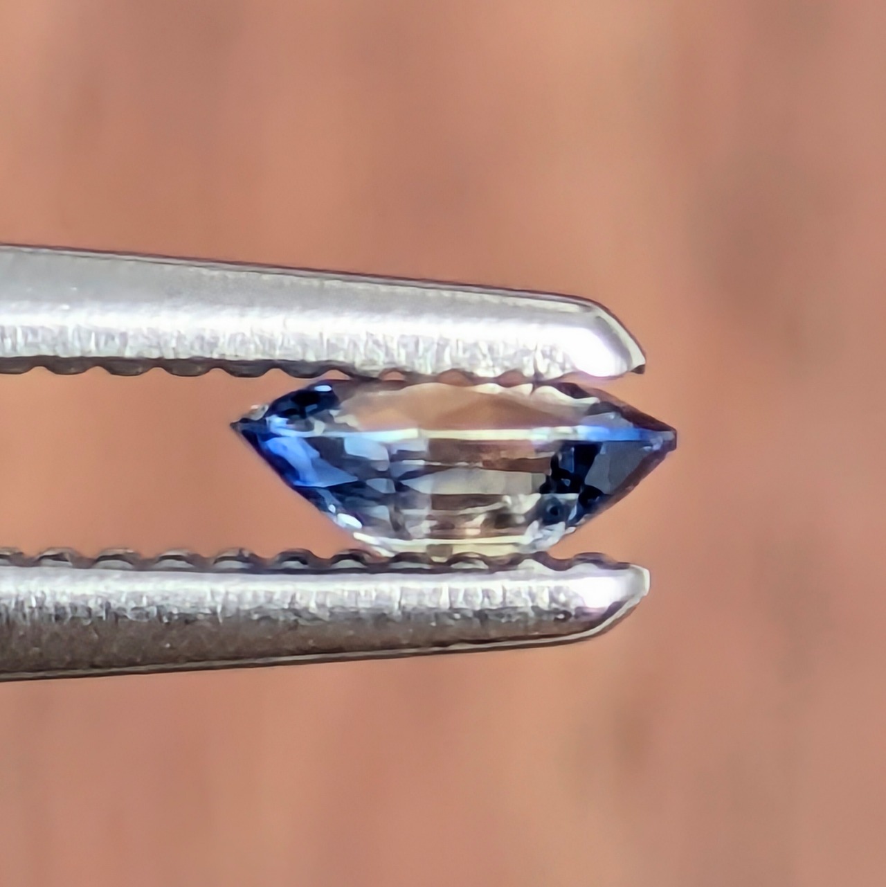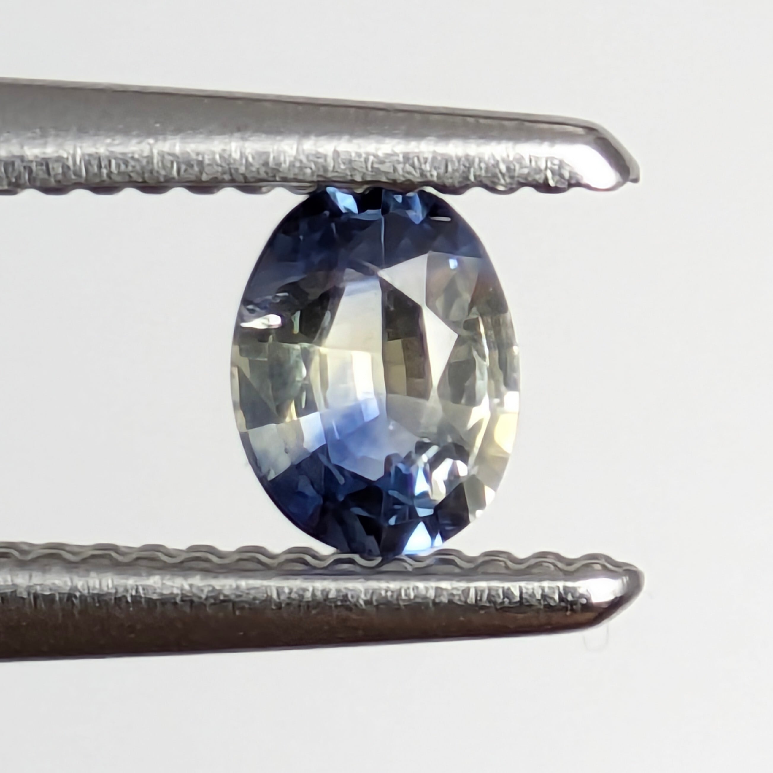 青い空と、青い海に挟まれた、微かに浮かぶ砂漠の蜃気楼・・・のように、幻想的な美しさを持つ1ピース。“バイカラー”となっていますが、実際にはイエローの部分にカラーレスの箇所もわずかに見え、厳密には3色の“パーティカラー”かもしれません。サファイアはブルーもイエローもその色の起源は微量に含まれる「Fe(鉄)」。その結晶形をも反映した色ムラの形すら、美しいと感じる1ピースです。
