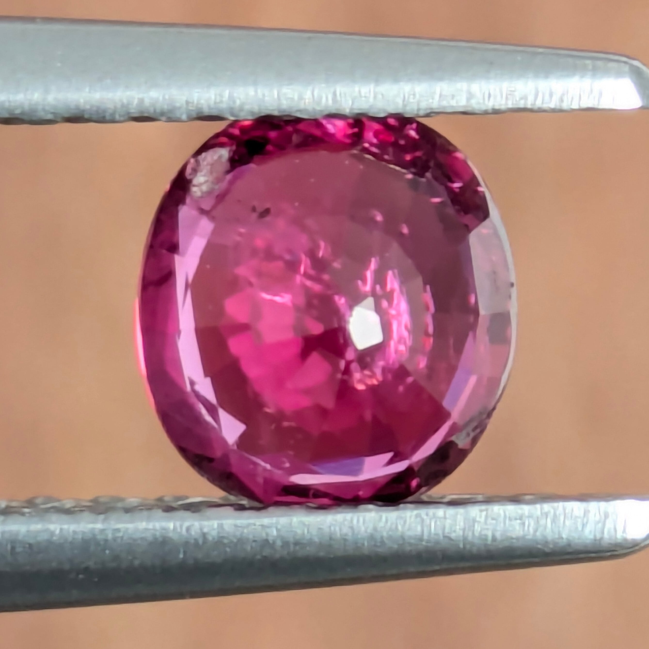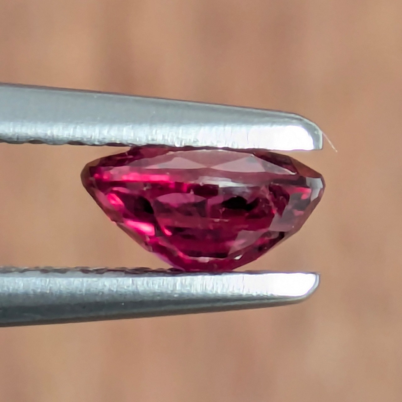ピンキッシュな彩度の高いレッドが魅力的な1ピース。テリと色がとても美しいルビーです。青味もその奥底に隠したような深みのある輝きをひとたび覗き込むと、そこに広がるのは私たちの知り得ない太古の世界の遺物たちが・・・!美しさを損なわない程度のインクルージョンは若干入っていますが、角度を変えるたびに煌めく細かなシルク(?)が花火のスパークのようで、その美しさにもハッとさせられます。