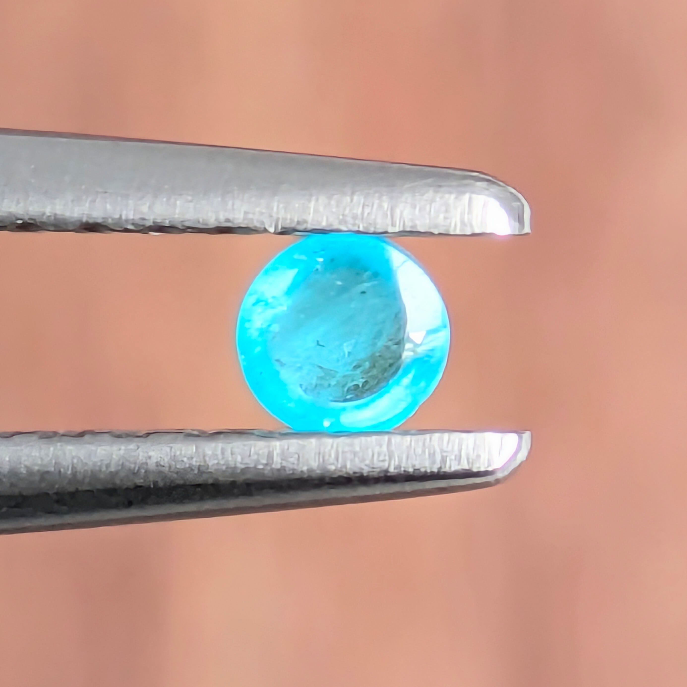 「スノードーム」ならぬ、「スカイドーム」ともいうべき1ピース。スッキリと晴れ渡った真っ青な空を、そのまま小さな結晶の中に閉じ込めたような一粒。その色と輝きは、小さな太陽が内部で輝いているかのように鮮烈で、美しいネオンブルーをしています。0.08ctというサイズですが、存在感抜群です。例えばピアスの奇数個の穴に、アクセントとして着ける用として加工しても可愛いかも☆