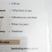 鑑別書上は【White(アイス・ジェイダイト)】なのですが、実物の印象はわずかにグレー味を帯びたより硬質な艶めきを持った1ピース。まさに、冬の空に浮かぶ冷たい月のように、他を寄せ付けないクールな美しさを感じます。「アイス・ジェイダイト」には、ある程度の高い透明度も求められますが、当店でラインナップしているものは厳選された透明感を持っているものに。とても幻想的な美しさの1ピースです。