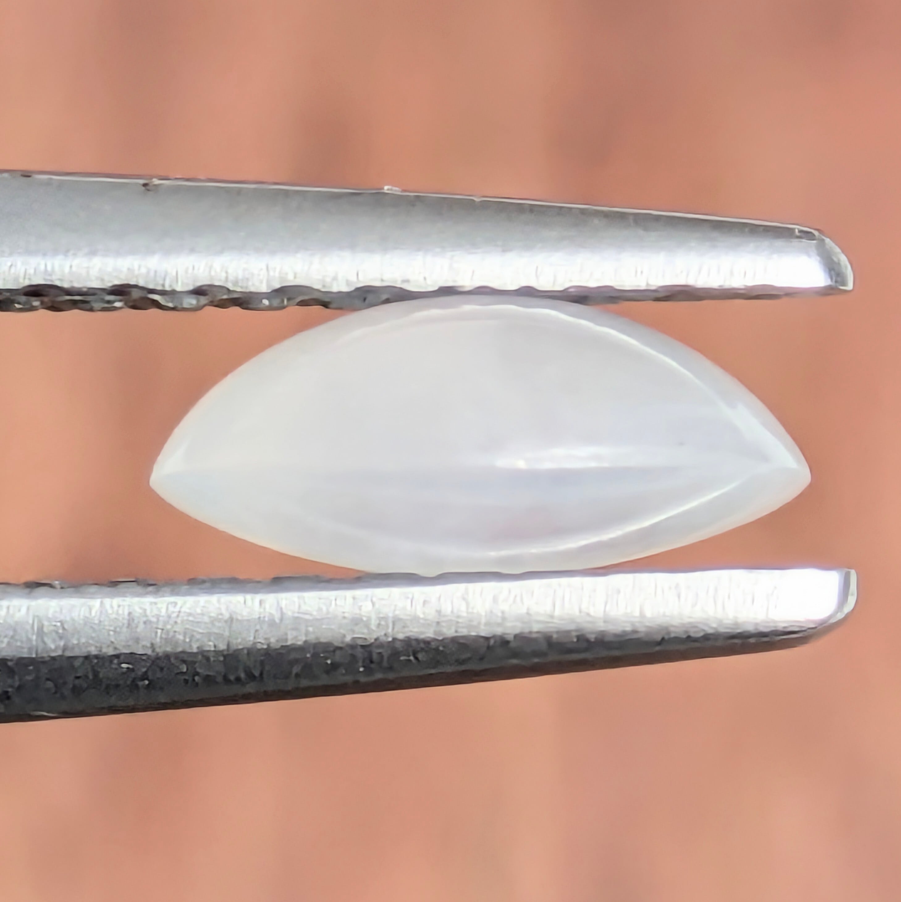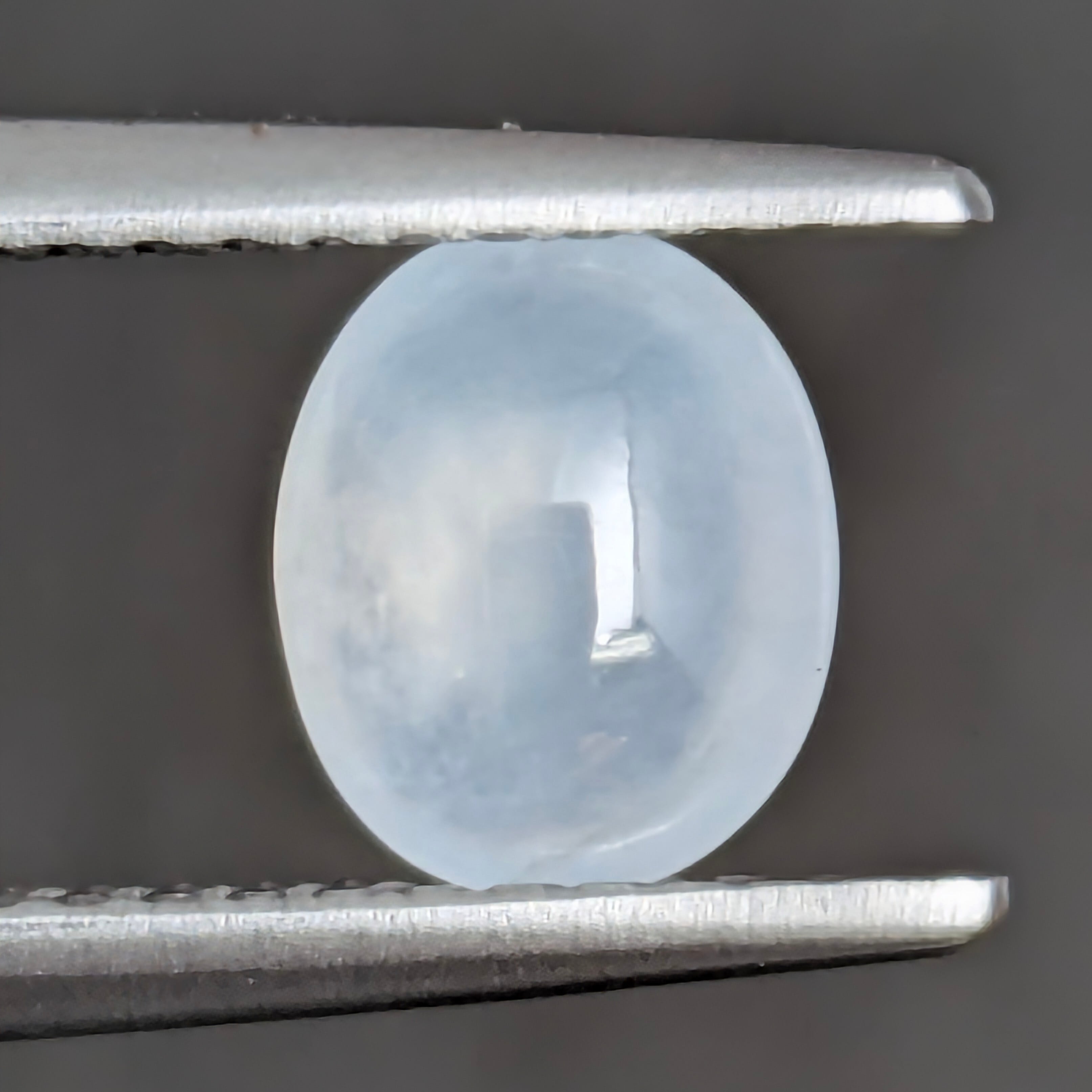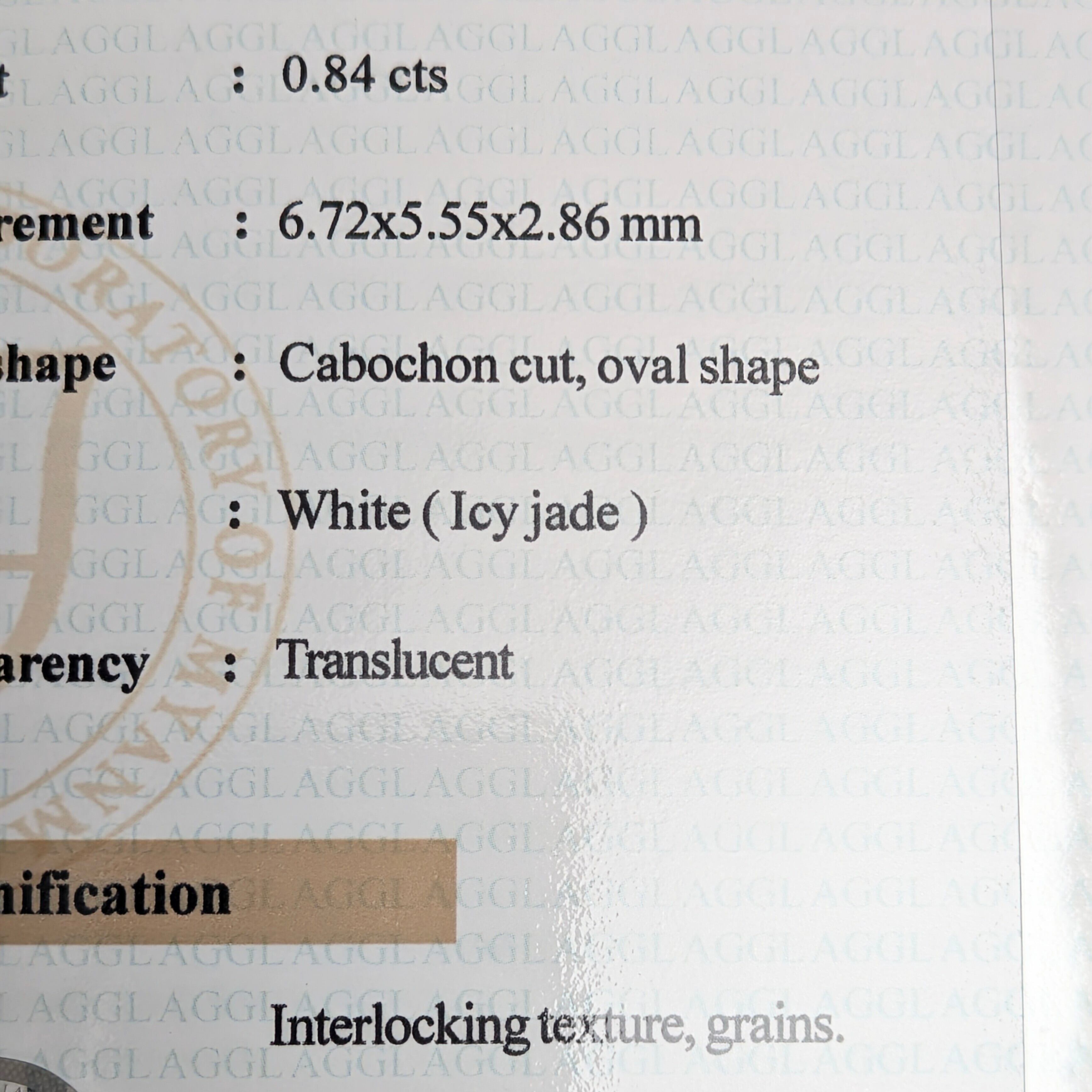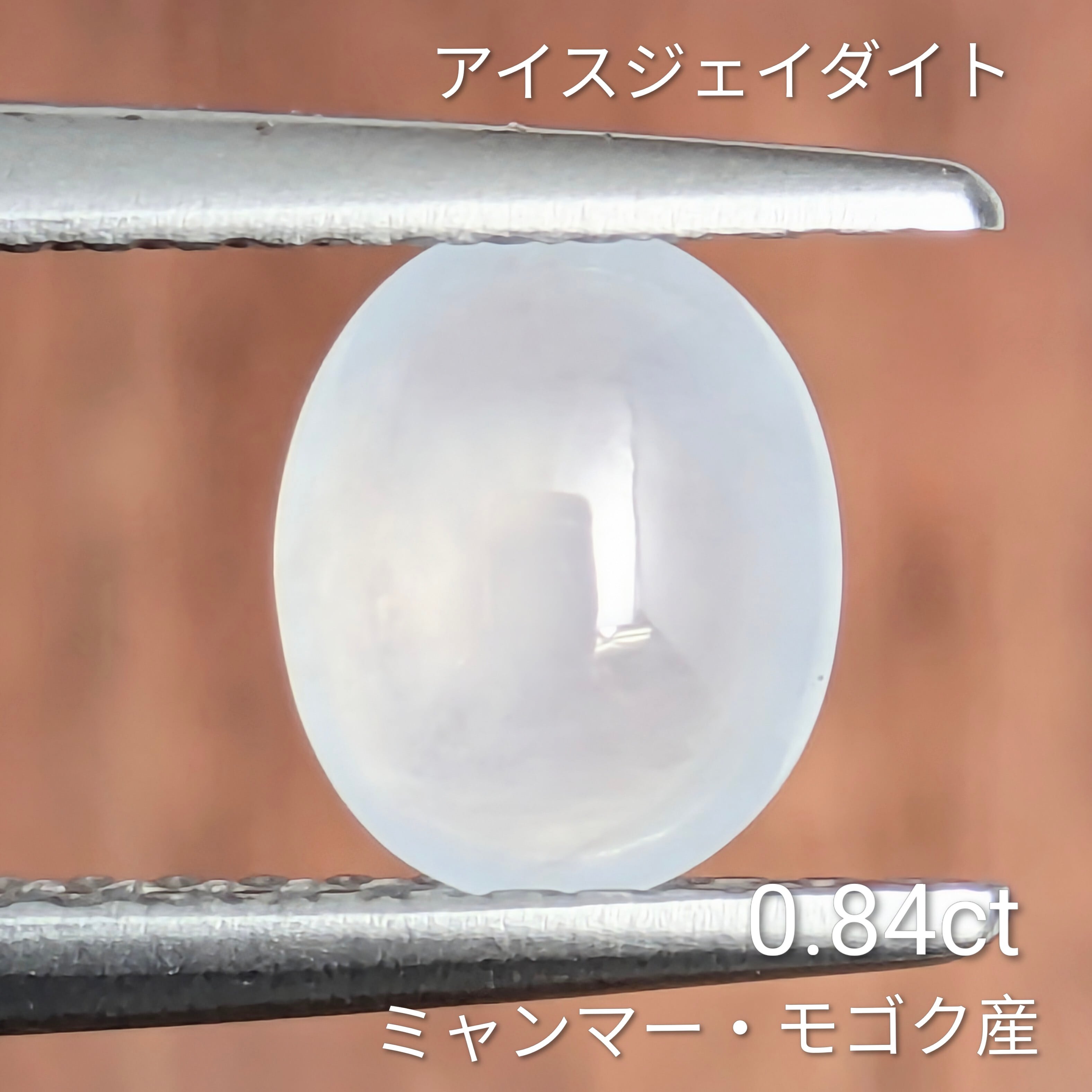月のカケラかと見紛う、幻想的な輝きを放つジェイダイト。グリーンやラベンダーカラー、赤や黄色などの一切の色を示さない、純粋無垢な「アイス・ジェイダイト」です。色が付いていなくとも、不思議と石の内部に光源を持っているかのようなぼんやりと発光しているように見えるその見た目と、ジェイダイトのみが持ちうる独特の半透明感だけで、とても存在感のある美しさを感じられる1ピースです。