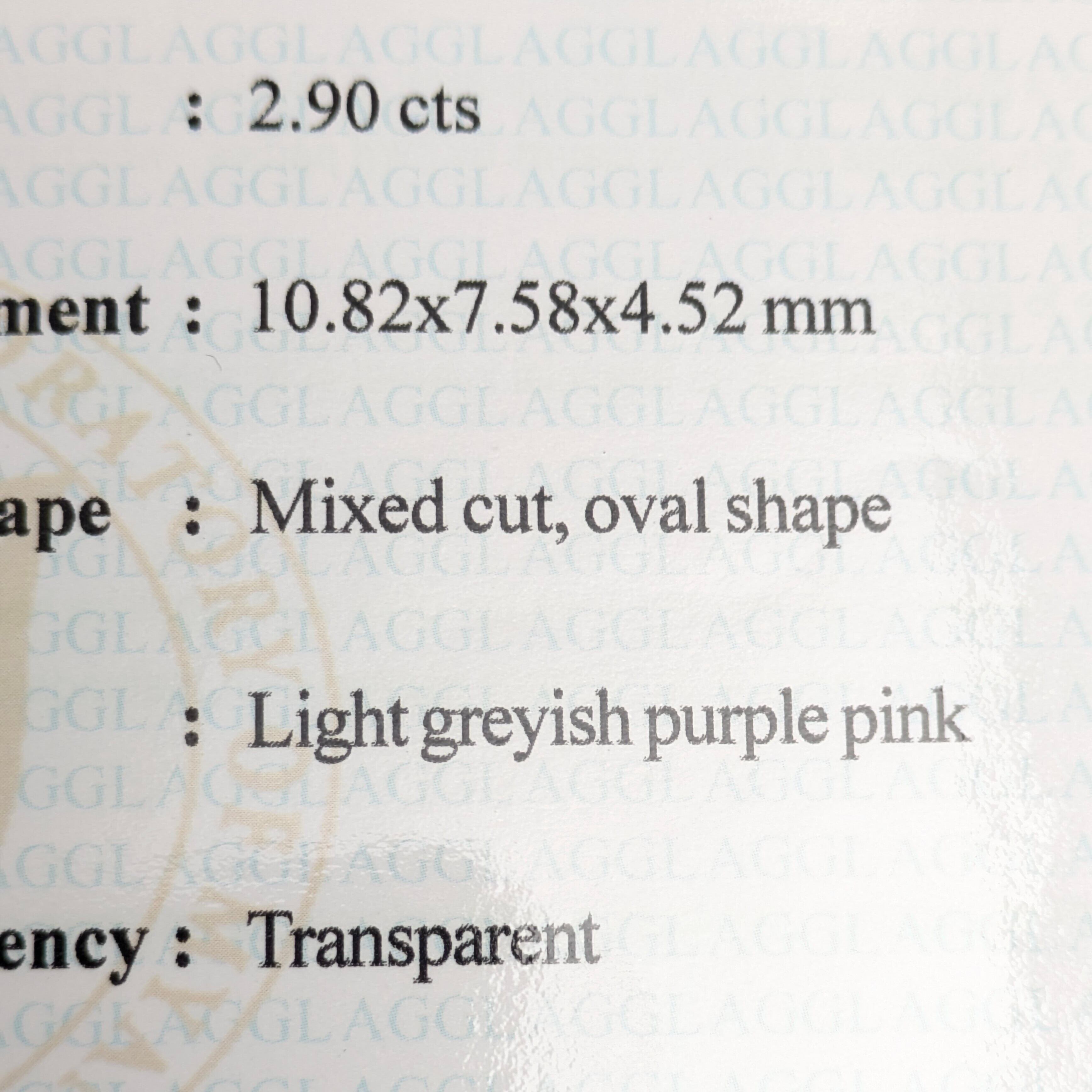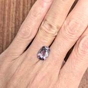 追憶の1シーンを宝石にしたら、この様な色合いになるのではないかと思うノスタルジックな色合いとおっとりとした艶めきが魅力的な1ピース。フィルム映画を思わせるグレー味をかんだその色合いが、郷愁を誘います。とはいえサイズは2.90ctというボリューム。拡大するとわずかにファセットエッジが甘いところはありますが、肉眼での透明感と輝くの美しさは抜群です。色と艶めきを、ご堪能いただきたい1ピースです。