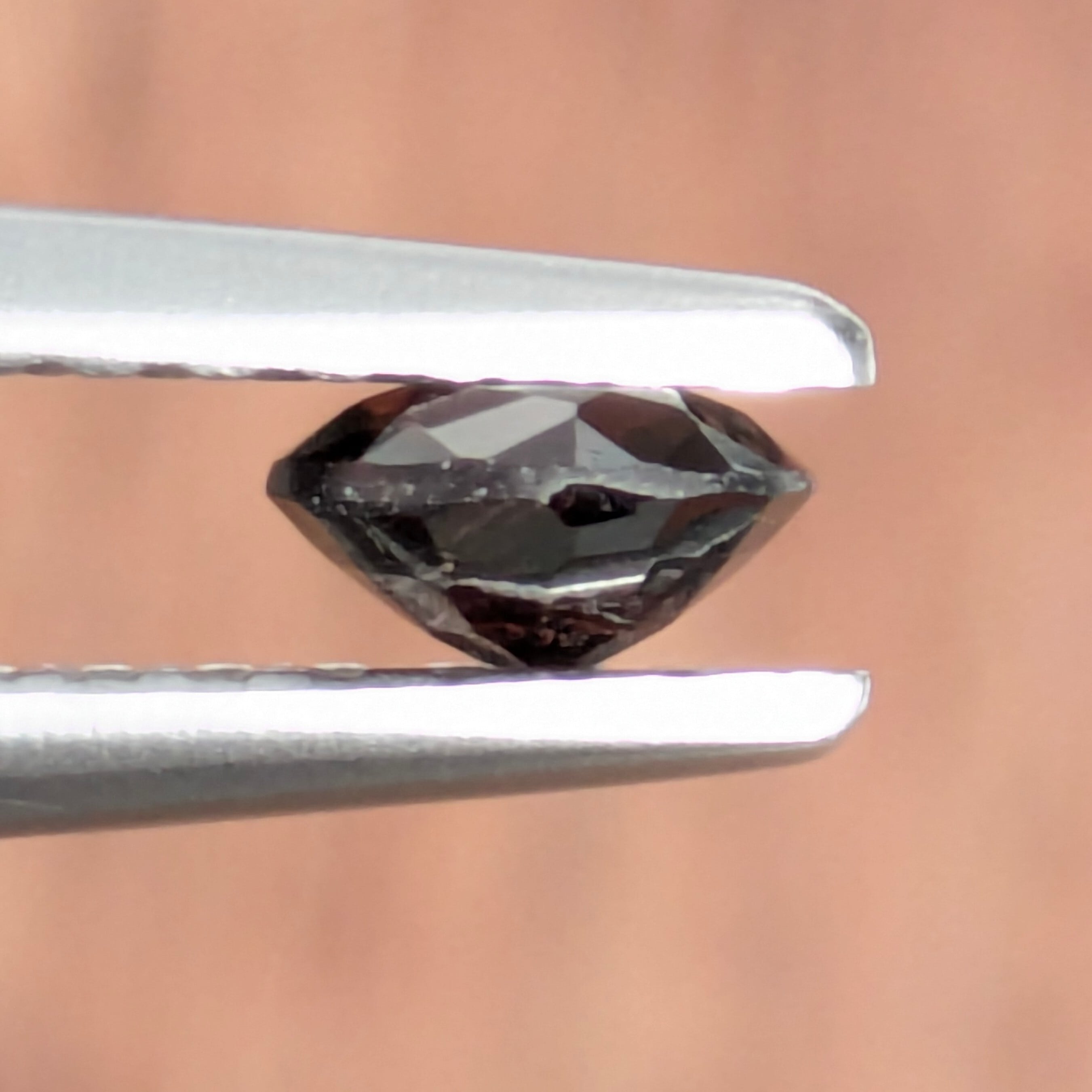 「非常にお目にかかるのが難しい」というのが最大の特徴である【ペイナイト】。現在はまだミャンマーでしか採れないレアストーンです。一見黒い宝石のように見えますが、実は赤茶色の大人っぽい色気を持った宝石。今回ご紹介のルースも「生地足らず」部分は多少あるものの、拡大したときのどちらかというと赤味の強い深い色合いがとっても魅力的。こう見えて、硬度も8前後とジュエリーへのセッティングにも適した耐久性を持っています。