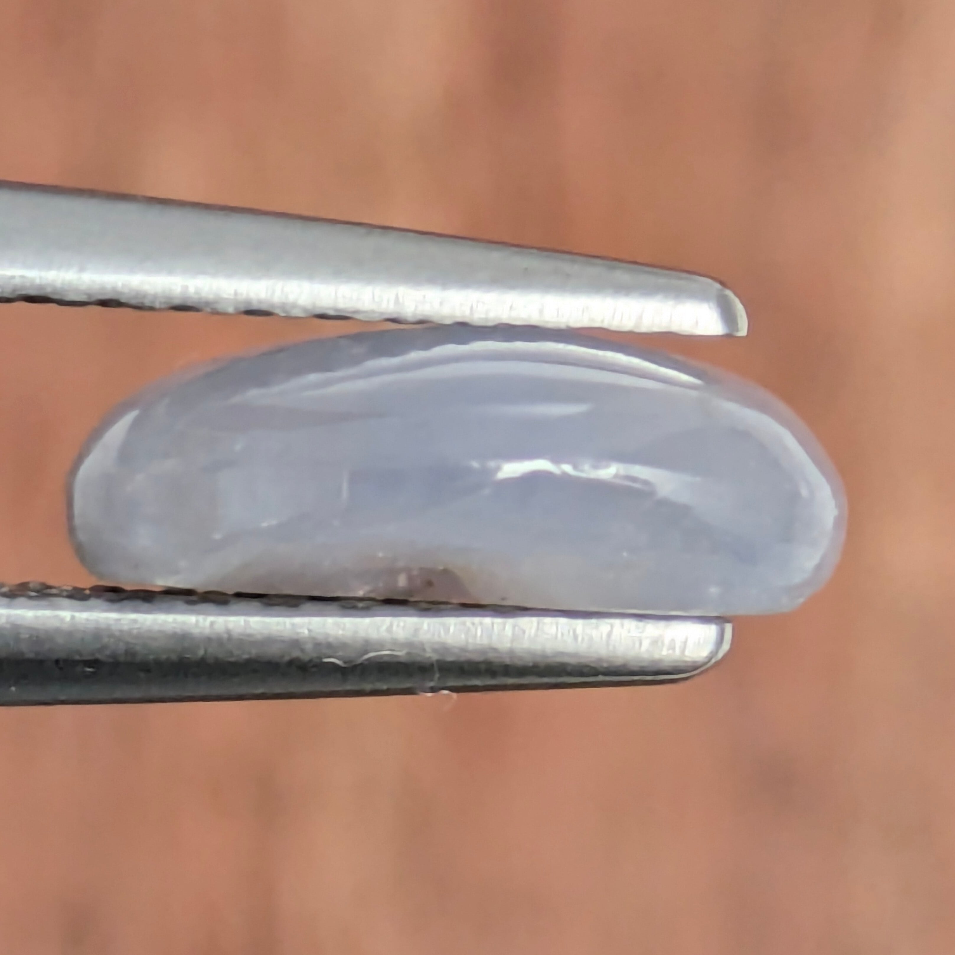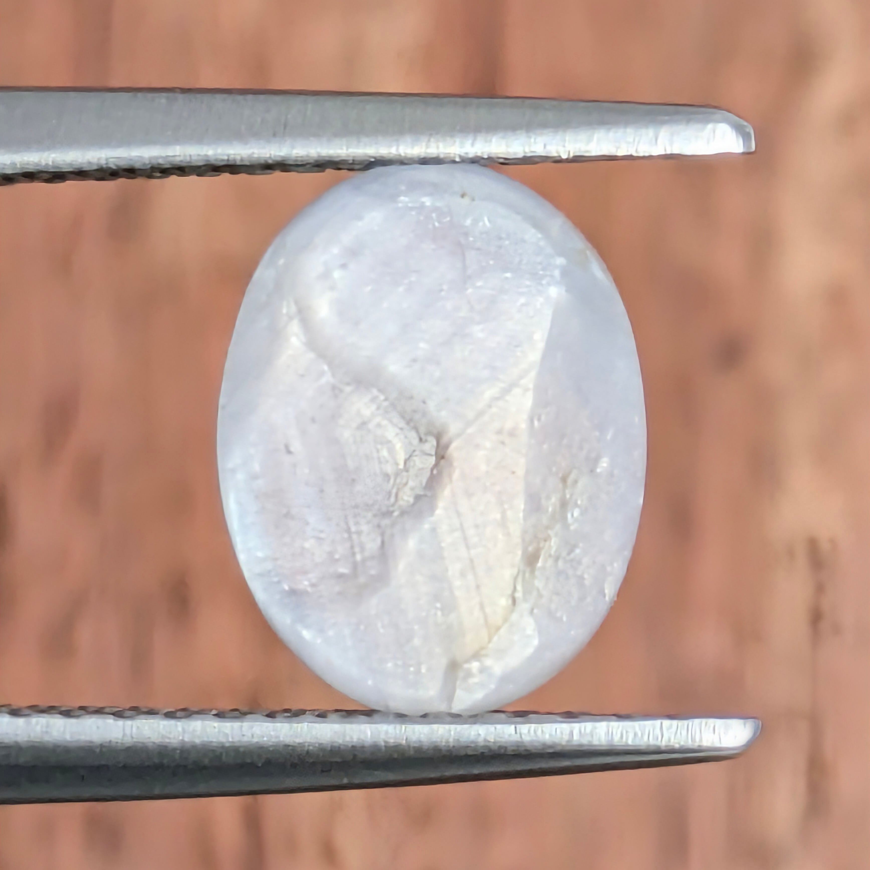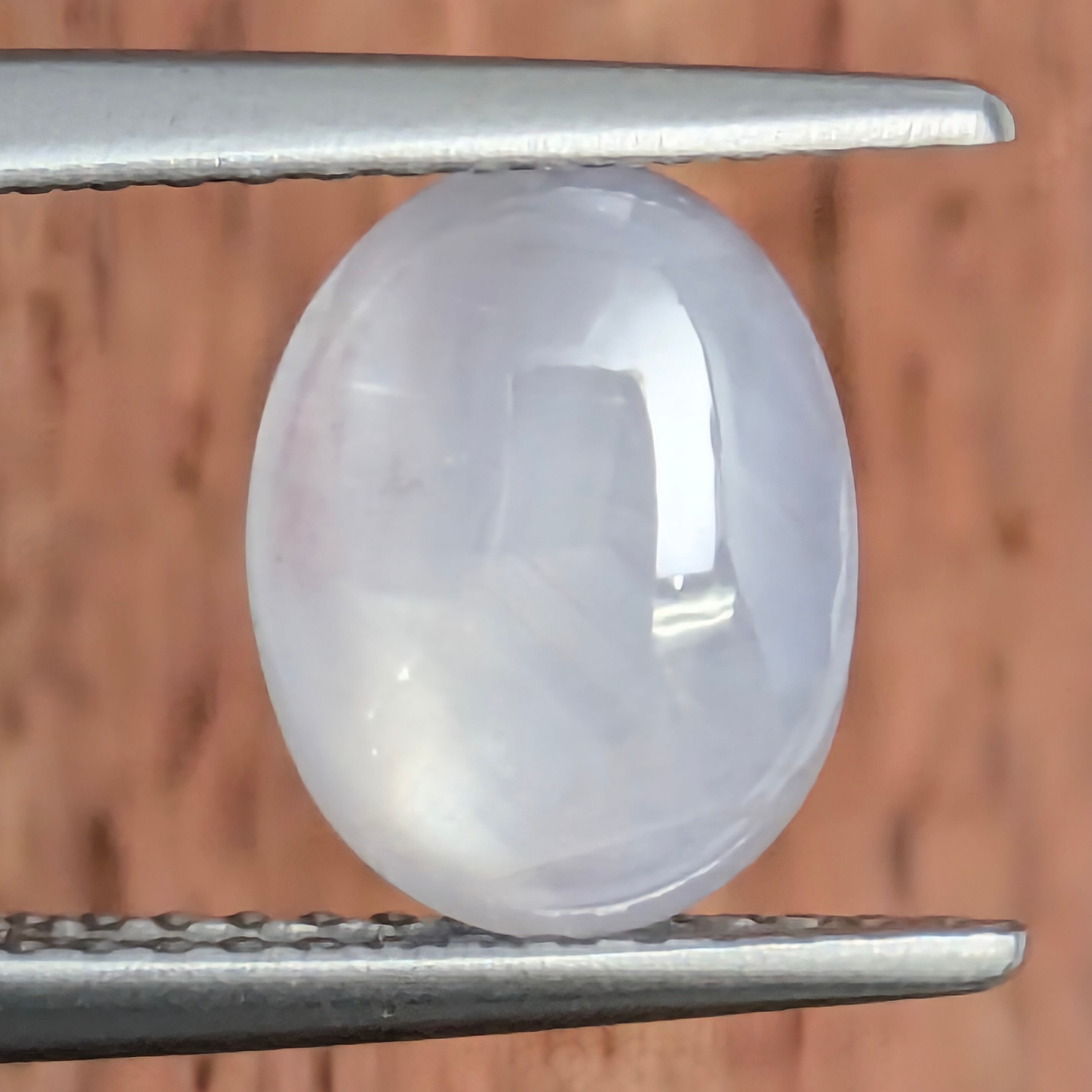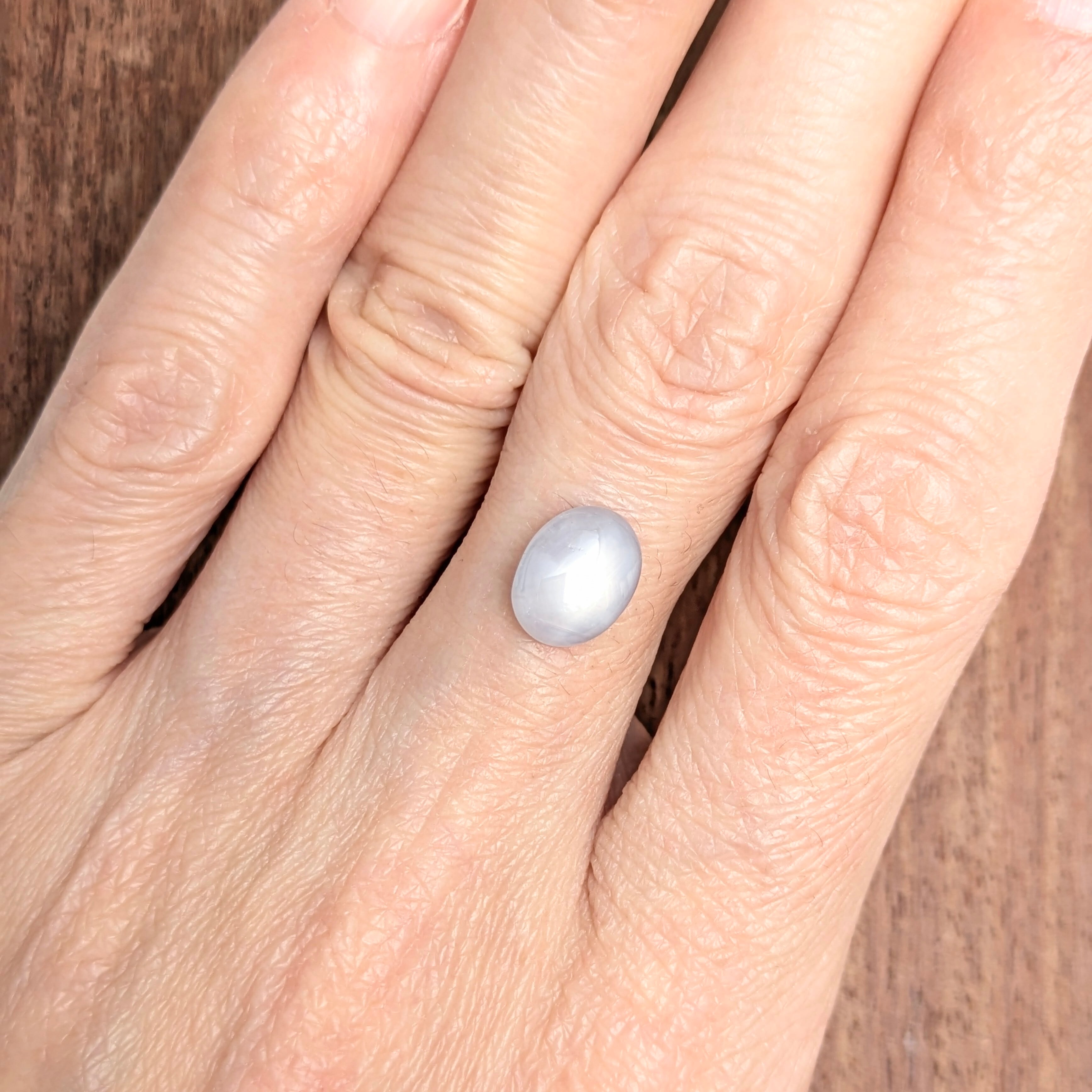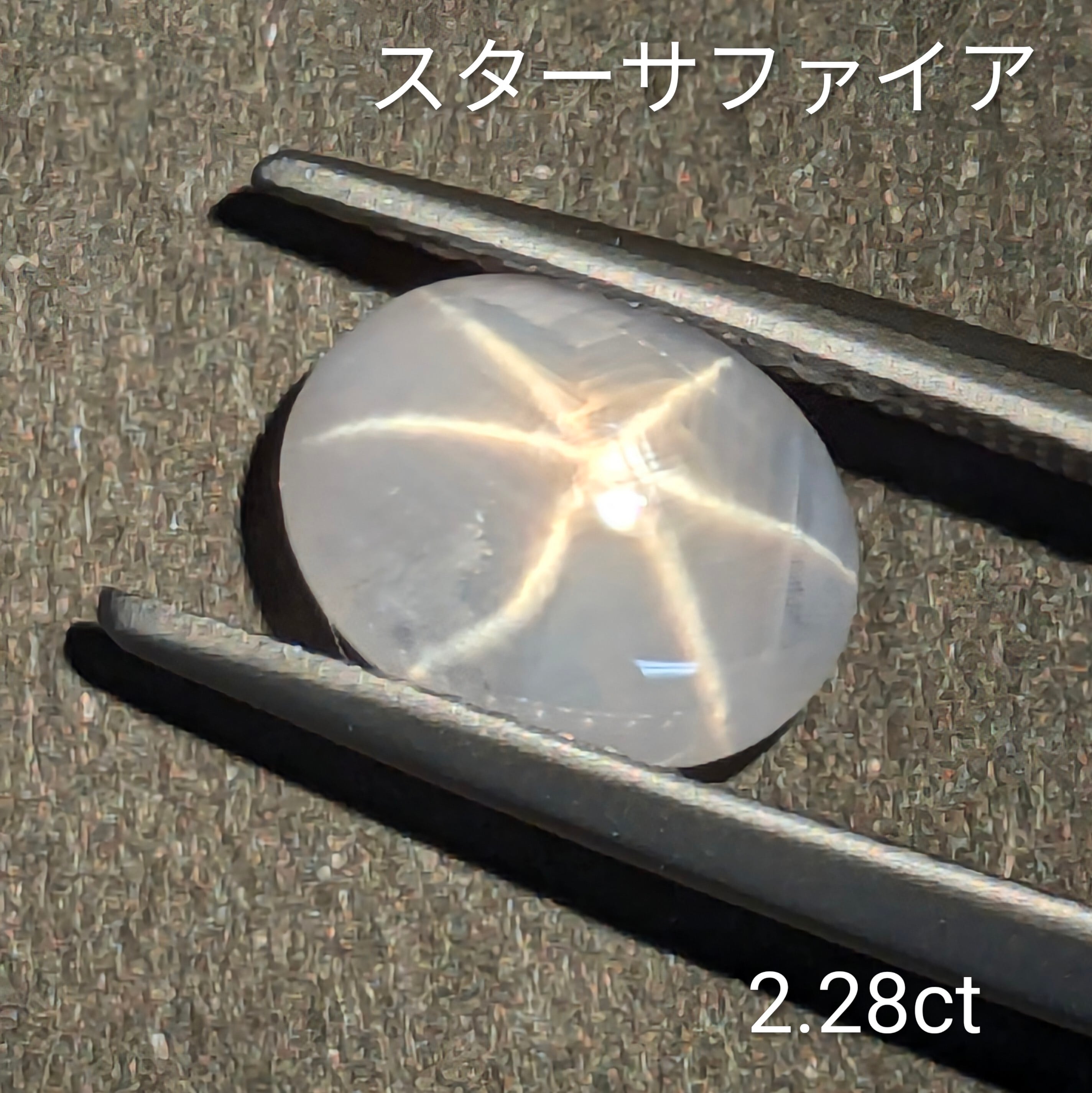 ホワイト系のスターサファイアのメリットは、「スターがくっきりはっきり出現する」という点です。スターは、インクルージョンとして含まれる針状の内包物が密に規則正しく並んでいることで現れます。その結果、通常は濁りの原因にもなってしまうのですが、ホワイト系の場合は密であればあるほどくっきりとしたスターと美しい乳白色を楽しむことができます。光にあてて、まるで流れ星のように表面を滑るスターの煌めきをお楽しみください。