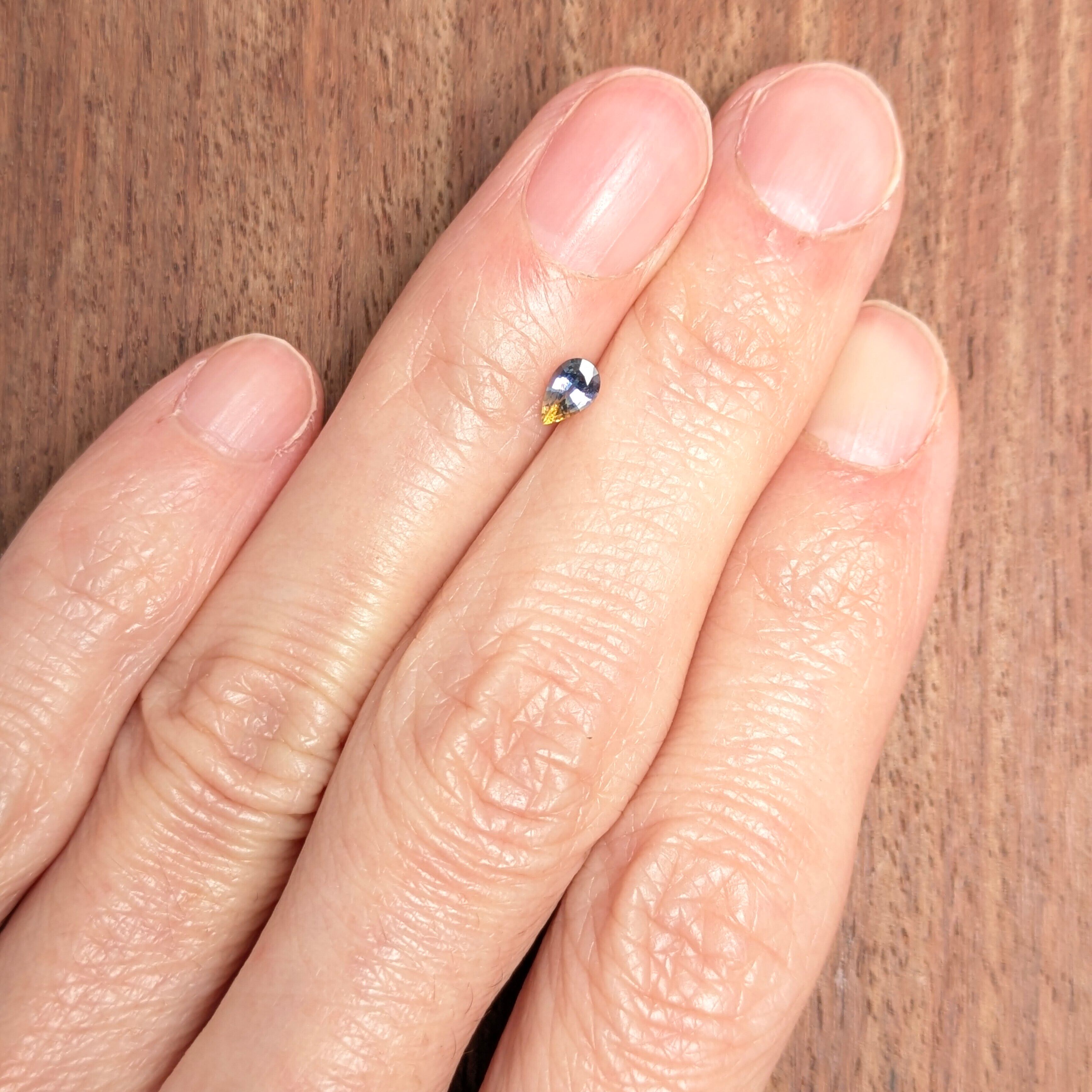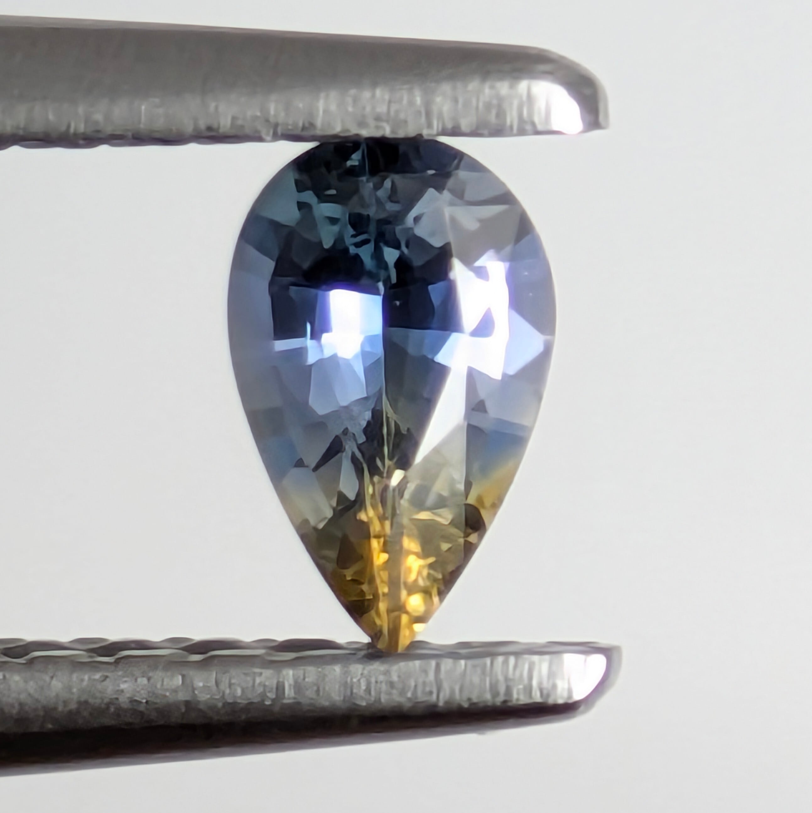 まるで小人の靴のつま先が、昼と夜をまたいでいるかのような印象的なバイカラーにウットリとしてしまうサファイア。かなり色鮮やかなイエローとブルーのコントラストがとても美しい1ピースです。きっとこの靴を履いている小人さんは、昼と夜を自由に行き来ができる魔法が使える☆一つの結晶の中で、希望に満ちた太陽の輝きと、癒しを与えてくれる宵闇の静けさを共生させている1粒。世知辛い世の中、ちょっとデジタル画面は横に置いておいて、自然の美しさに目を癒されてください。