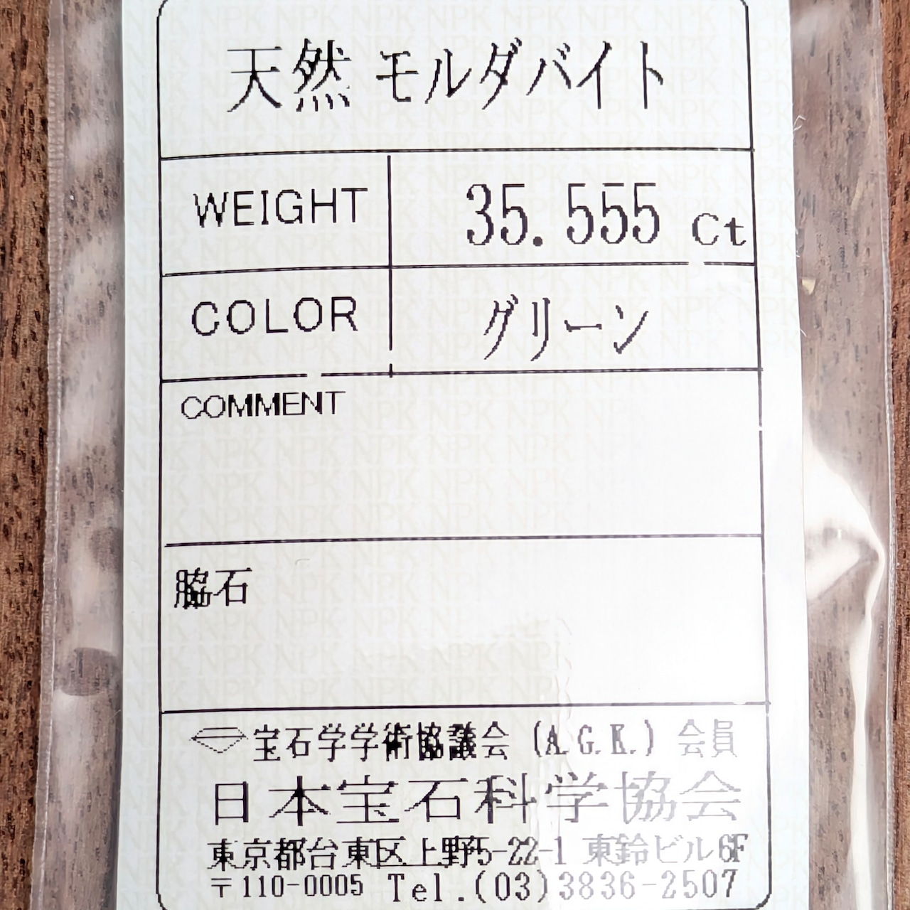 ソーティング袋は業者間取引に使用される簡易レポートですので、傷んでいる場合もございます。別途料金で鑑別書を作成する事も出来ますのでご検討ください。