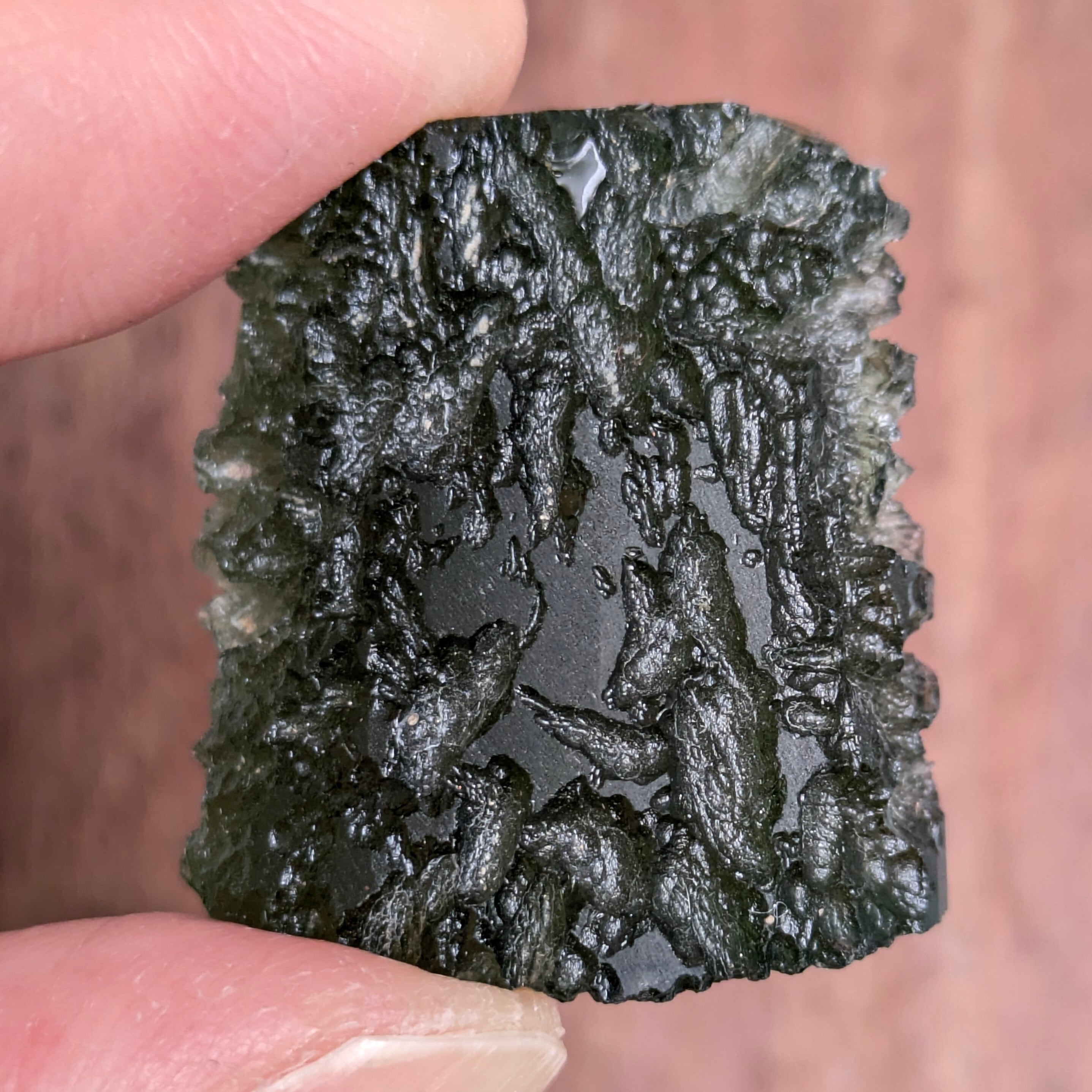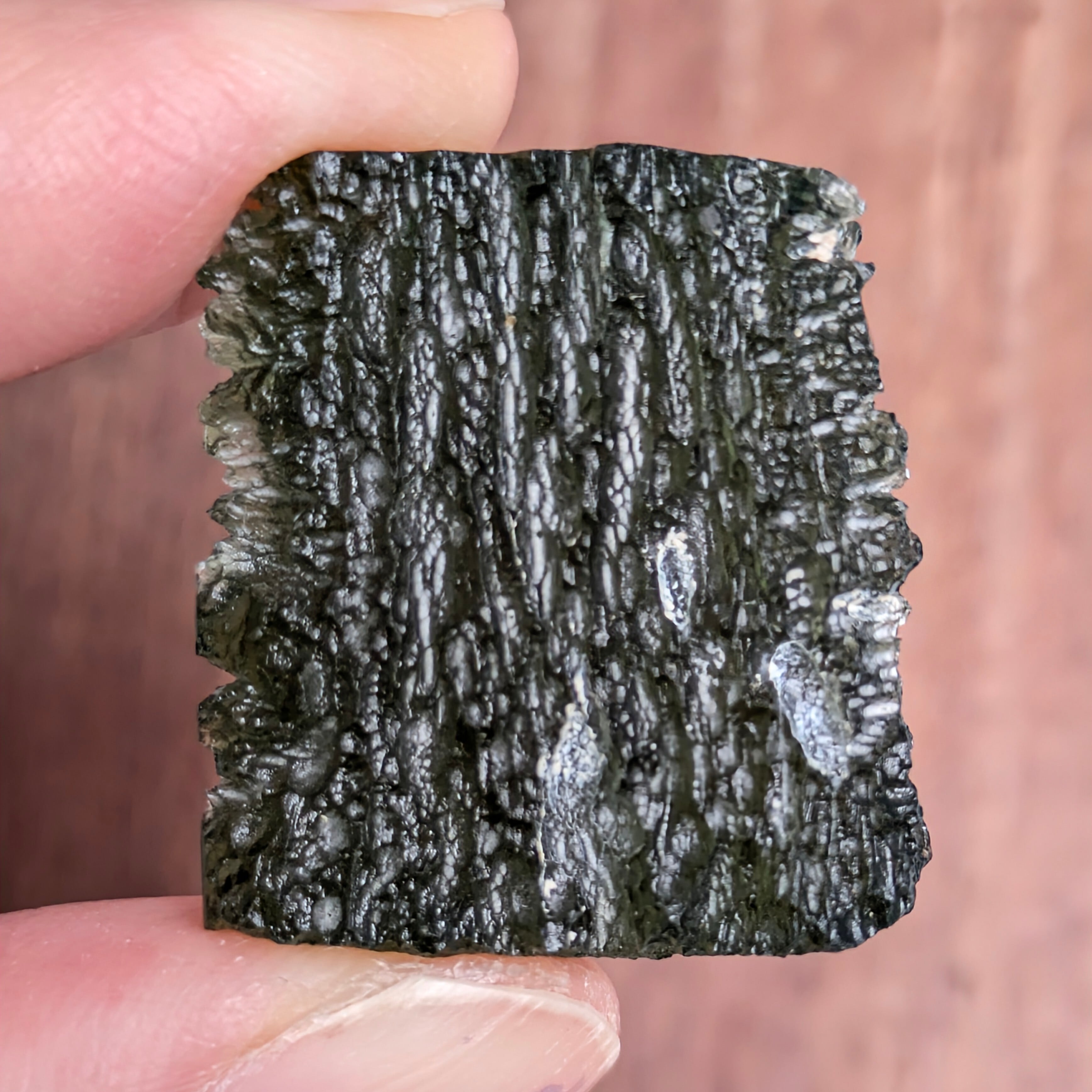 こんなにも生々しく、リアルに宇宙と惑星の存在を強く感じられる石が他にあるでしょうか・・・!?その正体は、「天然のガラス」です。厳密には「石」ではないですが、その成り立ちはとても神秘的。1500万年前、隕石が地球に衝突したときの衝撃と高温で飛散したガラス物質が急冷され、その衝撃と共にその姿に留めた形をしています。何よりも、その表面状態の激しい起伏はその瞬間に刻まれた個々特有のもの!鉱物、岩石マニアだけではなく、宇宙マニアの人も魅了してしまう不思議な存在です。